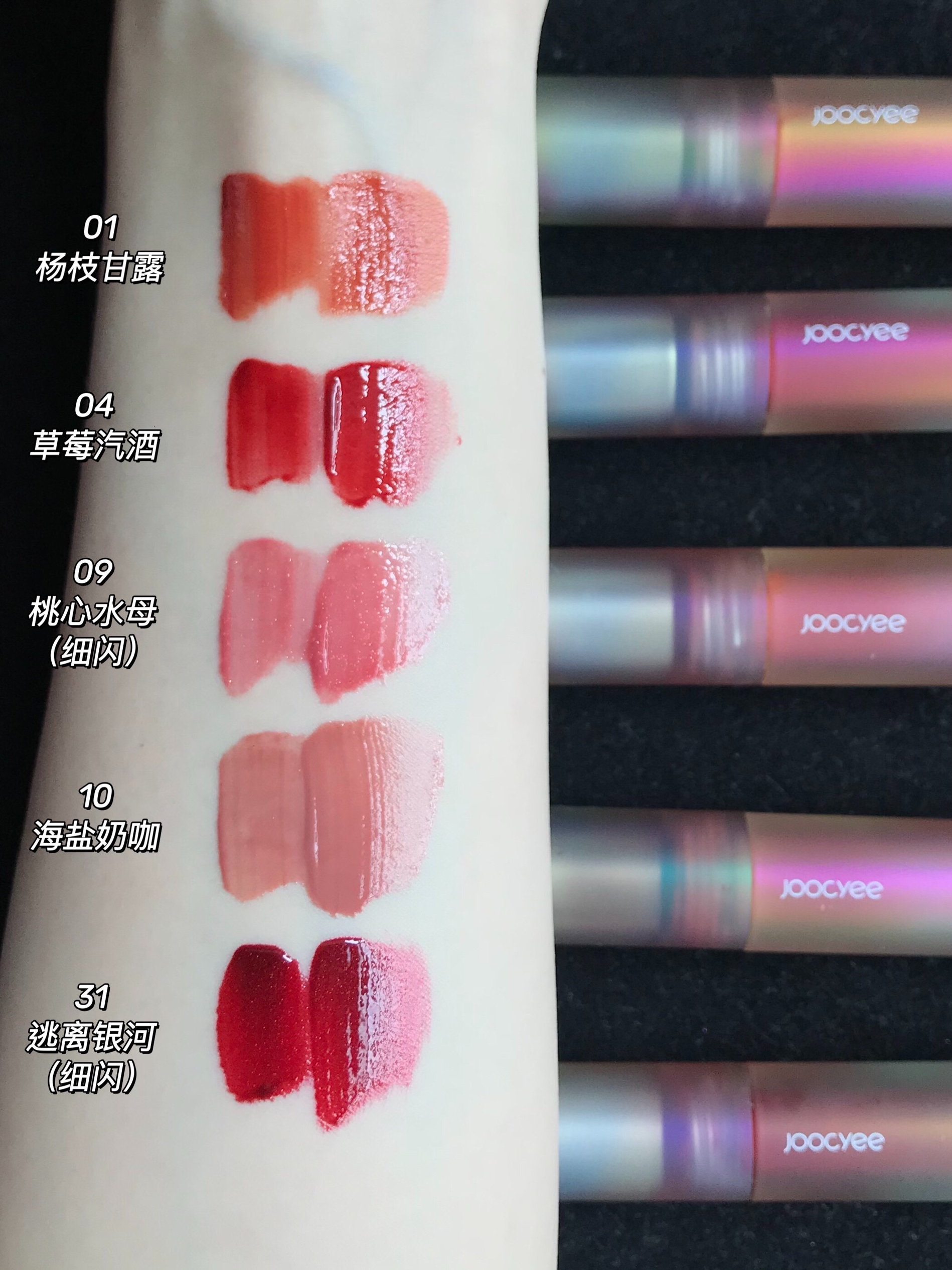 本篇笔记关联了Joocyee/酵色 贝壳镜面唇釉 持妆显色玻璃唇 3.2g 01杨枝甘露、Joocyee/酵色 贝壳镜面唇釉 持妆显色玻璃唇 3.2g 04草莓汽酒、Joocyee/酵色 贝壳镜面唇釉 持妆显色玻璃唇 3.2g 09桃心水母等商品,为用户提供真实的使用体验和购买参考。