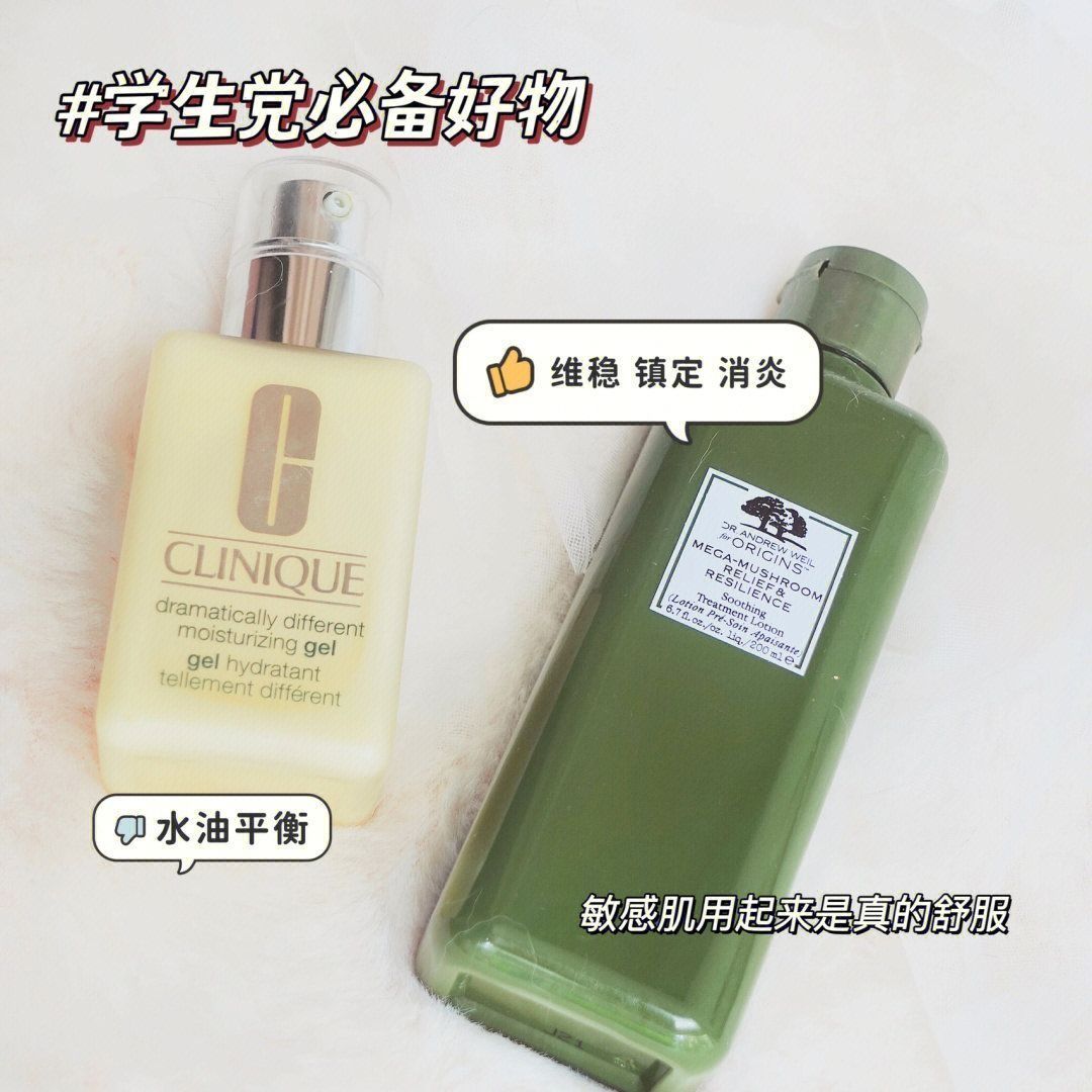 这是我自用了三年的水乳搭配❗️不得不说真是一个神奇的地方,上学的时候还是在这上面学到了不少好用的护肤品❗️ 〰️给大家说说我自用的感受: 1⃣️倩碧黄油——作为一个混干皮,我是真的不喜欢那些油腻腻的水乳,就算它再补水💦脸上也实在难受。但这款无油款倩碧黄油是真的,一点都不油❗️能很好的维持水油平衡,有助于红血丝的改善。 2⃣️菌菇水——它的作用是:维稳镇定肌肤,消炎改善痘痘肌。有一股淡淡的青草药味道...