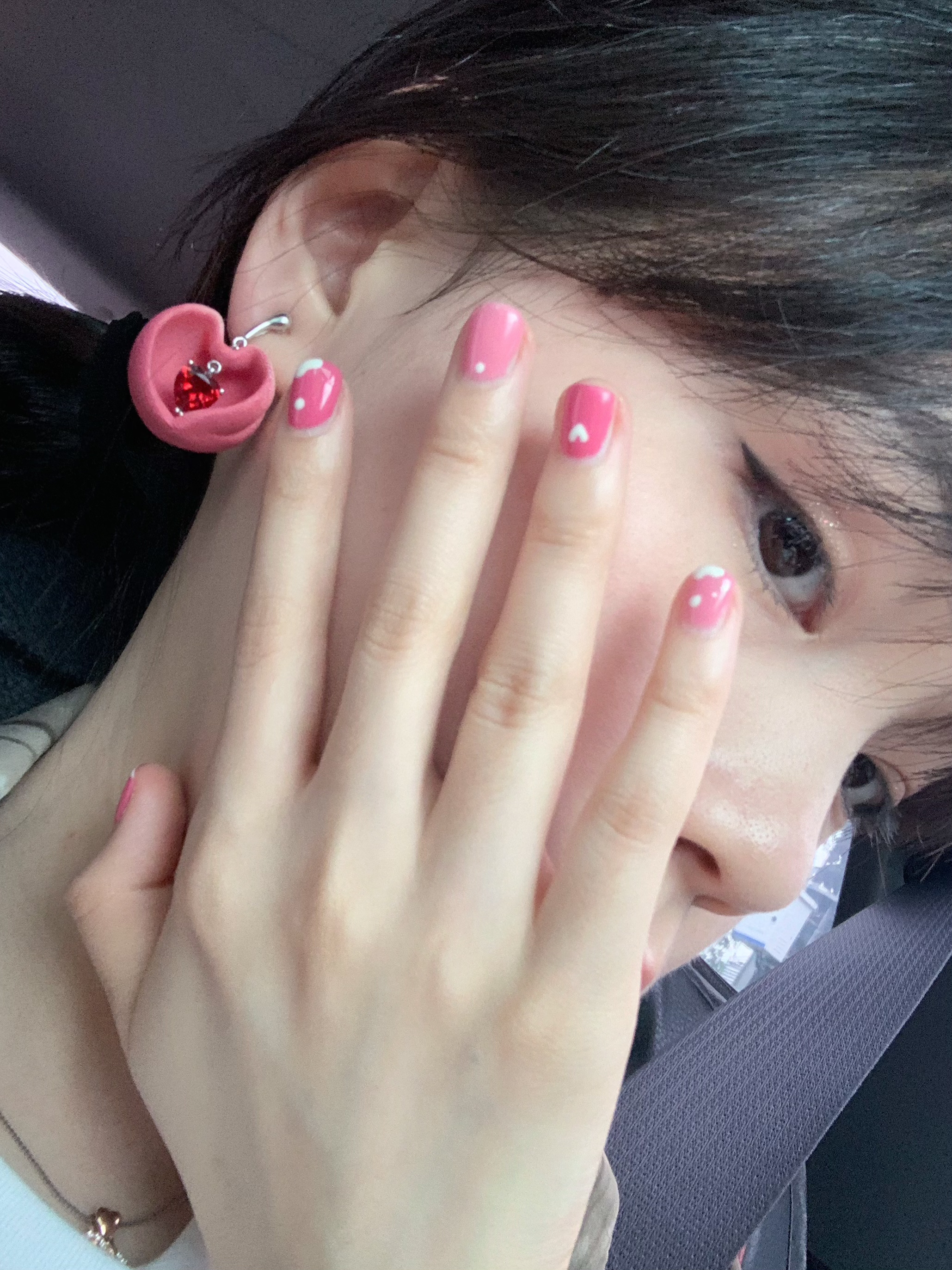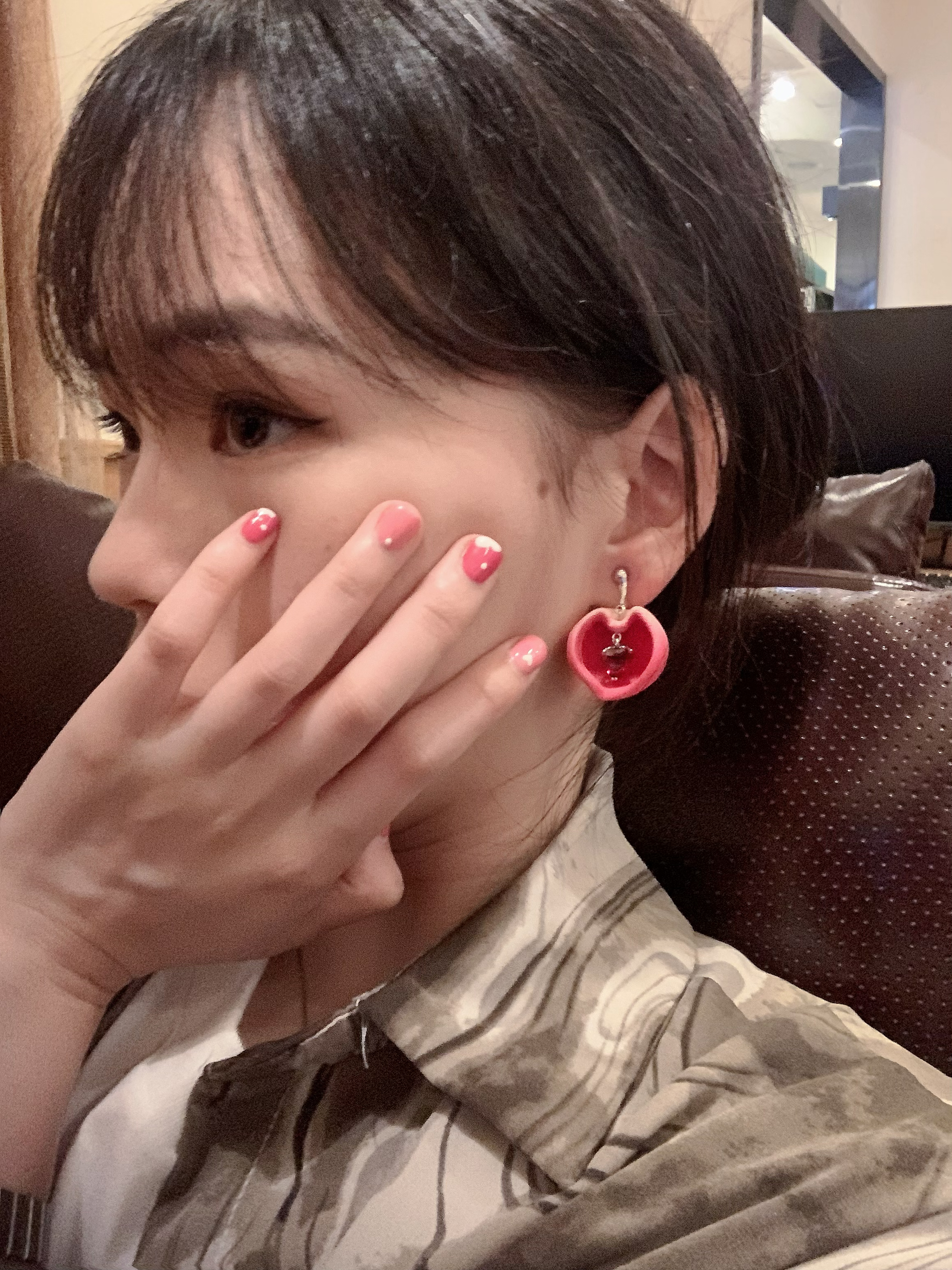 火急火燎的去做了一个粉粉滴美甲💅 果然女孩子在任何年纪都会再次喜欢上粉色! 出门前再选配饰的时候突然想到之前入的MARSEVEN 家杨幂同款耳饰! 跟我的美甲太搭配啦!! 立体很有质感 ,尤其是里面有一颗蠢蠢欲动的红宝石 知性又可爱 💗💗💗 没有耳洞的美美也可以入,有硅胶我戴了一下午也不疼 真的很爱!!!