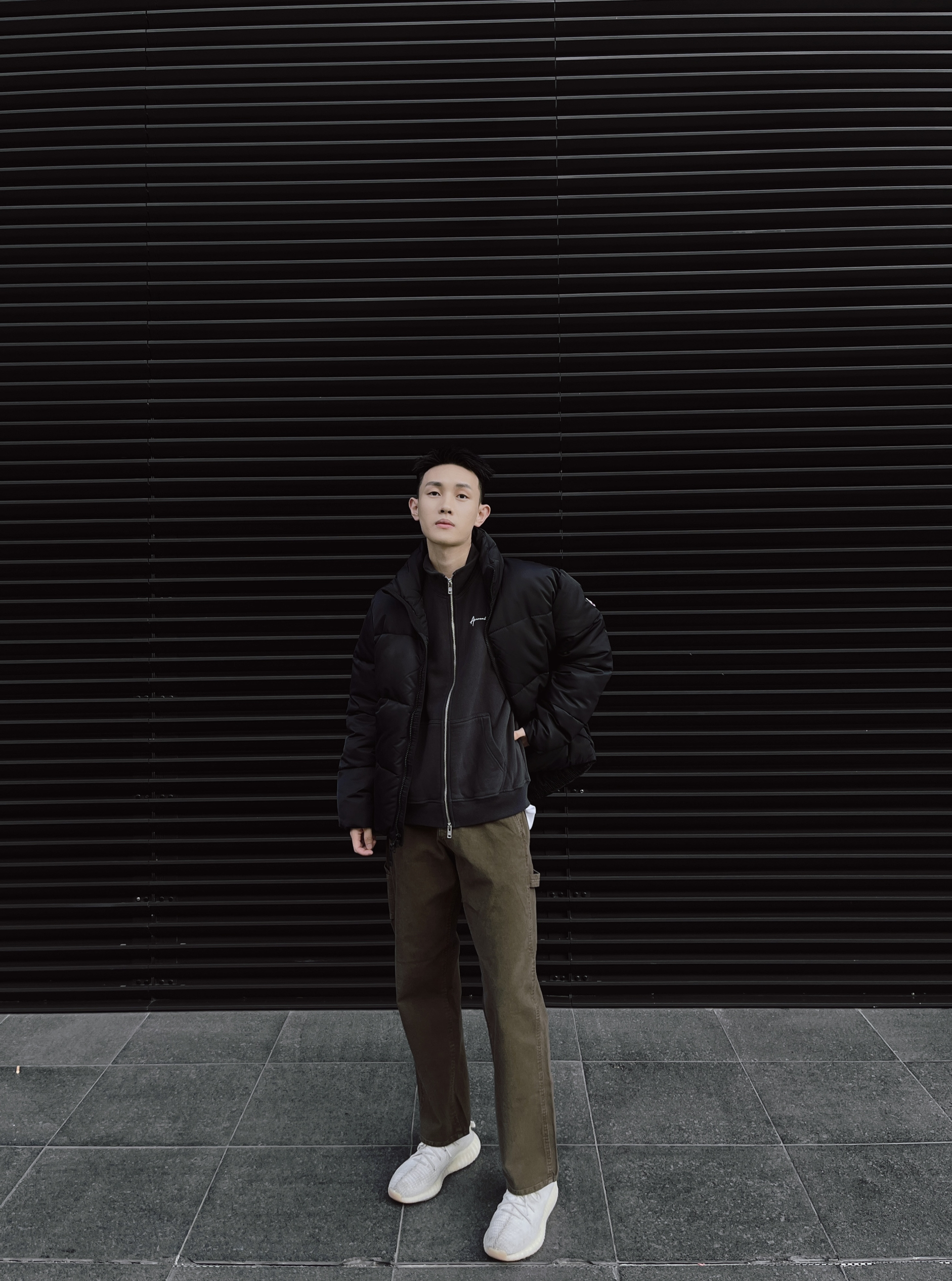 🧥:Abercrombie & Fitch棉衣 👔:Abercrombie & Fitch卫衣 👖:Abercrombie & Fitch工装裤 👟:yeezy350