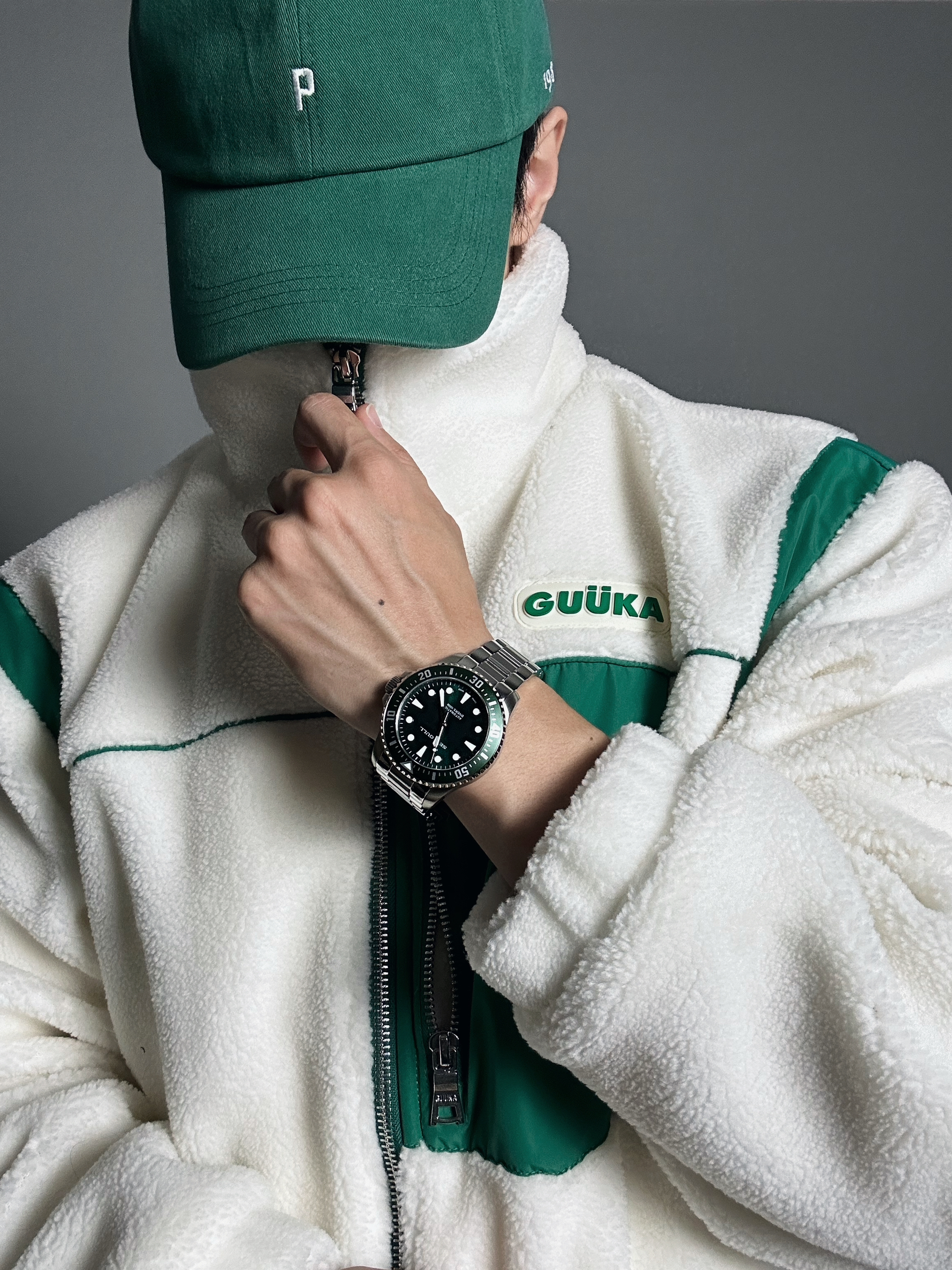 今天变身邮政小哥,白绿色搭配总是给人一种年轻且健康的感觉🍃 👔是Guuka的羊羔绒夹克,轻快保暖,很适合秋季或初冬,局部的祖母绿设计起到了一定的分割作用,时尚的同时,不会让视觉看起来过于臃肿。 搭配的海鸥绿水鬼⌚️ 精钢机械⚙️腕表 45小时动力储存而且100M防水,如果你对绿劳心心念念却囊中羞涩,这个造型妥妥的平替圆梦款👌 🎽👖是BLUESFLY的纯色款,内搭的背心是针织款,穿起来不会扎很舒服,...