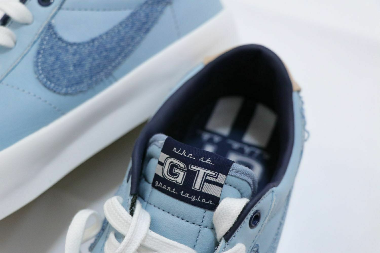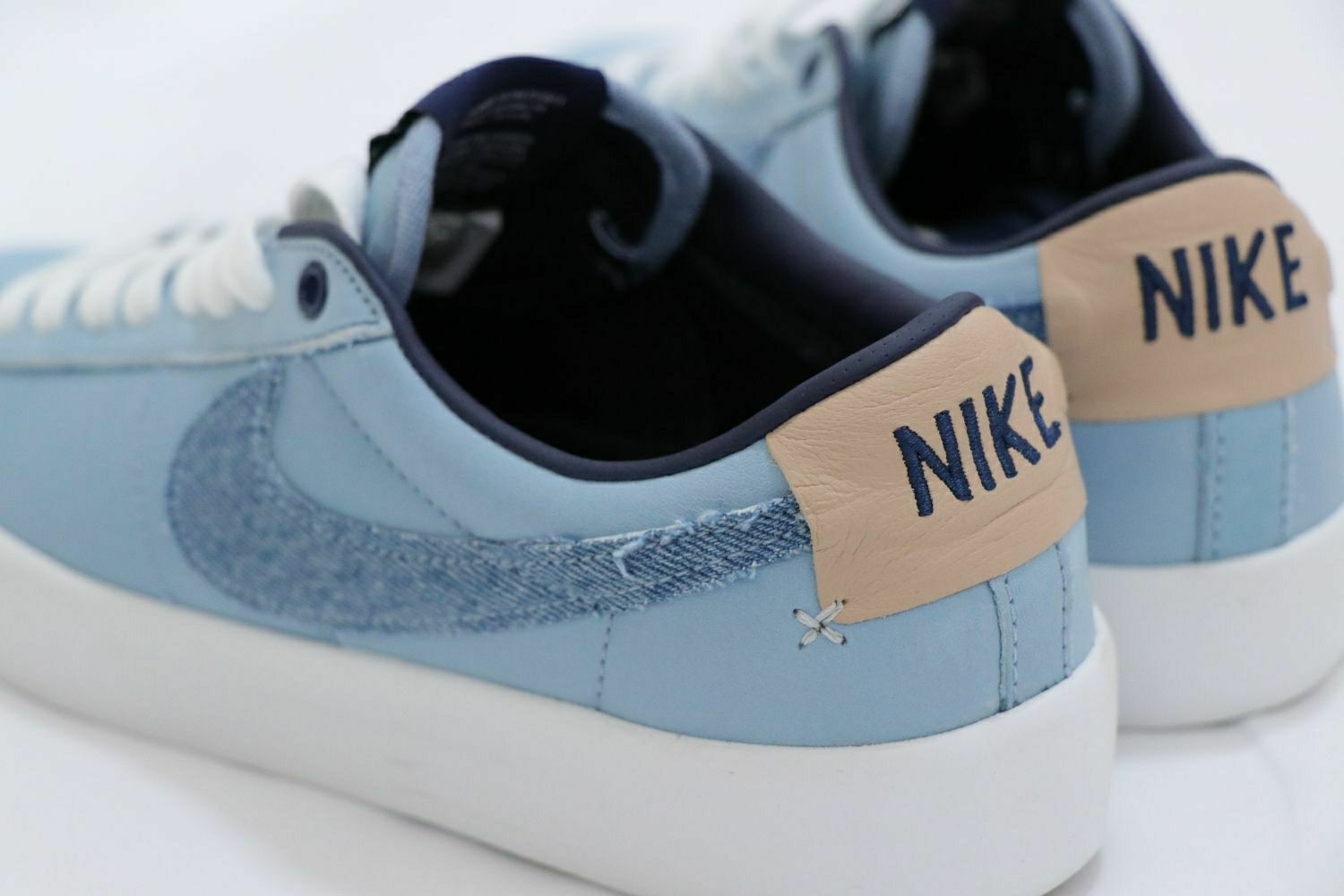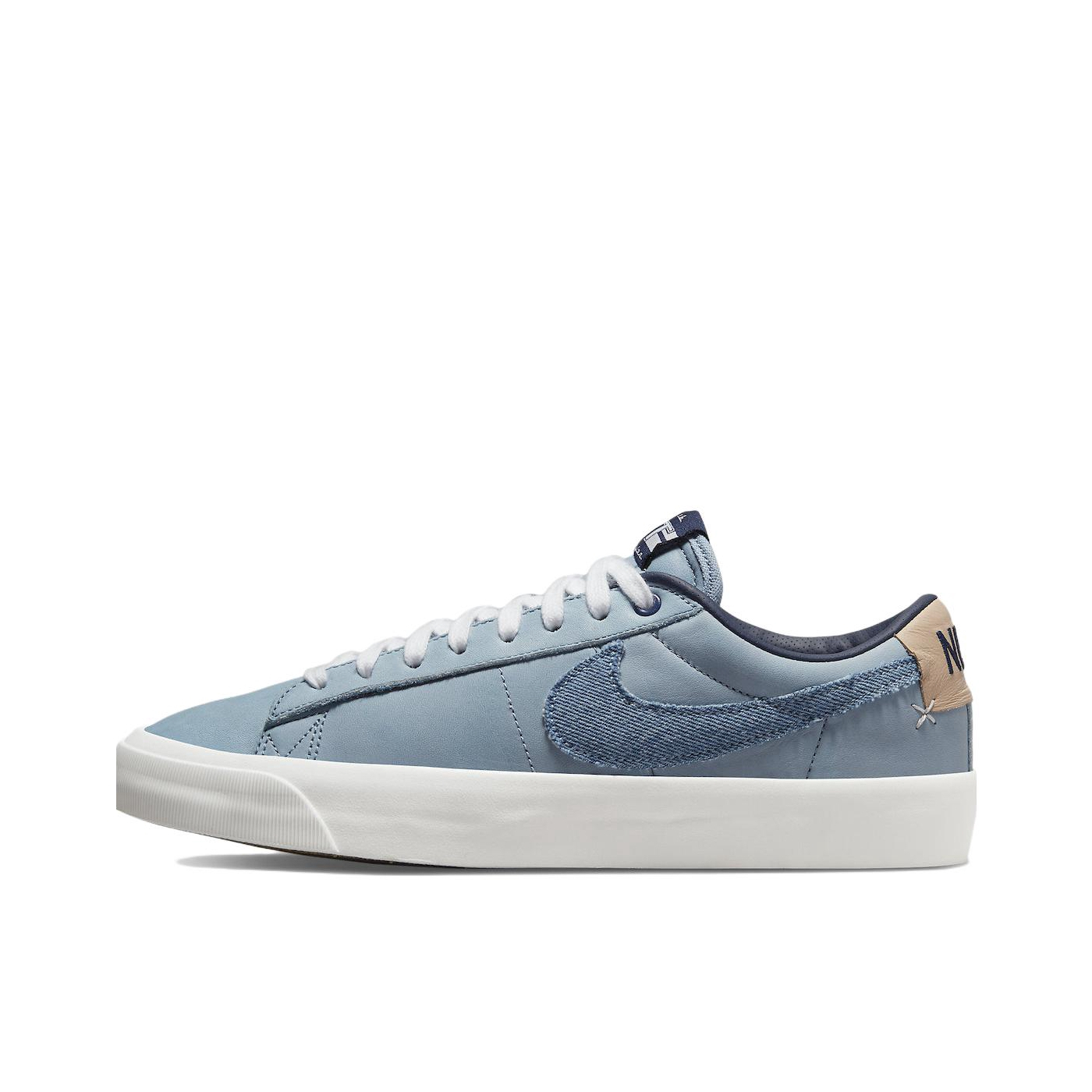 整双鞋选用蓝色皮革鞋面,搭配牛仔SWOOSH ,辅以生胶外底,在整体颜色非常舒适百搭。 Nike Zoom Blazer Low Pro GT PRM 采用耐穿皮革和水洗牛仔布等工装材料,结合经典低帮设计,不仅为滑板运动而做,在冬日穿搭里也毫不逊色。