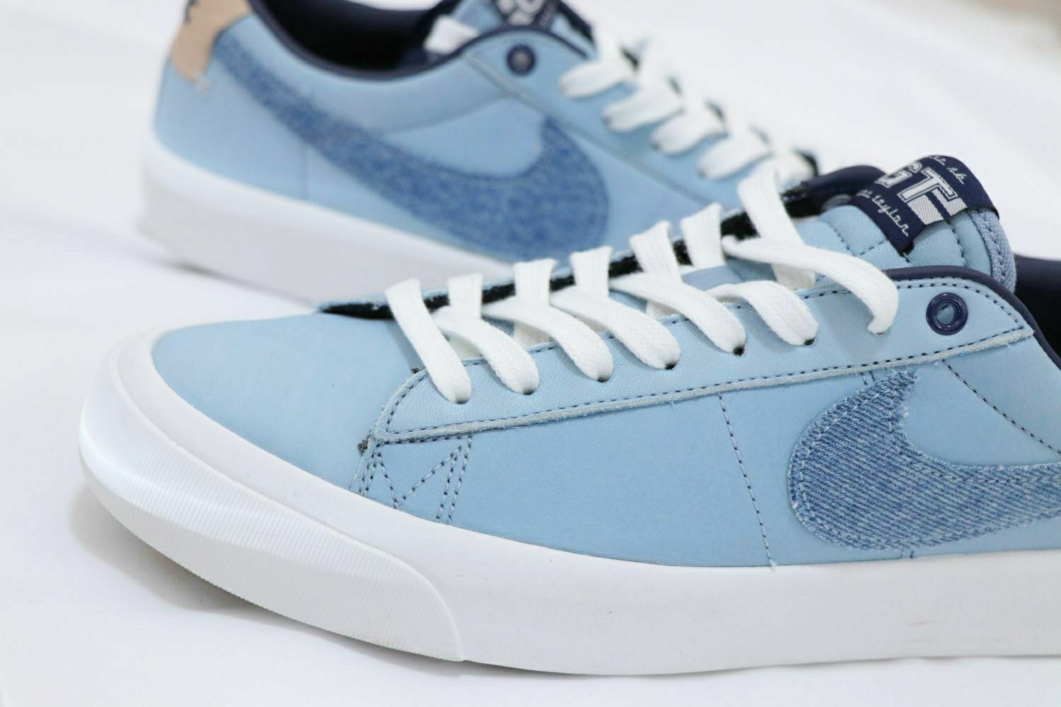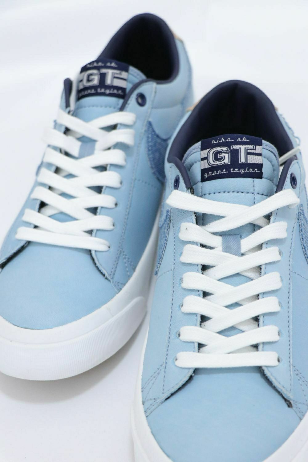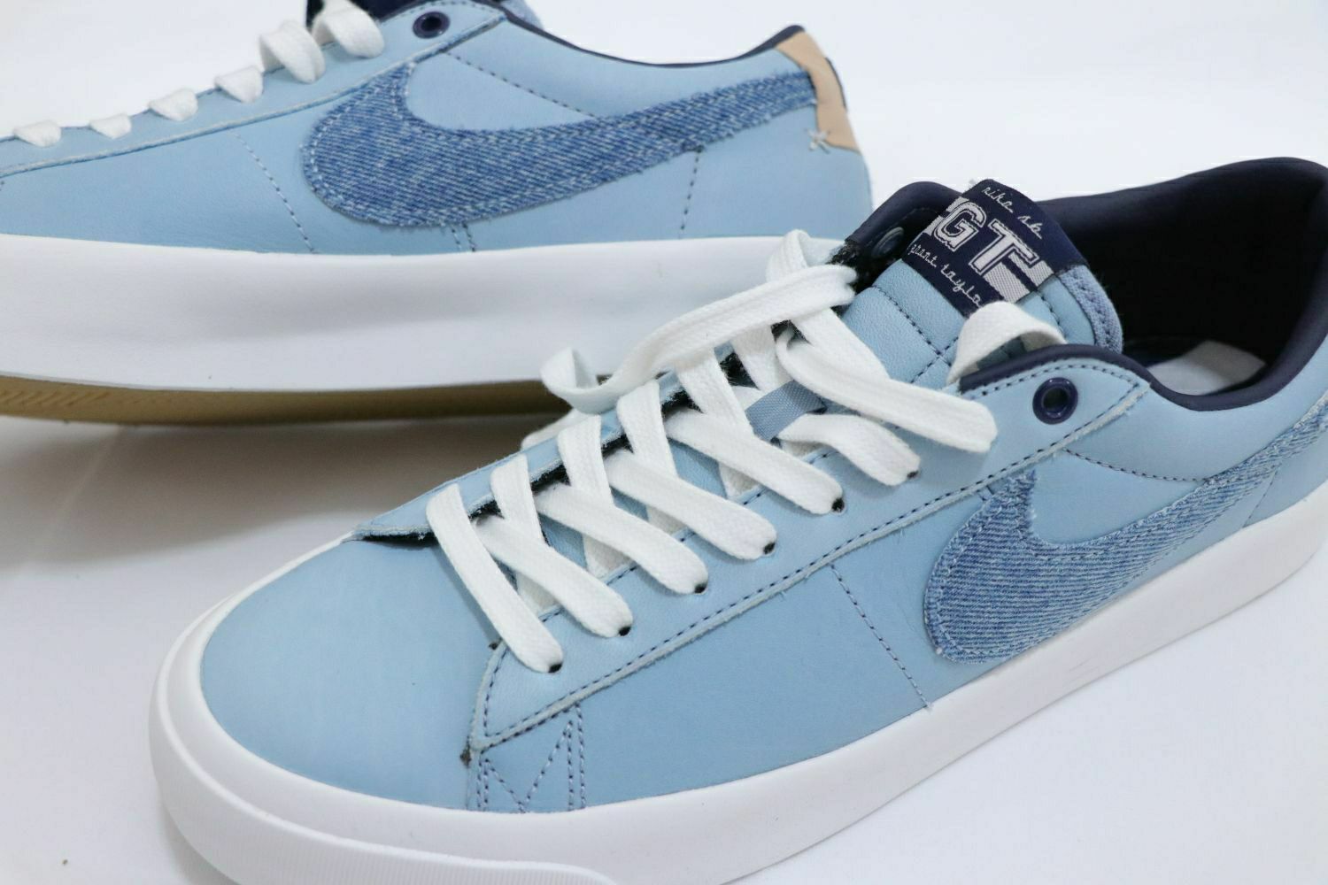 整双鞋选用蓝色皮革鞋面,搭配牛仔SWOOSH ,辅以生胶外底,在整体颜色非常舒适百搭。 Nike Zoom Blazer Low Pro GT PRM 采用耐穿皮革和水洗牛仔布等工装材料,结合经典低帮设计,不仅为滑板运动而做,在冬日穿搭里也毫不逊色。
