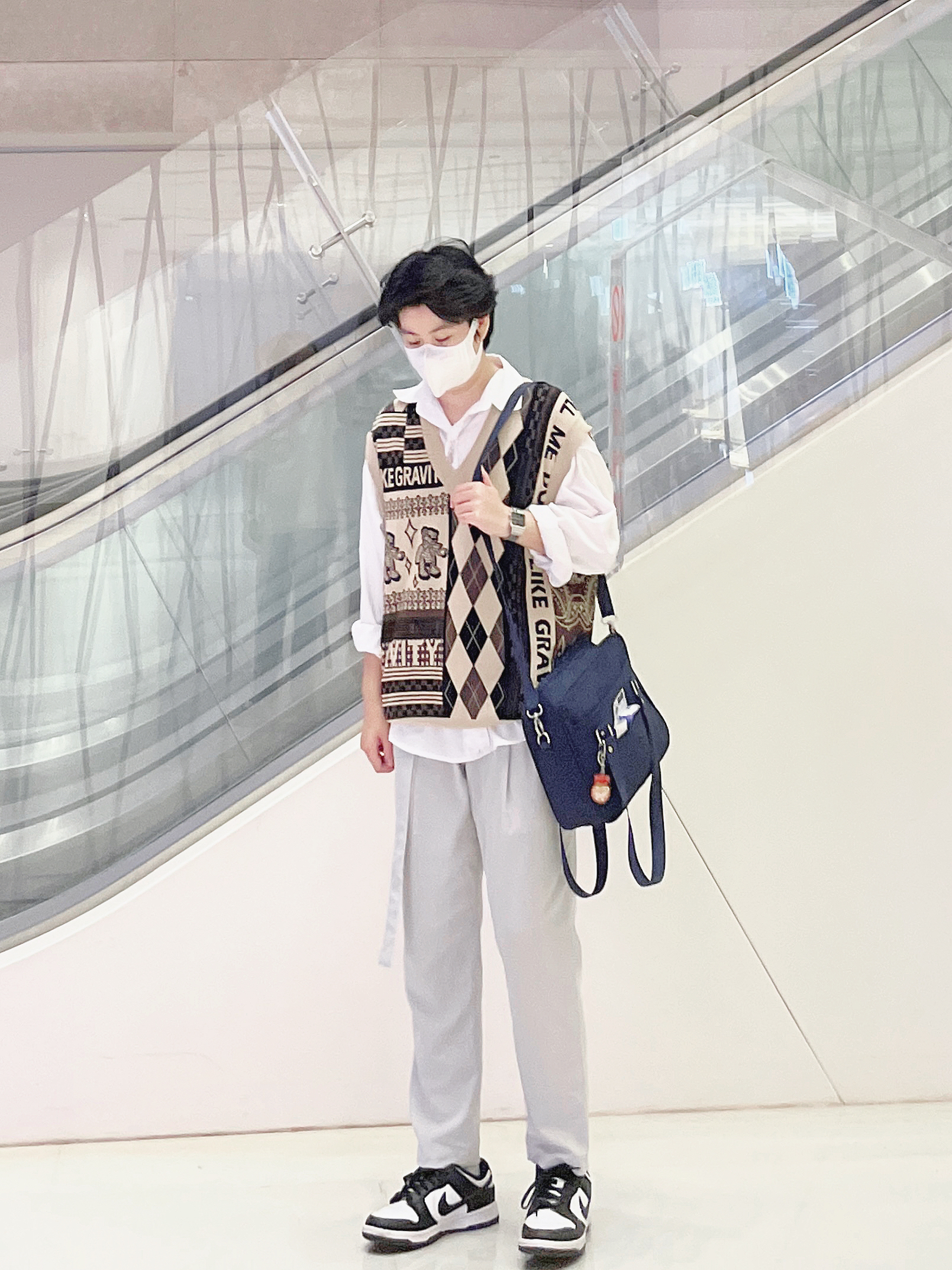 ✨今日搭配 白衬衫(打底的话建议选择质地比较柔软的面料) 复古拼接格纹背心 米白色休闲西装裤(腰带的设计很喜欢) ———————————————— ✨秋季很适合玩叠穿 简单的复古风格背心搭配白衬衫 简单复古的氛围感 ———————————————— ✨OOTD|每日穿搭|秋季穿搭|复古背心搭配|白衬衫叠穿搭配|米白色休闲西装裤穿搭|熊猫dunk唇穿搭|氛围感穿搭|日常休闲出街穿搭