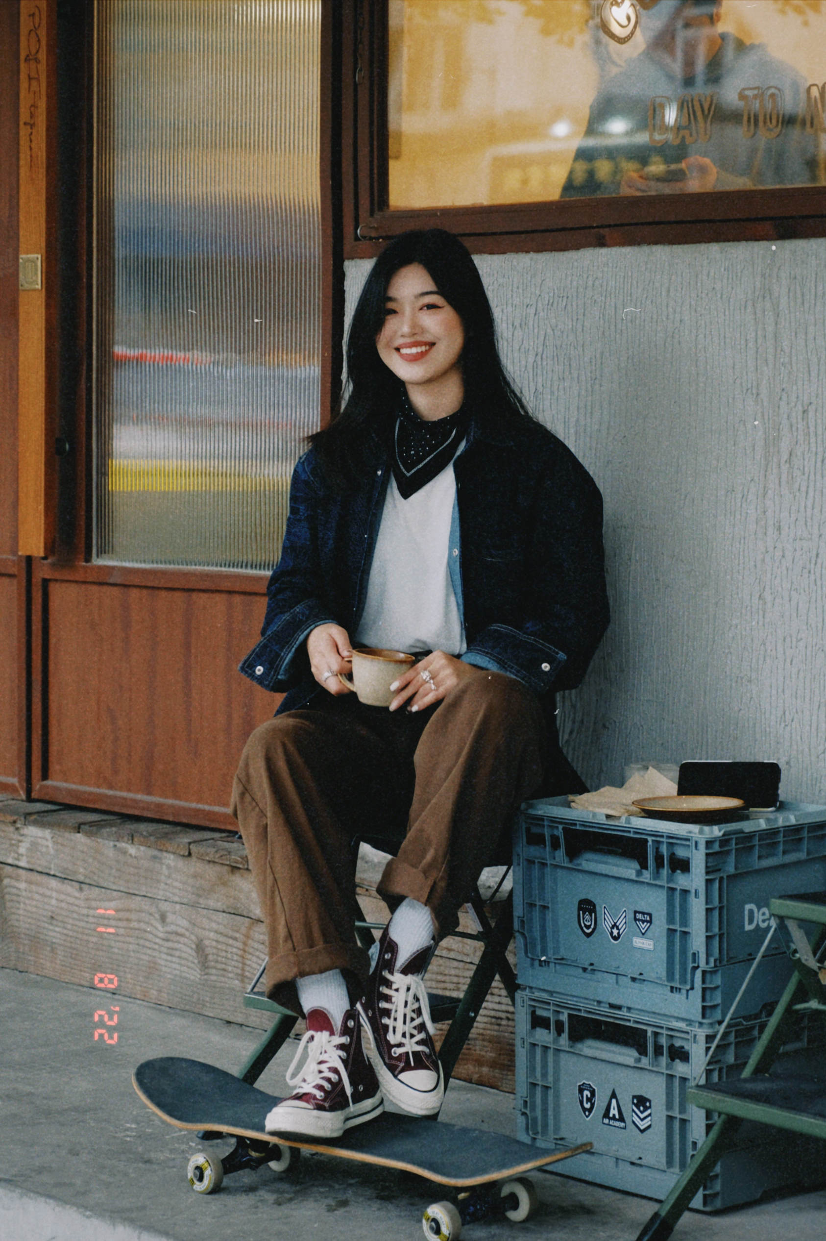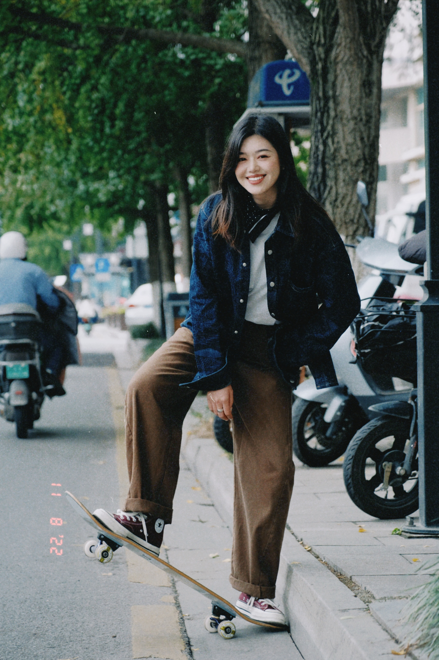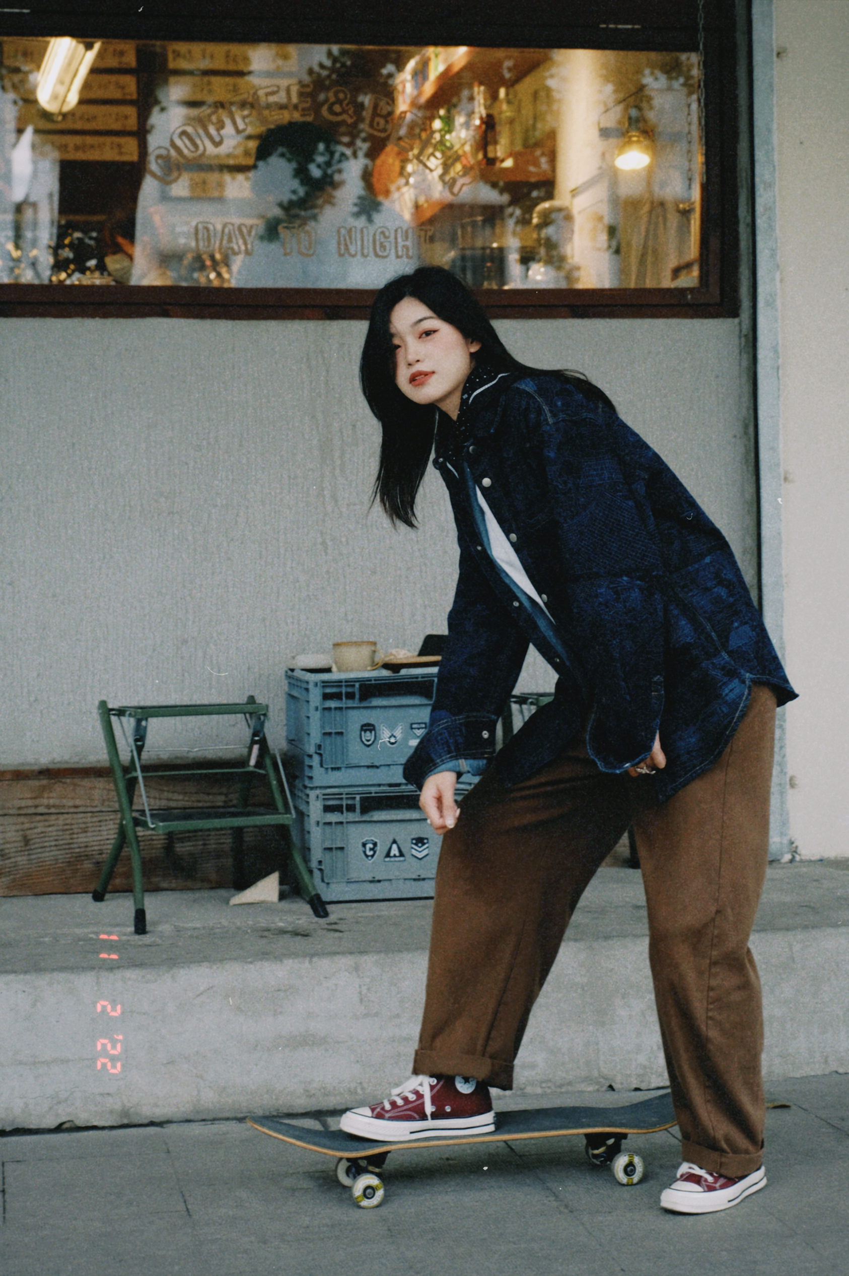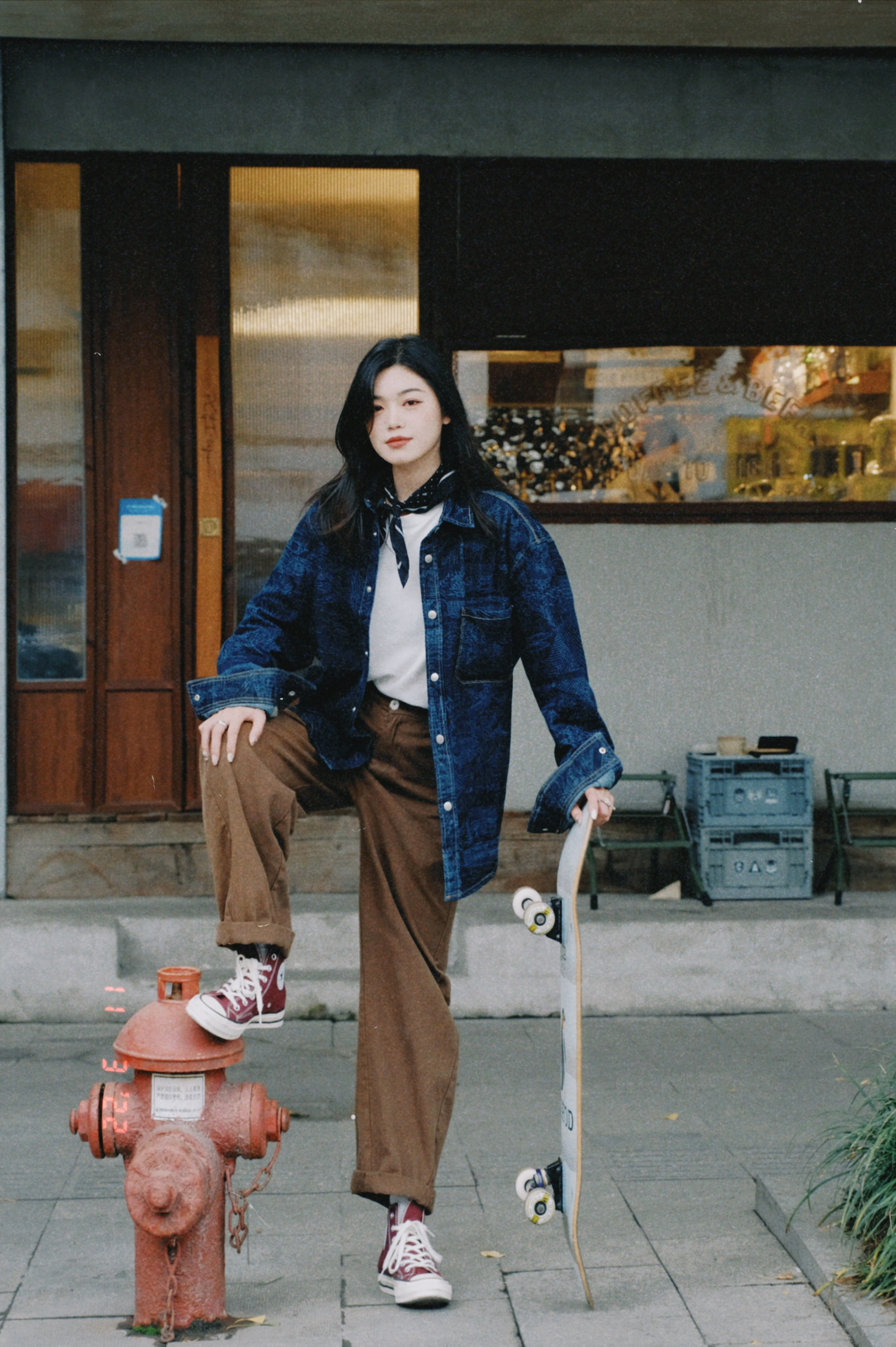 好喜欢这一套复古穿搭,牛仔重磅外套、棕色休闲裤、酒红色复古匡威!! 初秋就这么穿吧!