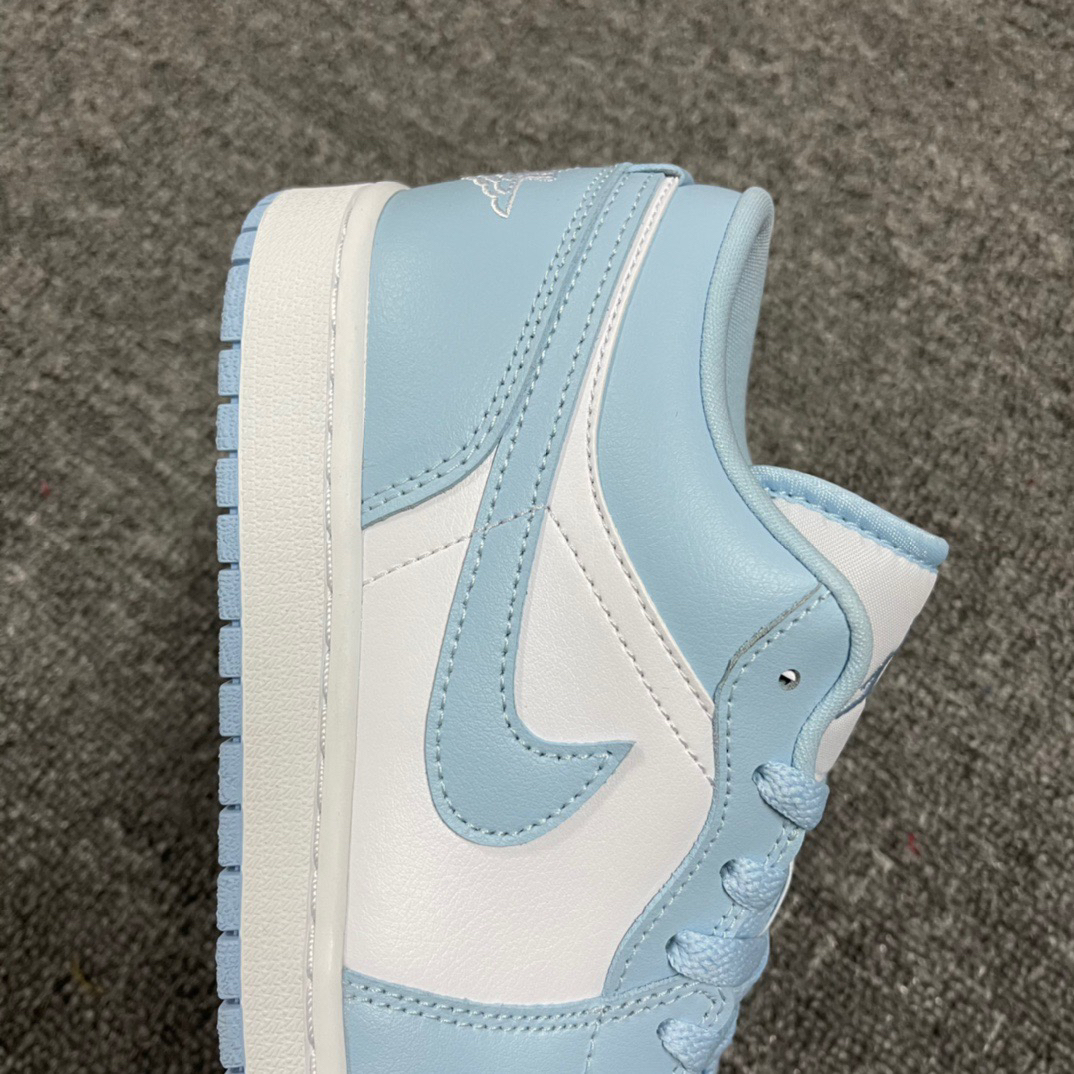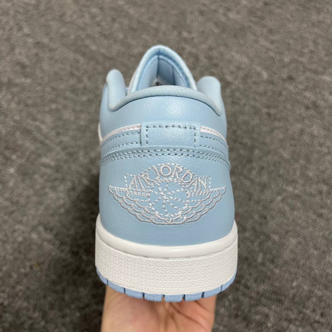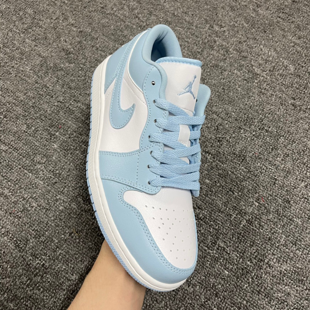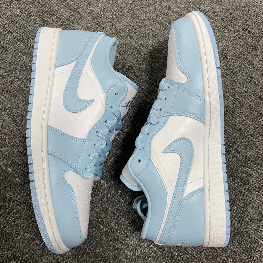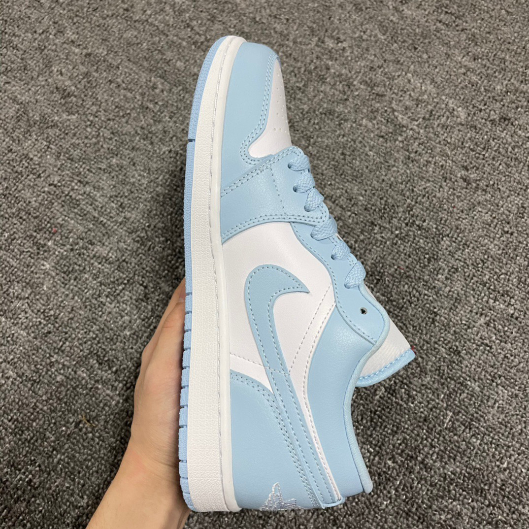 Air Jorden 1 Low "Aluminum" 复古篮球鞋女 款白蓝 此款 Air Jordan 1 Low 采用白色皮革底,铝蓝色覆层、Swoosh、鞋带、村里和橡胶外底。白色鞋舌、Wings 标志和中底完善了设计。
