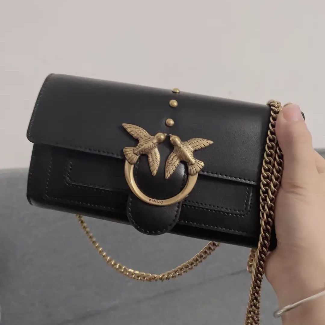 品牌名称:PINKO 新款斜挎钱包结构飞鸟燕子包 绝绝子啊,燕子栩栩如生的,好好看,我好喜欢,能装手机 特别好看,爱了爱了姐妹们买它 黑色太百搭了超级大气女孩子出门需要带的东西好多这款包包完全能够满足平时通勤我一般装 ysl 的气垫、口红、钥匙、餐巾纸、还有一个小卡包完全绰绰有余 (图源网络侵删)