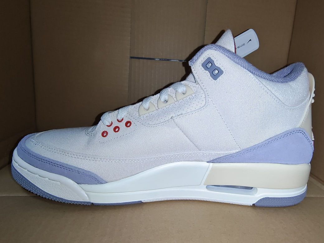 从图片方面我们可以轻易的看出,这次的jordan 3米白鞋面整体材质用了更加深的一股奶黄配色,从鞋子的“屁股”我们可以看出jordan 3米白 是更加接近氧化的配色的,米黄的绒面,显得做工更加精细以及再次突出鞋子的高级感。官方叫做aj3棉布不是没有道理的~