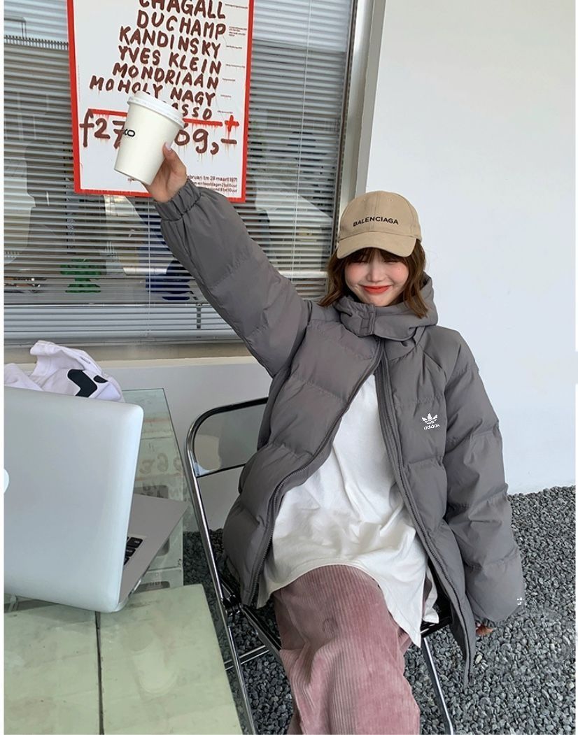 🎗【Adidas 三叶草 双标刺绣韩版短款面包服】 冬天就是要穿保暖可可爱爱的棉衣啦这款可以说是出街bi备的王炸款了保暖性巨好,上身轻便保暖毫无压力 大大的廓形剪裁修身能力max里面藏了再多衣服也看不出来 自带的保暖属性让你冬天都不会再寒冷同时又不会很厚重门襟拉链有效防止进风也给整体增添一抹温柔感~~ 连帽设计,帽子可拆卸哦!! 衣长 肩袖长 ...