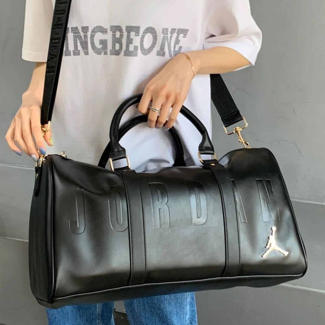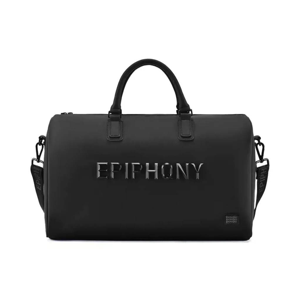 品牌名称:EPIPHQNY 大容量手提男女旅行包运动LOGO水桶包 黑色斜挎包,质感十足,黑色在一定程度上耐脏的同时,非常百搭,适合喜欢简约干净的男生。 整体色调避免过花,可以适当加银饰点缀,打造偏街头氛围感 图源网络侵删