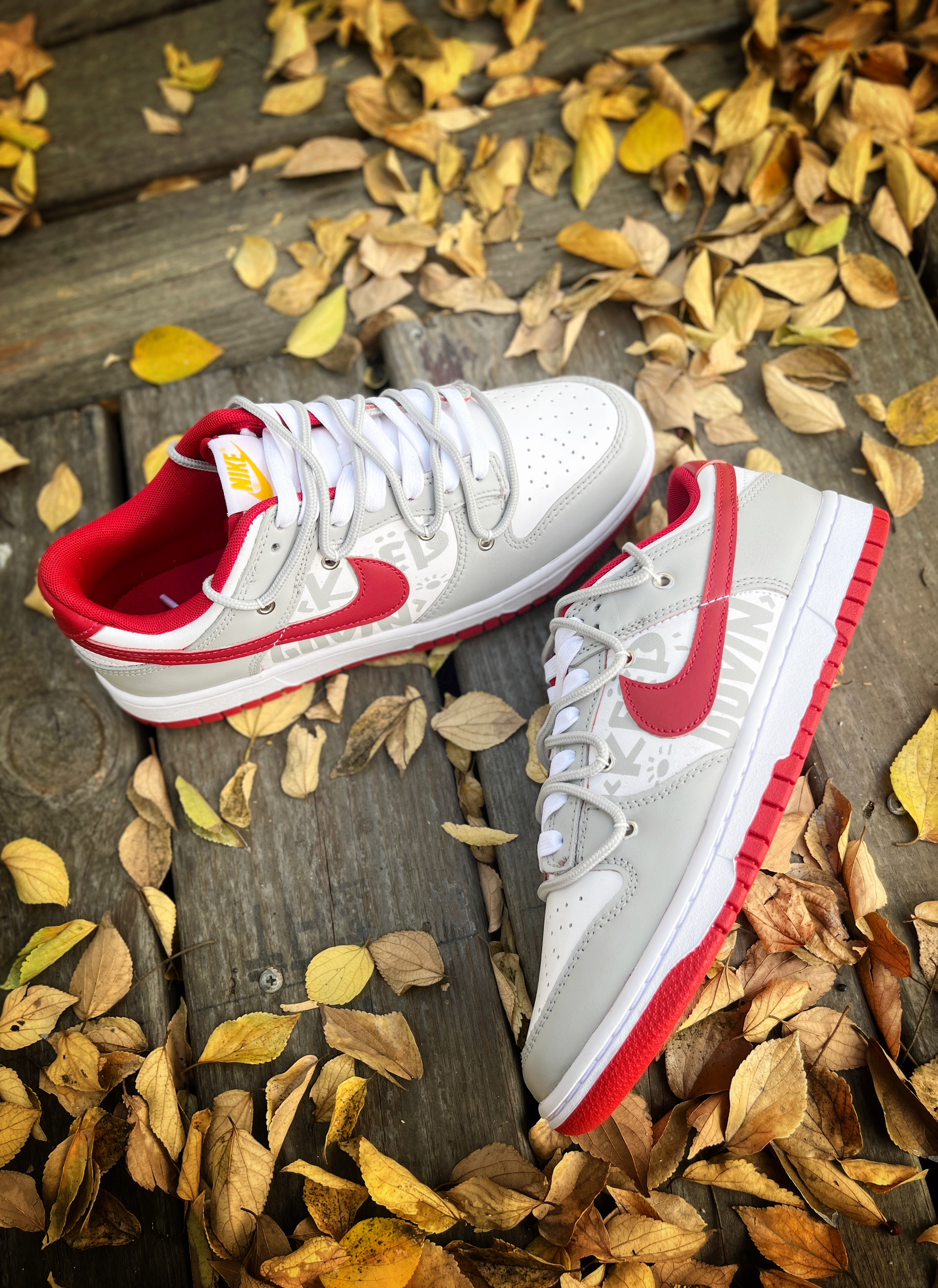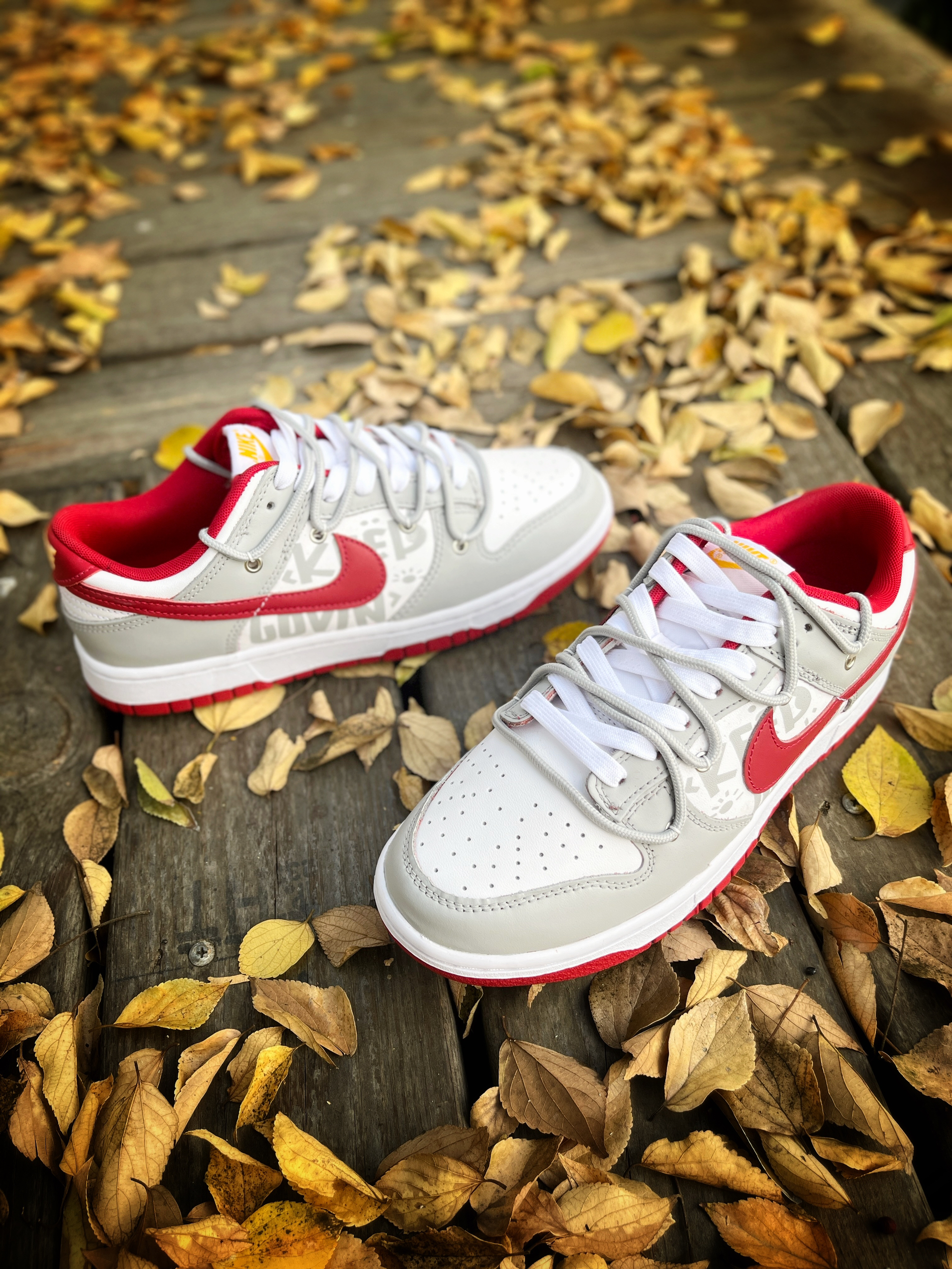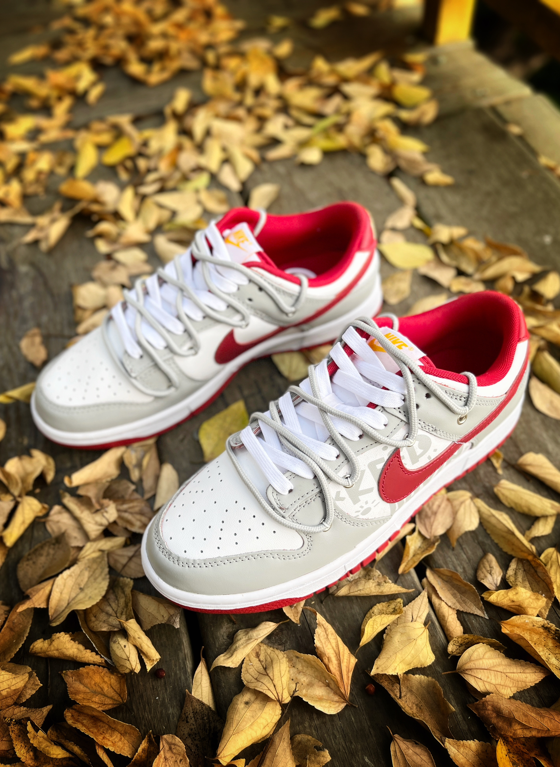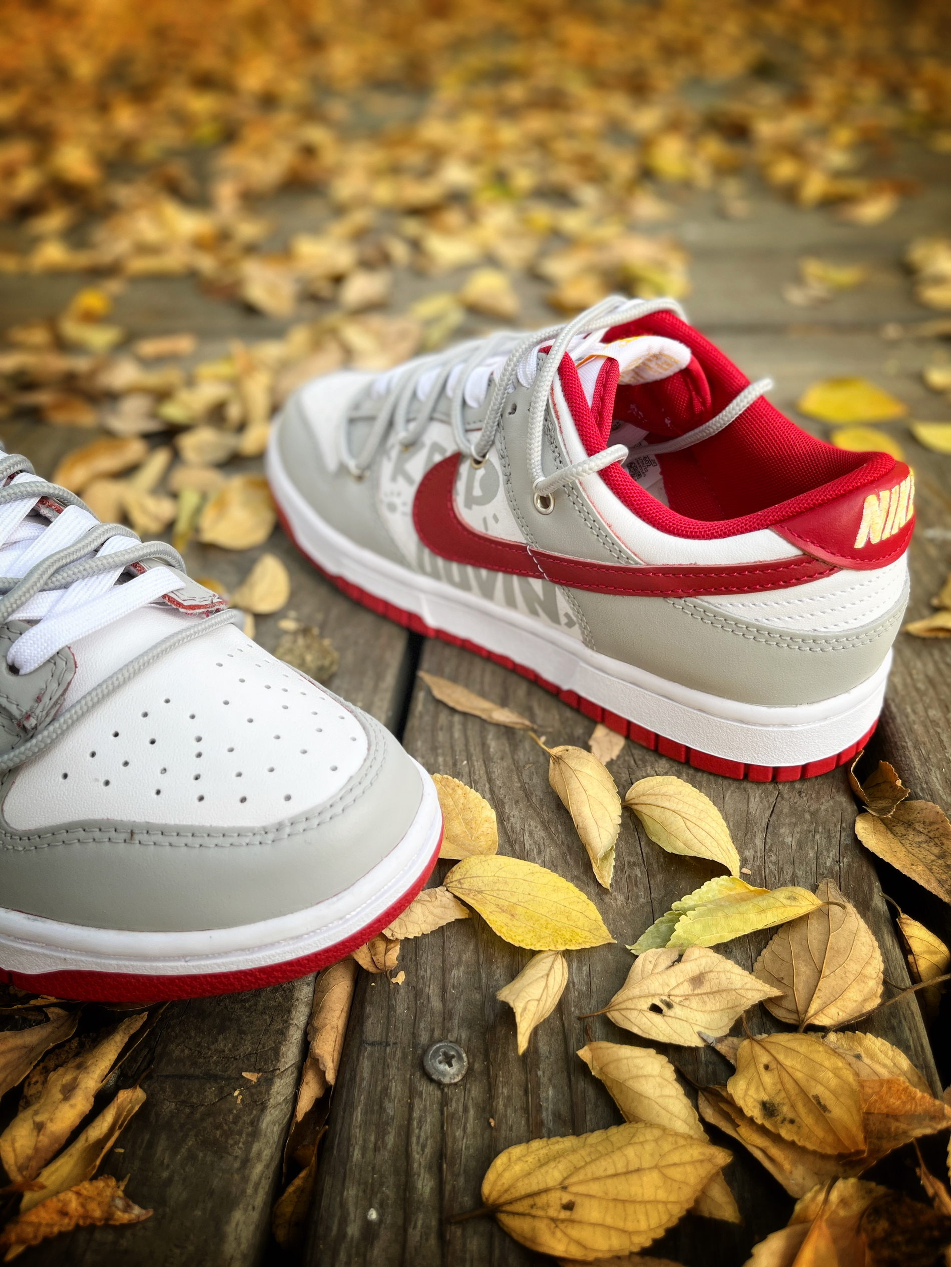 秋季出街该穿什么鞋呢?今天为大家带来这款颜值超高适合秋天穿的板鞋定制版Dunk Low构解涂鸦! 鞋身采用红白灰三色相搭配,看上去就给人一种简约大气的感觉!鞋身侧面红色的Swoosh十分吸引眼球,吸睛度爆棚!侧面还带有喷绘的英文涂鸦,非常具有潮流气息!鞋带部分也是采用了双层的设计,带来良好的立体性的同时又增添了不少时尚气质! 一双非常好看的复古板鞋,也是超级百搭的!秋季出街选择款还是挺不错的选...
