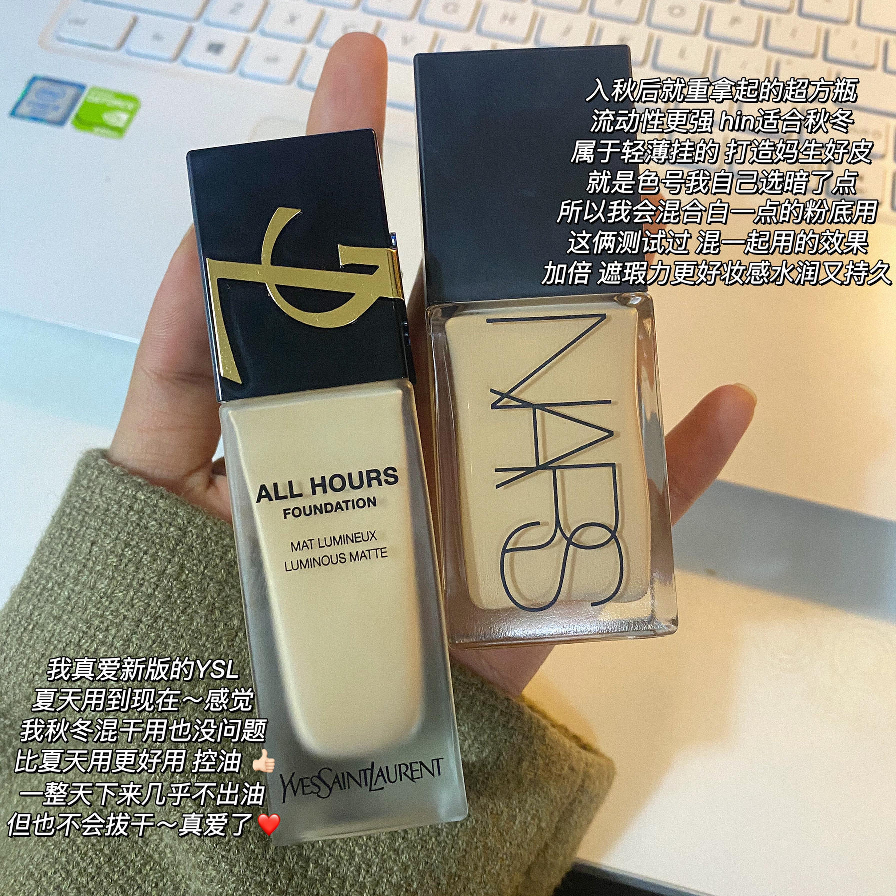 本篇笔记关联了【干皮】NARS/娜斯 超方瓶流光美肌粉底液 不暗沉轻薄润贴修饰肤色持久奶油肌 30ml L2中1白 MONT BLANC 中性白皙肤色、【油皮】YSL/圣罗兰 浮雕恒久粉底液 超薄服帖哑光 25ml LC2黄2白 白皙肤色、3CE/三熹玉 细腻易上色九宫格眼影盘 哑光细闪九色纷呈 橘棕盘OVERTAKE 8.1g等商品,为用户提供真实的使用体验和购买参考。