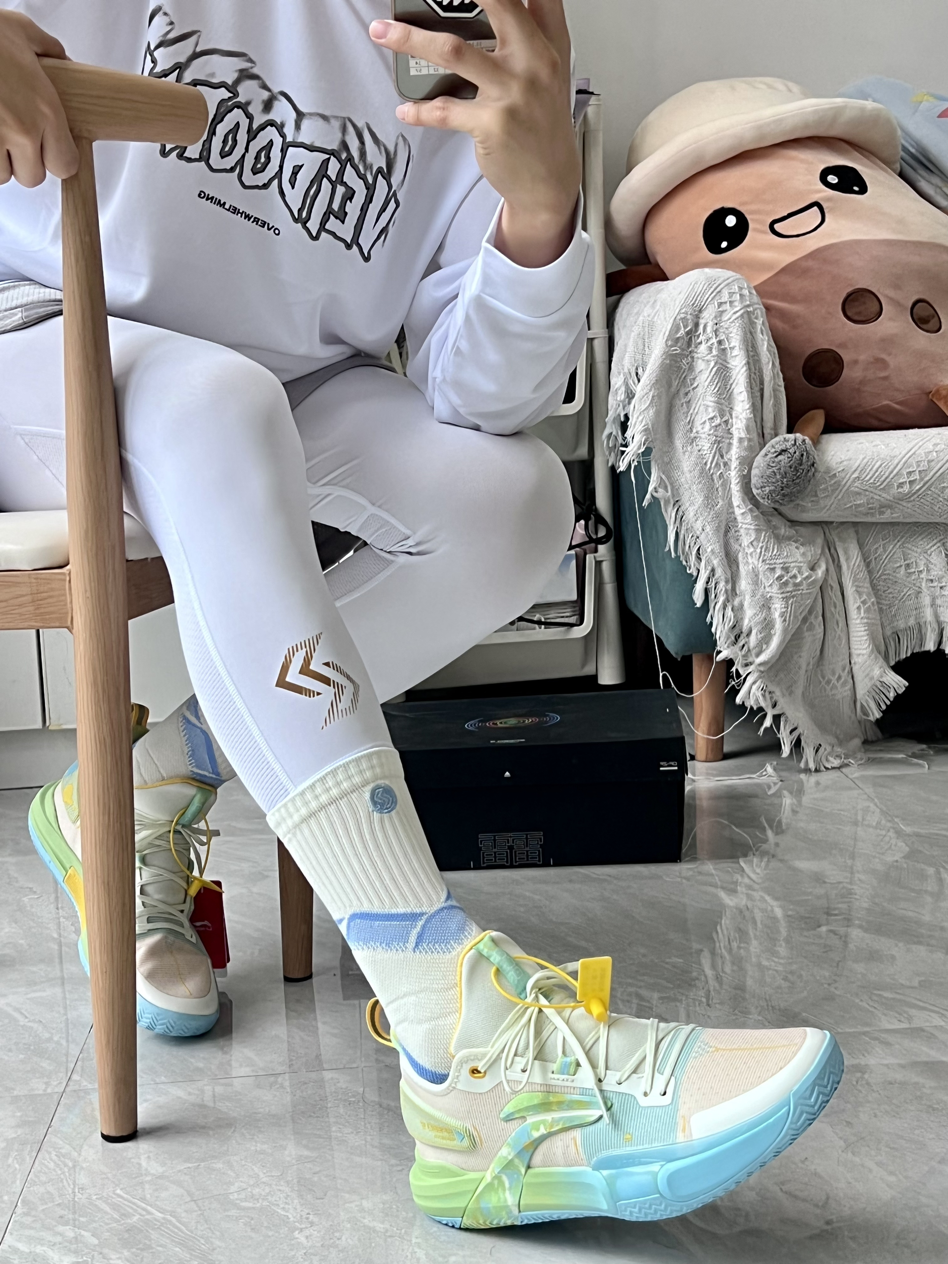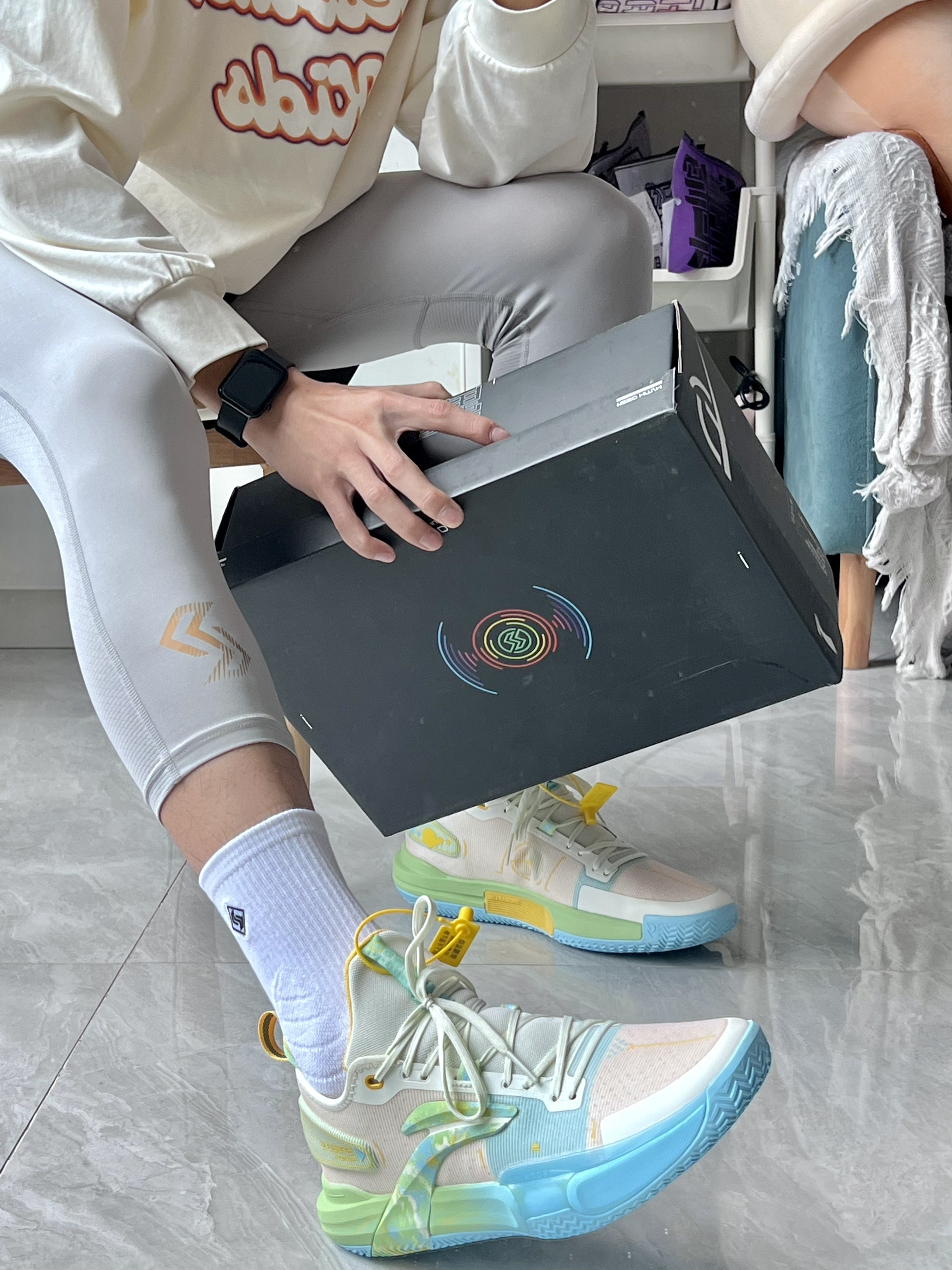 闪击9可以肯定的说他是一双性价比非常高的球鞋奶油白这配色真的很绝非常适合速度型后卫前掌一大块tpu让你启动不拖沓+前掌一大块翻但是刚上脚感受不到可能要打球之后磨合开硬也是真的哈哈哈非常好看!!