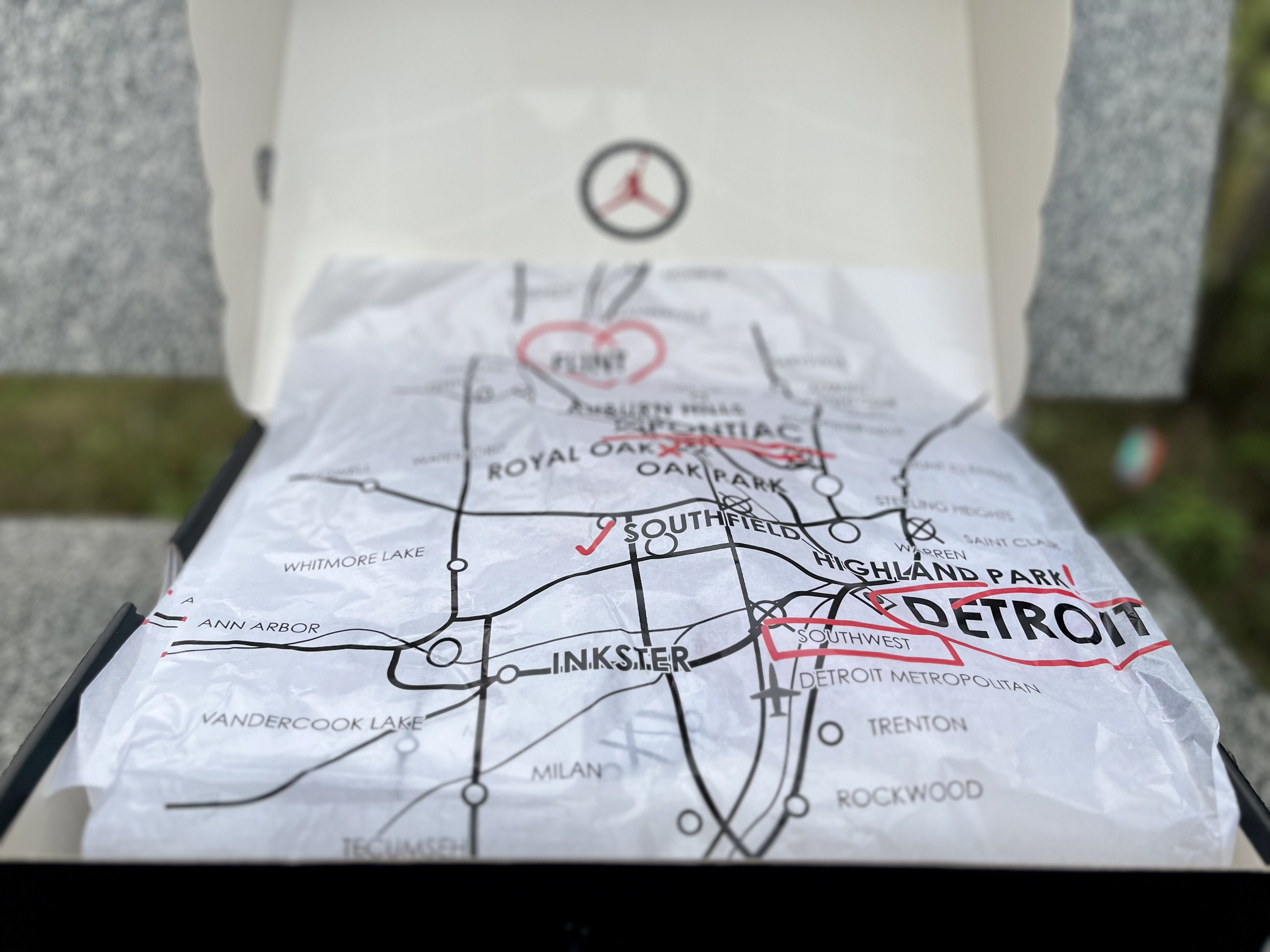 #aj2 #年度最爱鞋靴 #入冬哇塞好鞋推荐 设计:整体来说,这双鞋在我看来,非常具有设计感,Two18主理人不仅用心,而且设计理念独到,各个要素细节把控是非到位。鞋盒通体印有地图🗺️图案,呼吁大家具备环保意识,鞋盖侧面为特意裁剪出飞翼形状,表明这是一双Jordan的鞋盒,衬纸及鞋垫印有底特律大都会地图,是Two 18 的home,鞋底渐变透明外底,含射弗林特水污染,再次与鞋盒地球🌍呼应,抱有美...