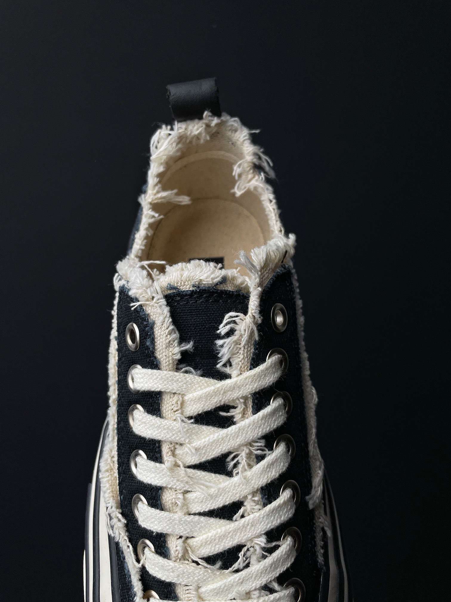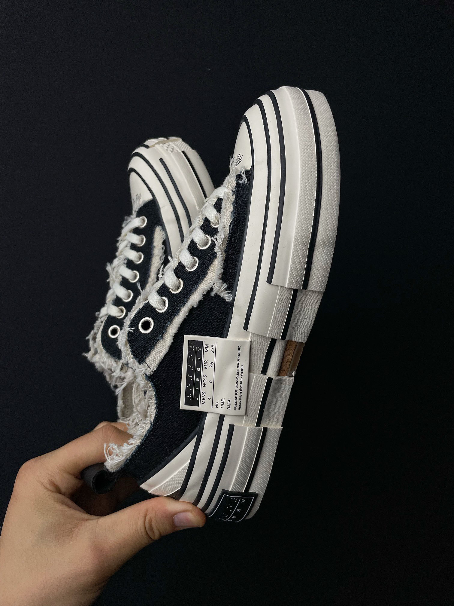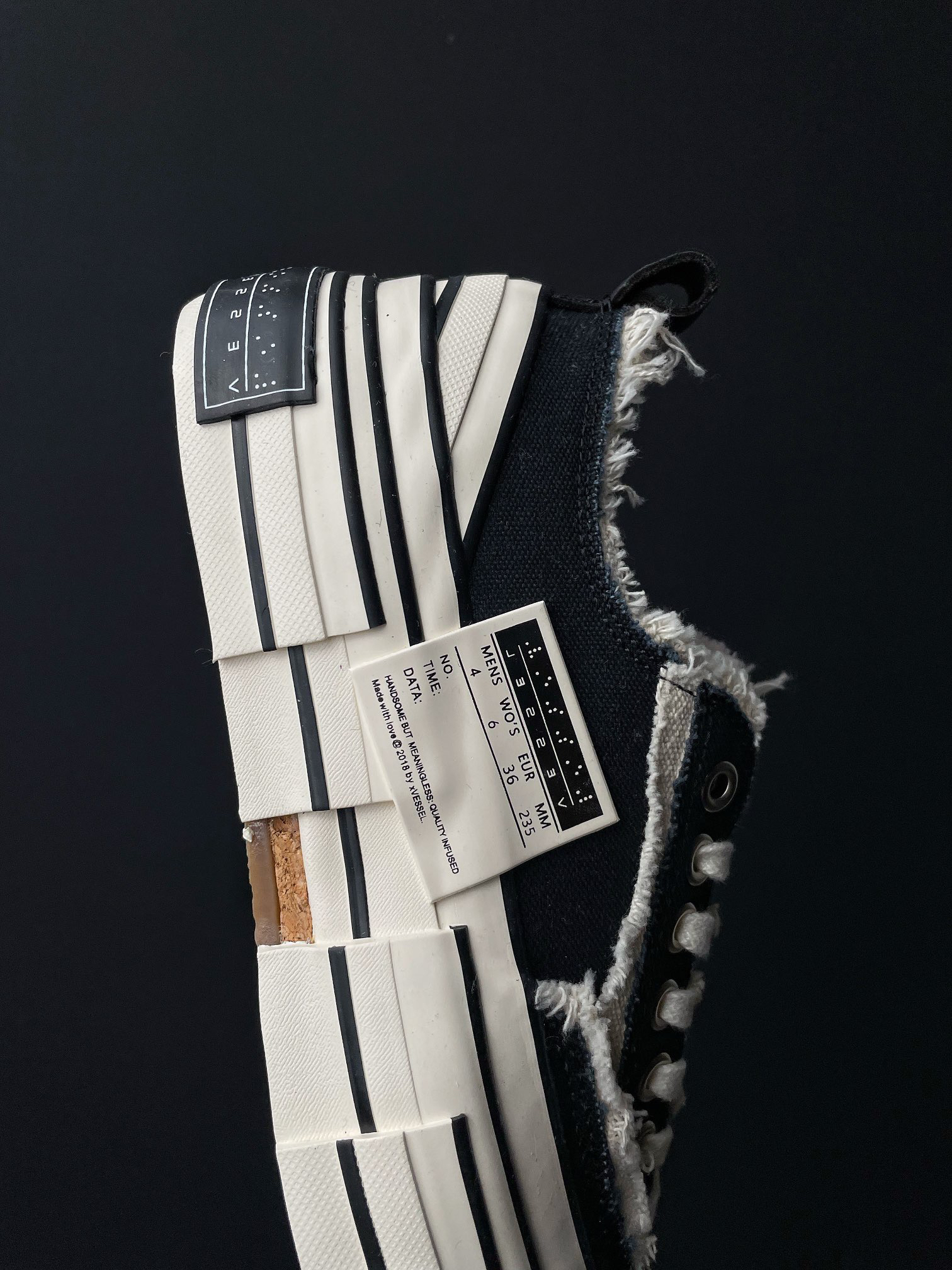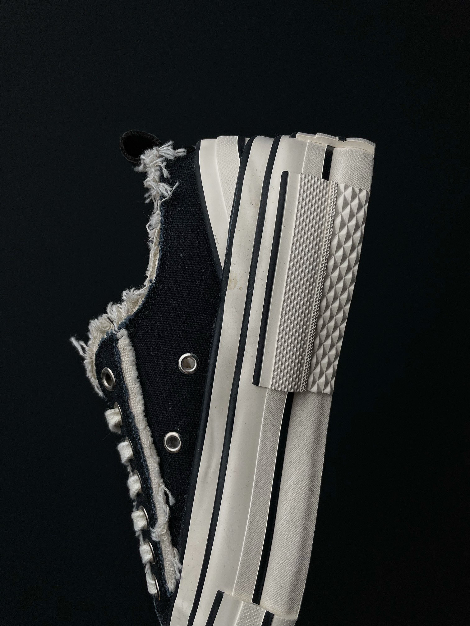xVESSEL G.O.P. Lows Black 低帮板鞋 黑色 这款硫化鞋来自xVESSEL品牌,采用解构式设计,搭配不规则流 苏饰边,硫化中低全面包裹,简单不单调,让细节有灵魂。