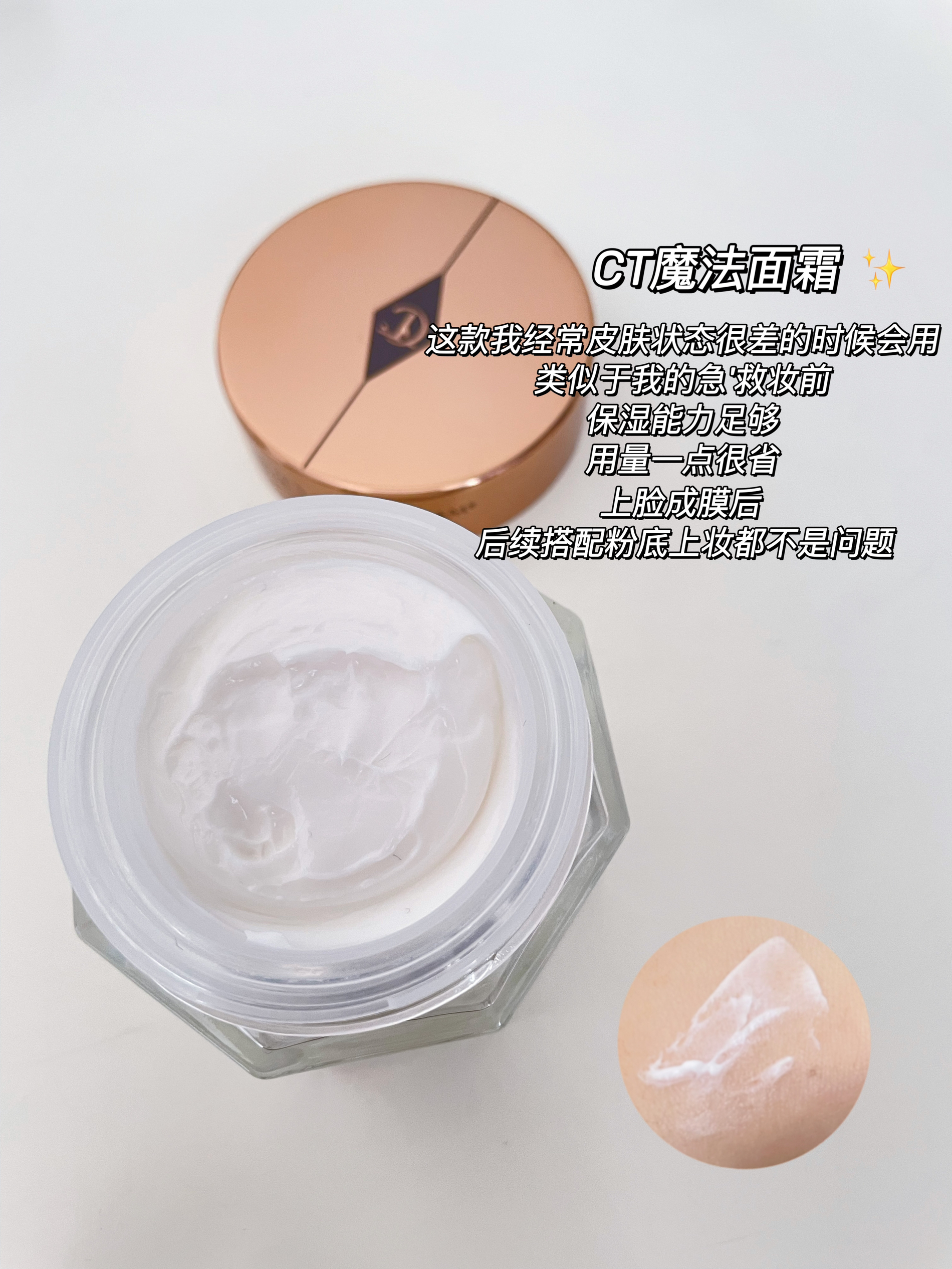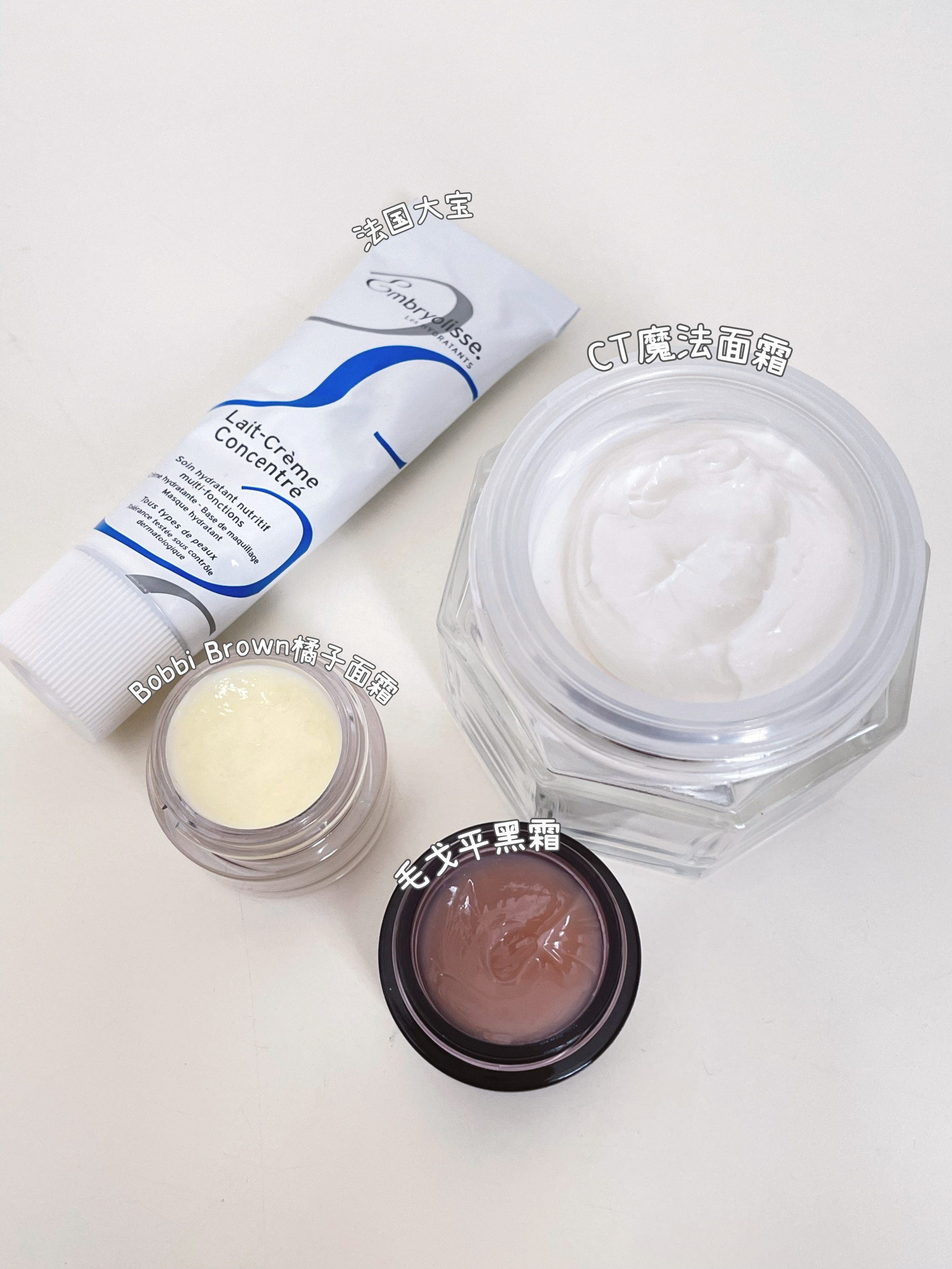 本篇笔记关联了法国大宝 保湿妆前乳隔离霜 补水 75ml、毛戈平 奢华养肤黑霜 保湿滋养修护滋润紧致 滋润保湿、CT/夏洛特蒂铂丽 魔法面霜妆前乳 1瓶等商品,为用户提供真实的使用体验和购买参考。