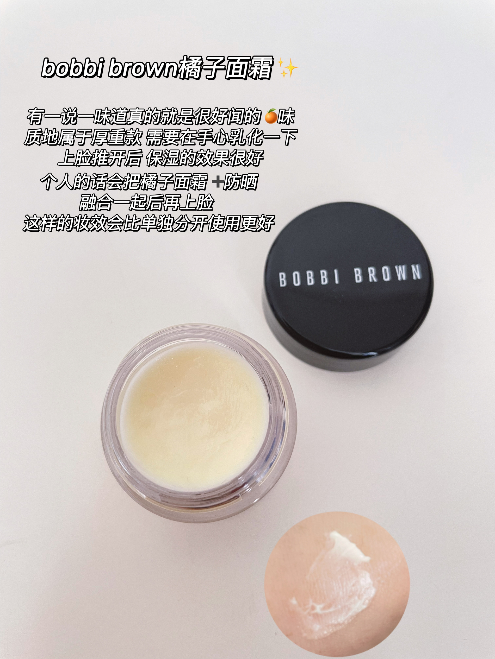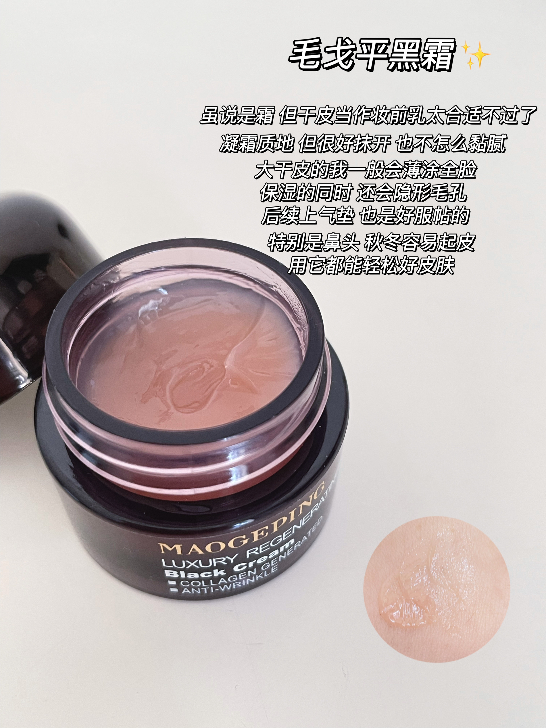 首先自我介绍一下~ 肤质 | 大干皮 有斑 只要皮肤状态不好 鼻头会起皮'卡'粉 脸颊处易斑'驳 以下分享的这四款干皮给我锁死! ⋅毛戈平黑霜 凝霜质地,推开不黏腻,保湿的同时还会隐形毛孔 大干皮的我有了它搭配啥气垫都不怕了 而且我比较懒,几乎涂完直接拍气垫,不存在搓泥 特别是鼻头,秋冬容易起皮,用它都能轻松好皮肤 ⋅bobbi brown 橘子面霜 橘子🍊味可好闻了,个人觉得质地是...