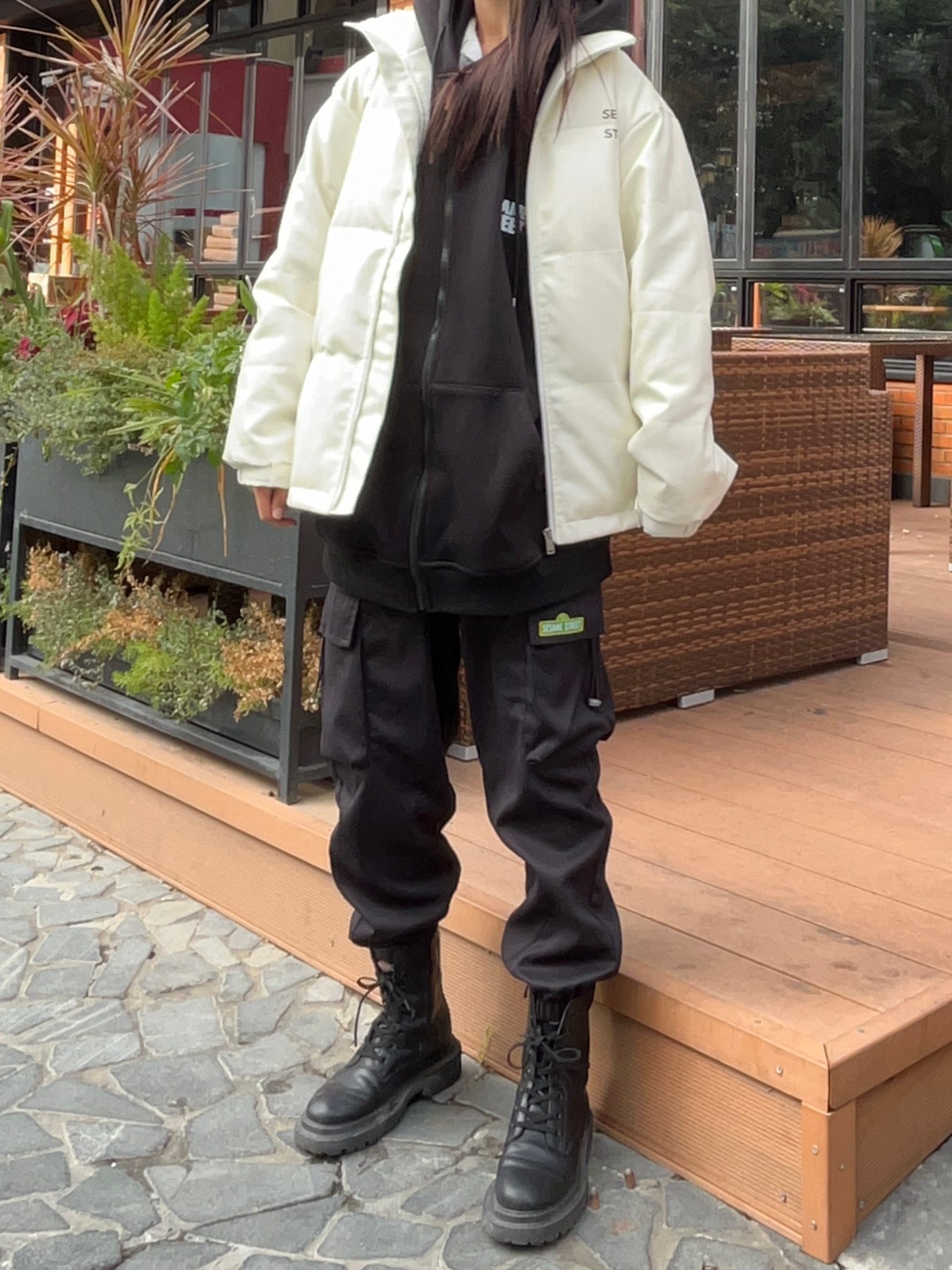 hii!大家好啊!这里是大双啊! 👧:172cm|52kg 今日LOOK👔 白色羽绒服👕➕黑色裤子➕黑色靴子👢 简单高级的黑白配甜酷女孩来啦 这一身太舒适啦!o一整个韩系休闲风~ 贼喜欢这种大大的休闲大棉服呀~ 胸前白色小标点缀得刚好~ #你是懂穿搭的