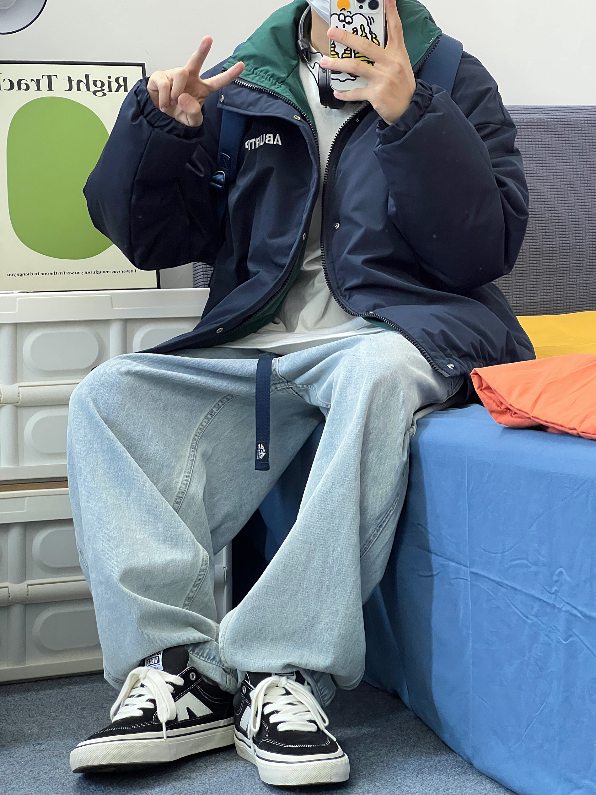 真的很喜欢藏青色! 很显白 很高级好爱~ 简单干净 提前入冬啦! 少年感拉满🥳