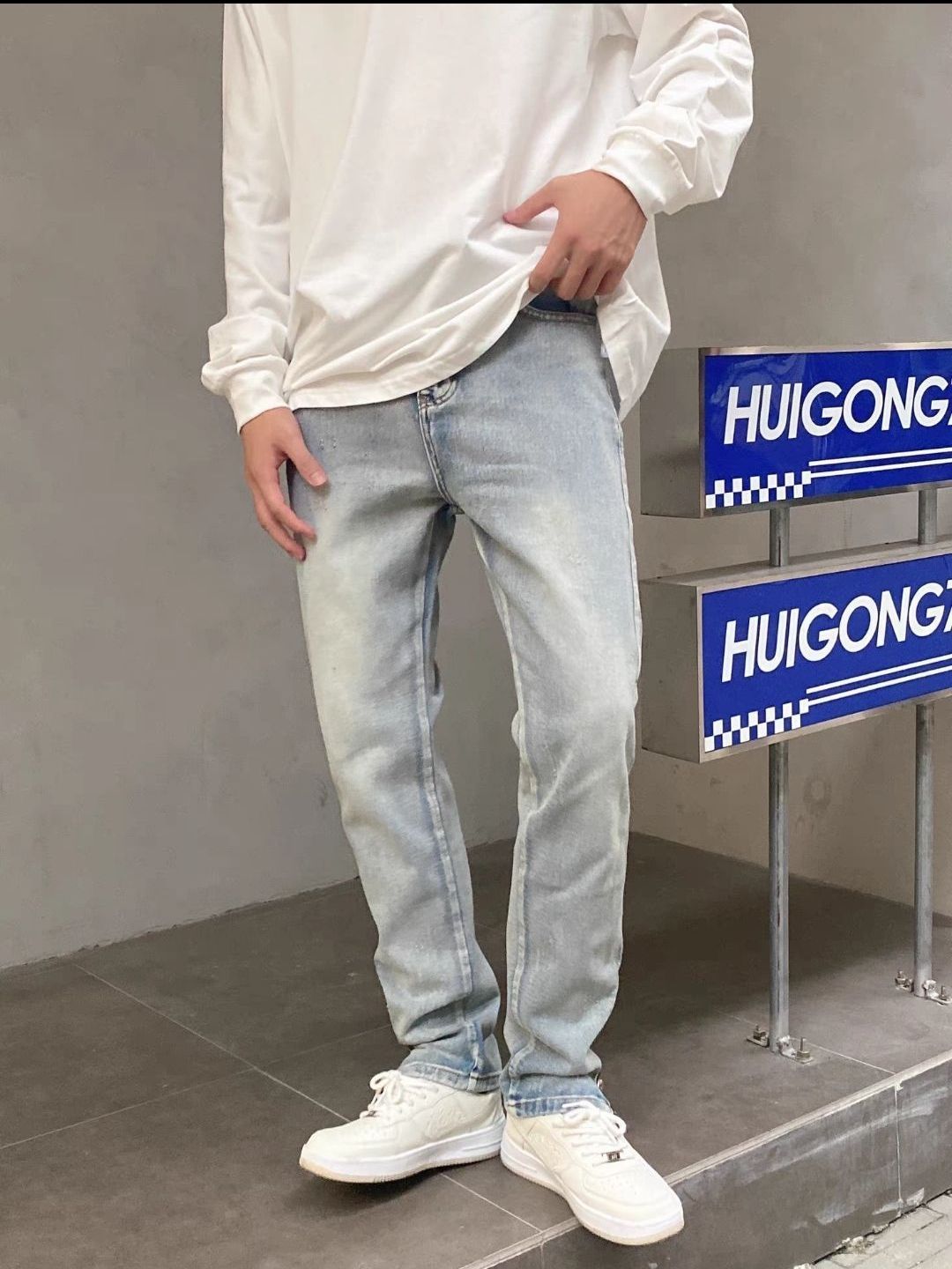 🌵🌵🌵UKTN 2022AW复古直筒宽松牛仔裤 🦔🦔🦔 米色卫衣 白色内搭 蓝色牛仔裤 白色运动裤 🐈🐈🐈 牛仔裤版型好看的,男生女生都可以穿,中性风穿搭真的好看,这个男生很青春,真的是男大学生的feel🐩🐩面料也柔软,不像别的牛仔裤一样硬硬的,洗的时候也不会下色🎄🎄 🐿🐿 上班穿搭或者是日常逛街还是约会都是一个不错的选择!!! 🐕🐕(图片来自网络 侵删