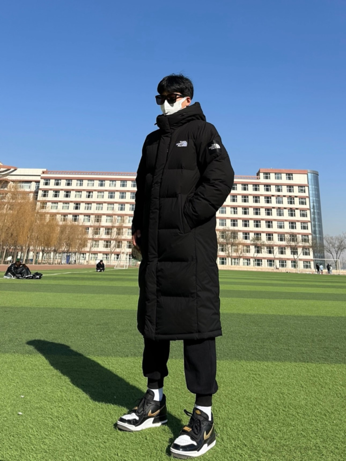 这一款是Peak 防风连帽保暖中长款羽绒服 DF524042,中长款羽绒服绝对是yyds! 而且这一身黑色系穿搭也是非常简约非常酷又有个性的那一种,搭配上黑色长裤超级好看 比较适合出去玩的时候穿,真的又酷又帅的感觉了 (图源来自网络)