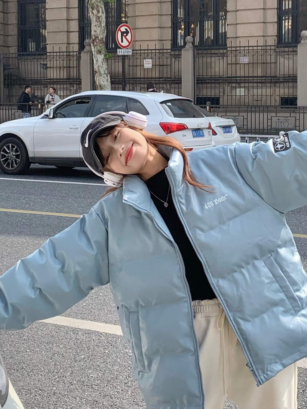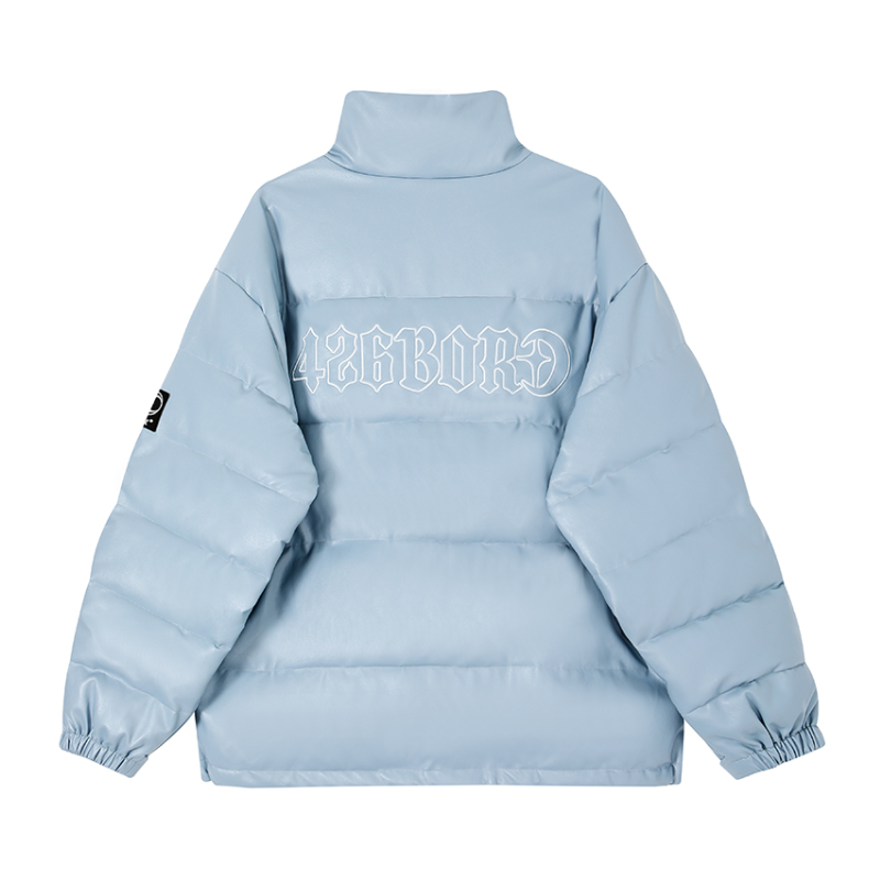 这一款是F426 2022AW 星星月亮LOGO哥特字母PU皮棉服 BDMF22AW-4666,很适合秋冬的一款单品 这款棉服的颜色是浅蓝色的,浅蓝色的设计真的是超级好看超级温柔的 搭配上一条浅色的休闲裤穿也是超级好看超级温柔的那种 (图源来自网络)