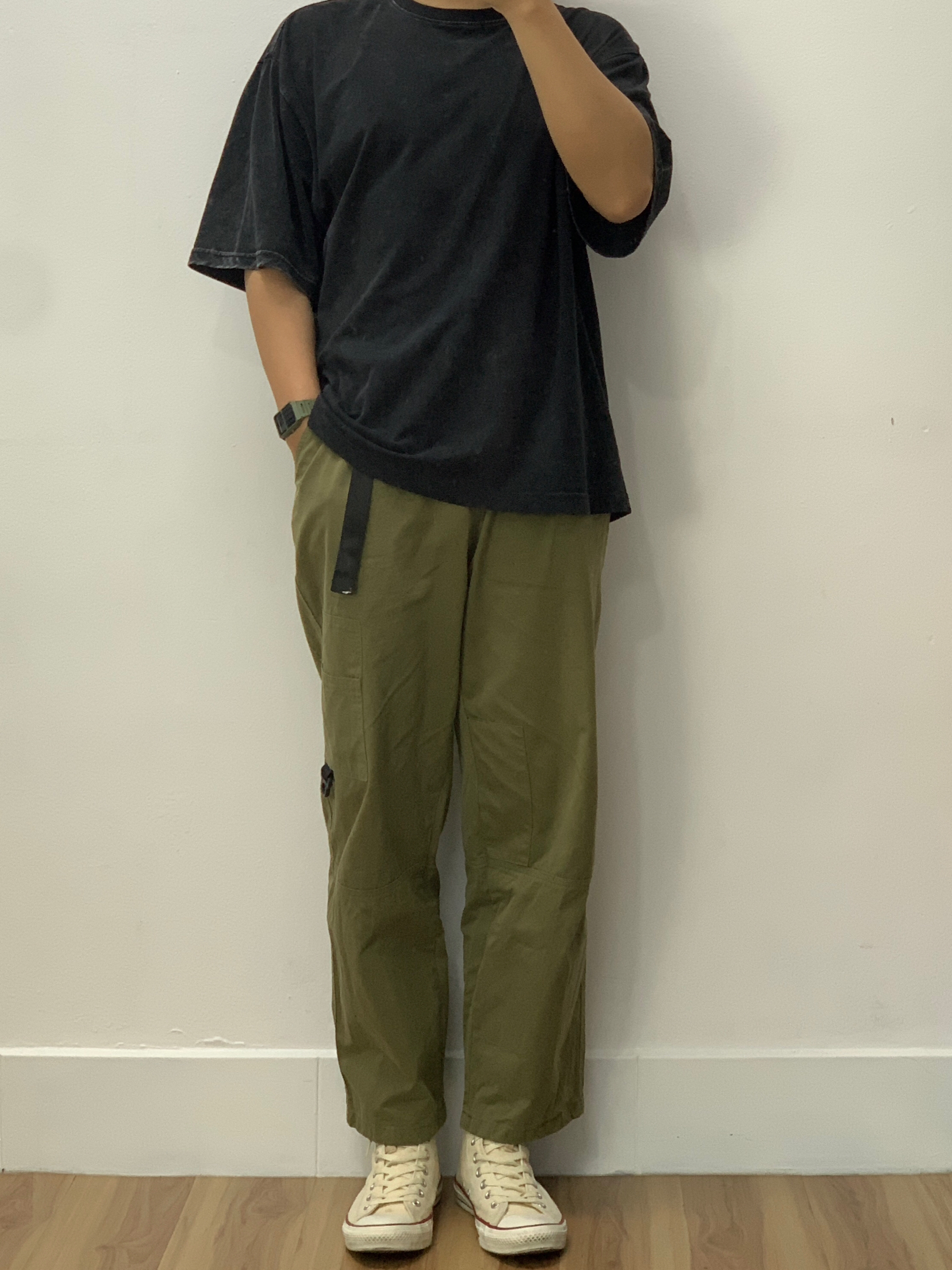 OOTD | 早八人今天穿什么? 👕水洗黑短袖/浅色调 👖军绿阔腿裤/GTRG 👟米色高帮/匡威 ⌚绝命毒师军绿/卡西欧 CA-53WF-3B