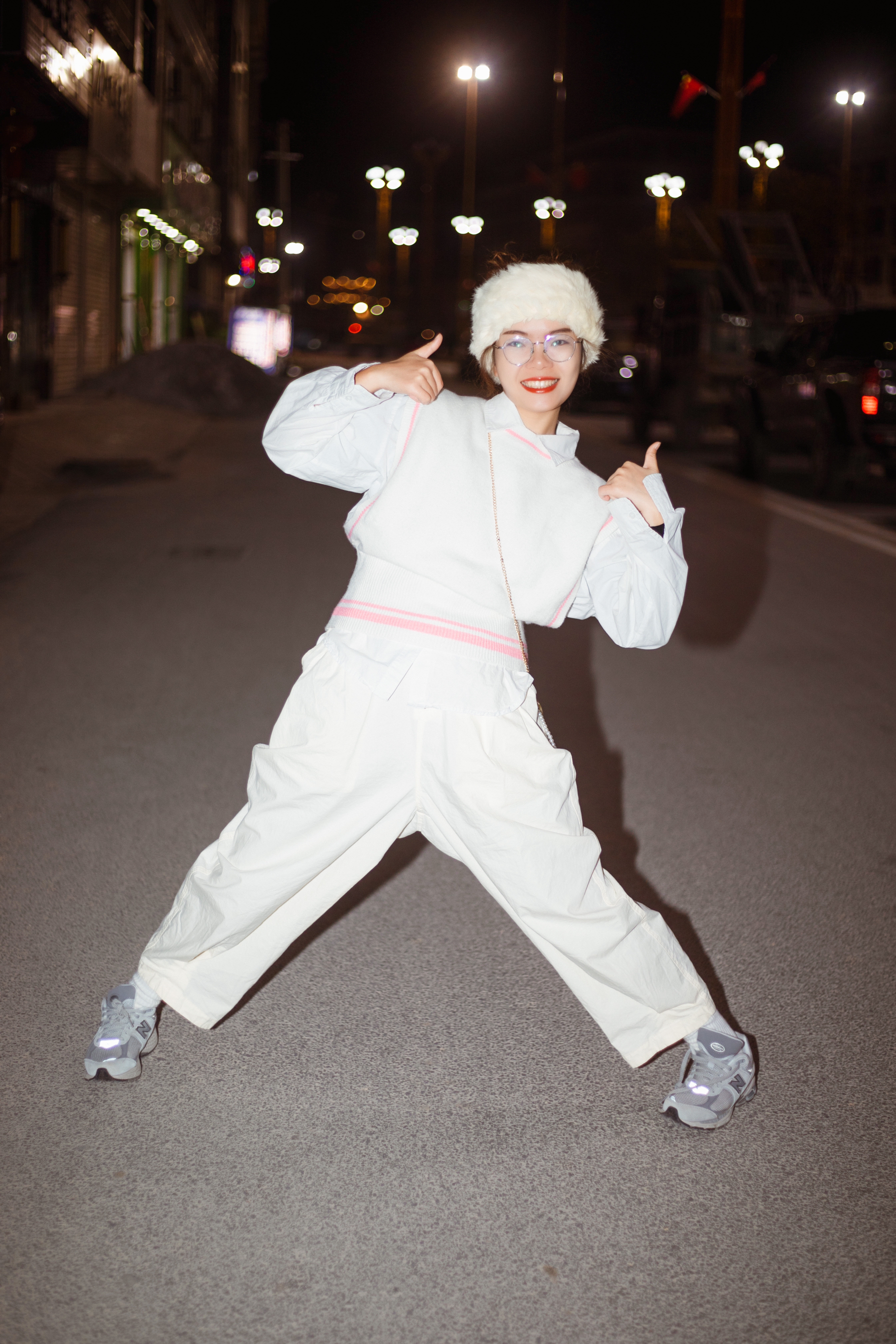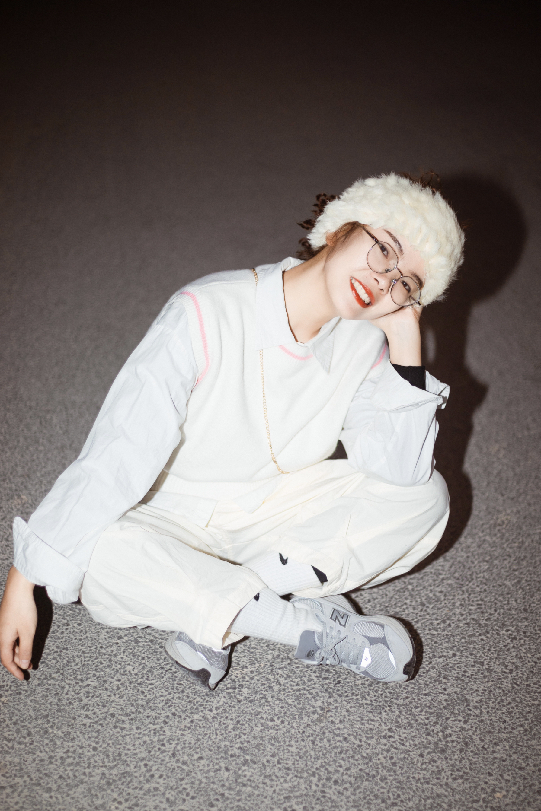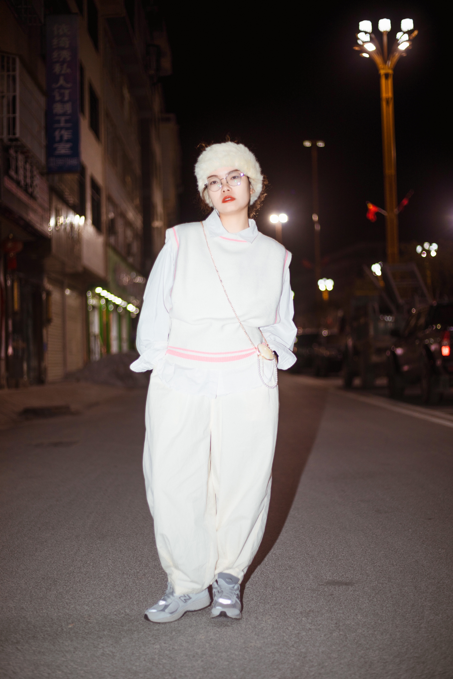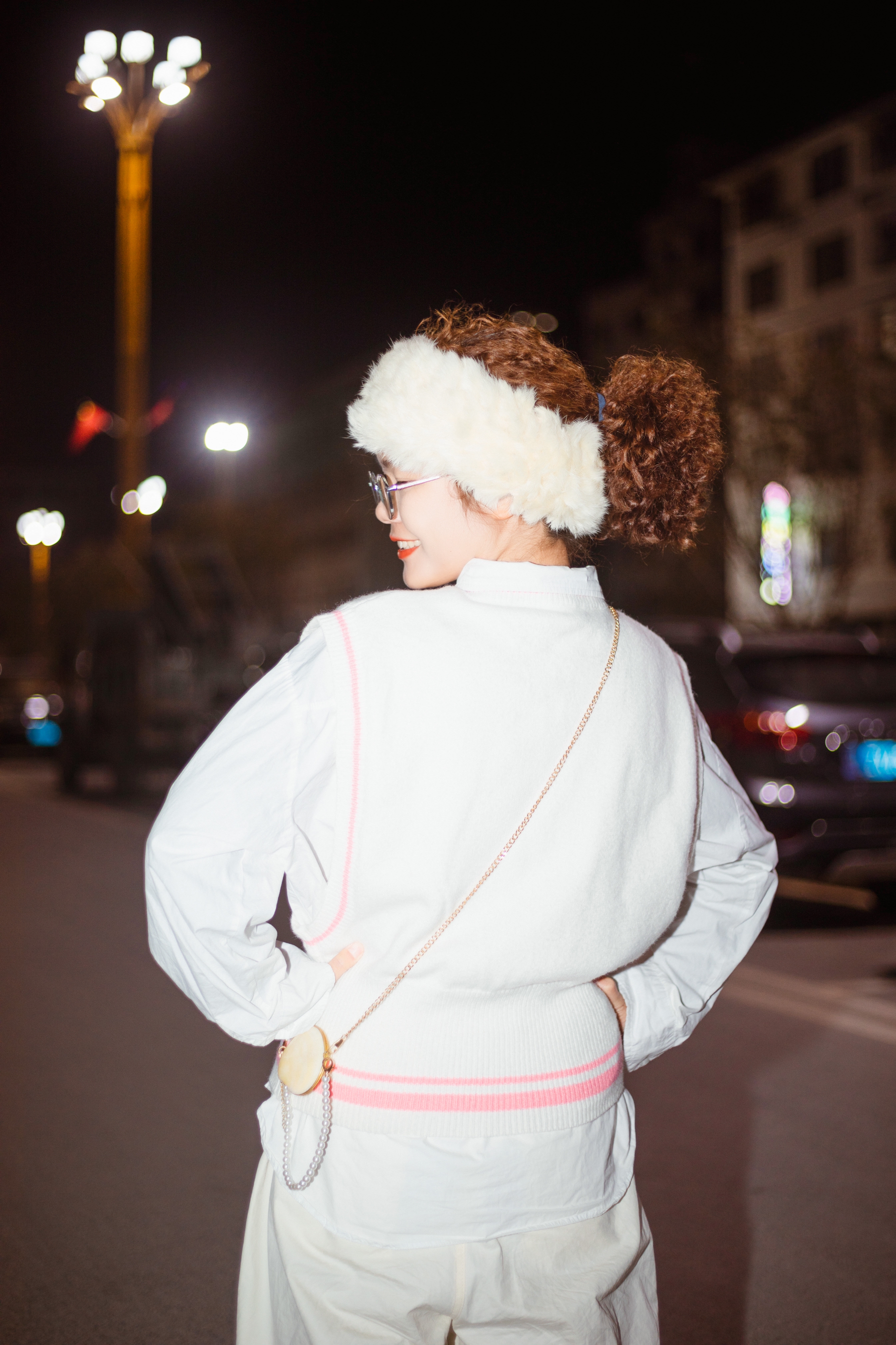 在秋天很需要清爽又保暖的穿搭🍂 ☁️一身白的穿搭可以同时兼备这两种属性 白色宽松长裤很遮肉 粗腿女孩必备 上身白色衬衫学生时代校园感来了 粉色边边的白色毛衣马甲是少女没错 米白色毛绒束发带日系复古不就来了吗❓ 整体色彩简单但是层次感十足的搭配