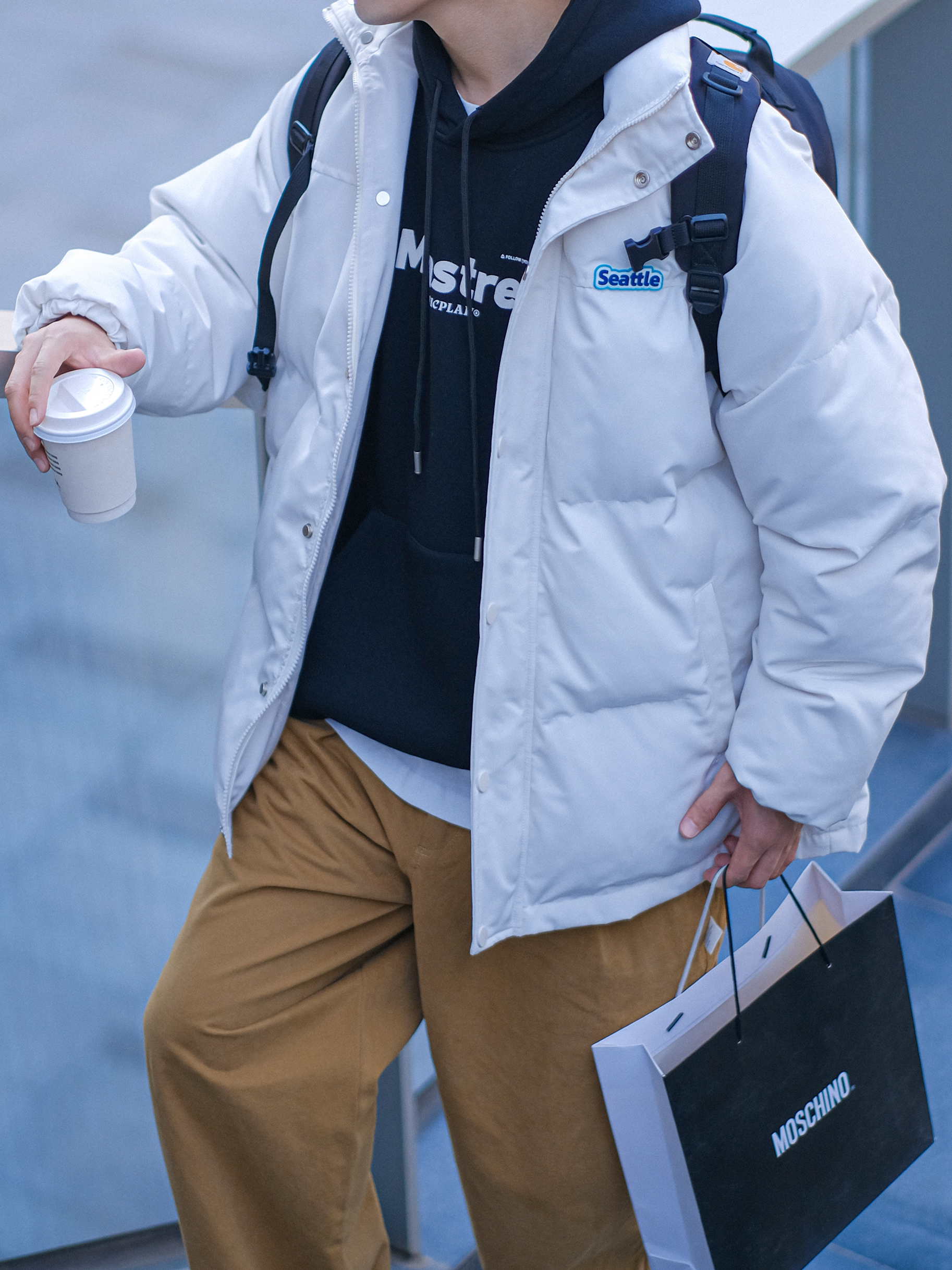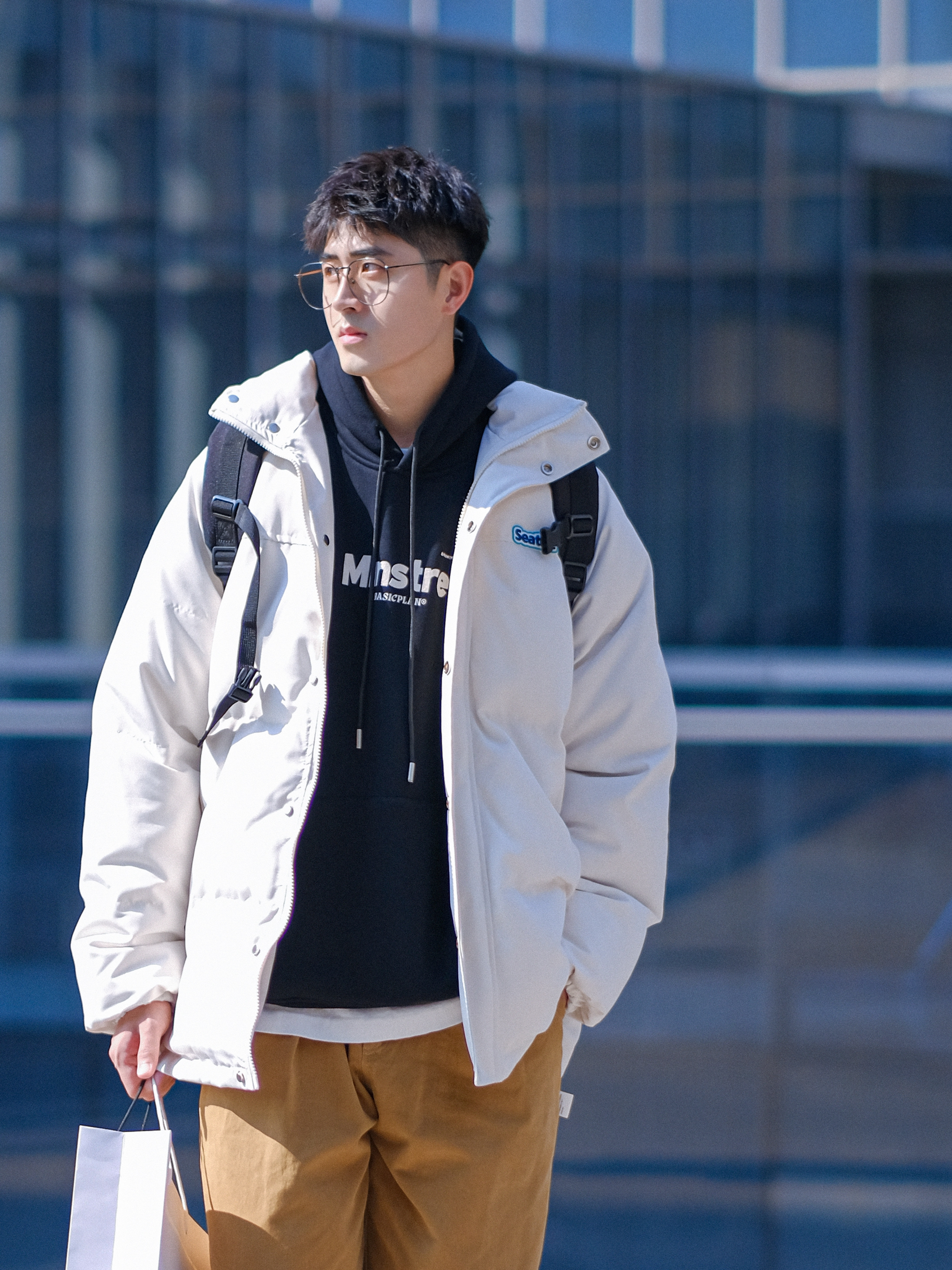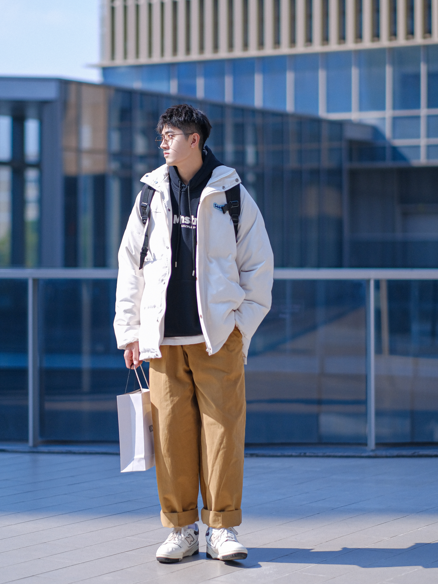 ▪️关于“白色棉服”,真的就是秋冬氛围感单品!再普通的男孩子,穿上“白色棉服”,就不再普通,好适合学生党校园穿搭,满满的阳光少年感穿搭!今天这套秋冬叠穿大学生OOTD,选择了“黑白叠穿”,再搭配一条卡其色工装裤,穿上我的复古跑鞋,一整个帅气大男孩!这么穿,真的好适合男生冬季穿搭,简约而不简单! ⚠️本人身高|体重:176CM|63KG(🉑️参考) — 👔&👖:PD大人 & DONTSTOP;✨ 🎒...