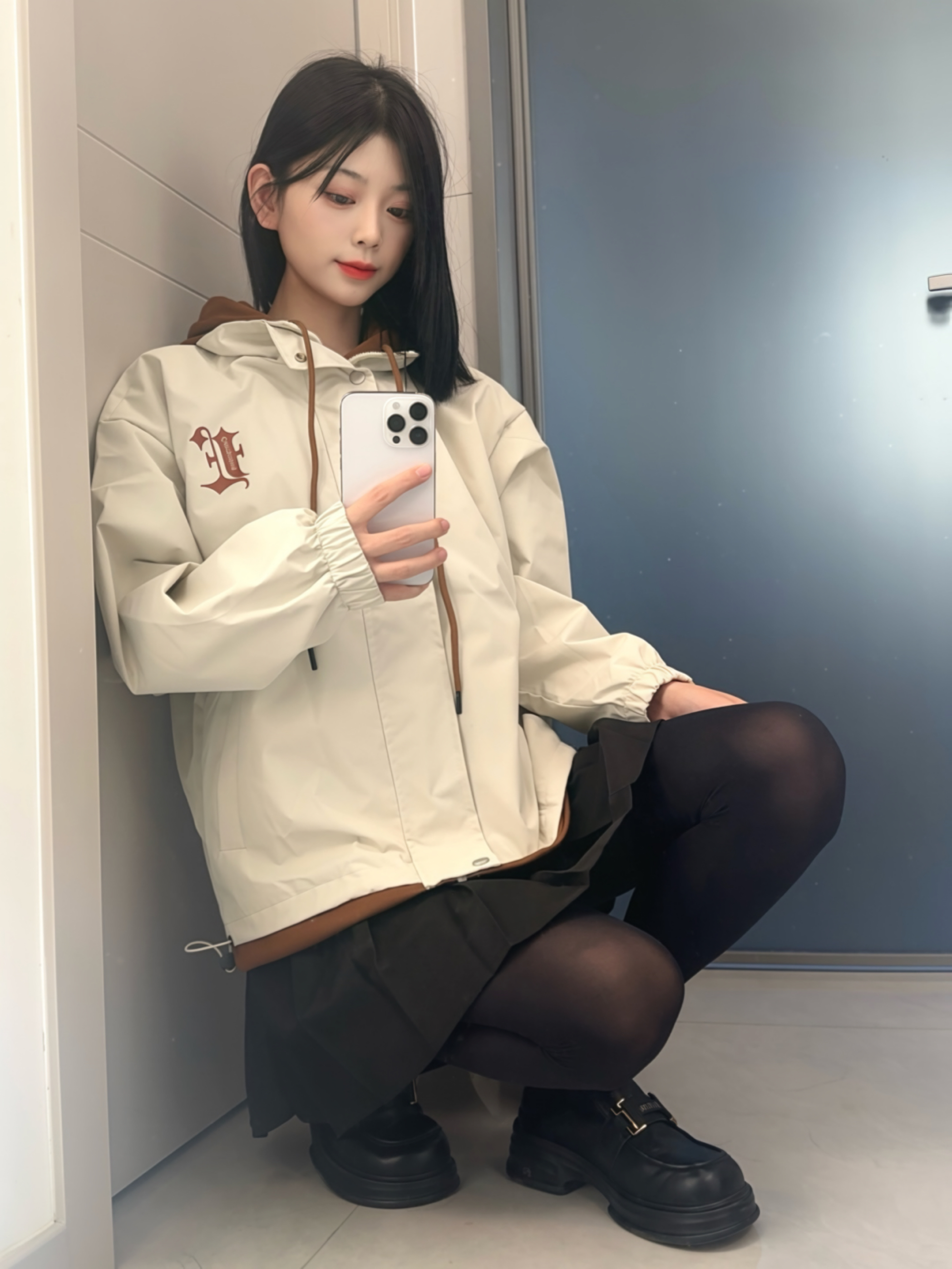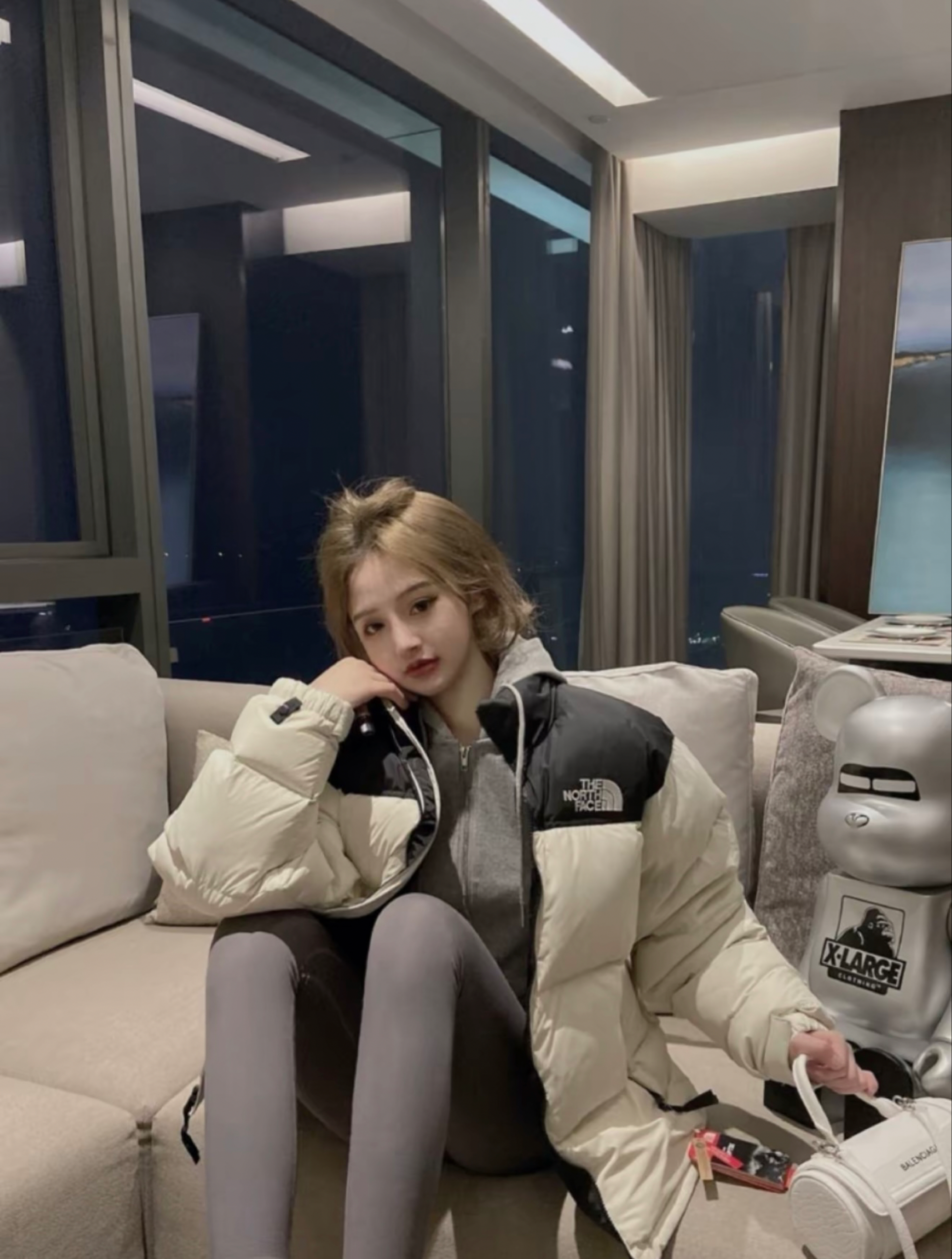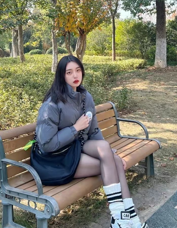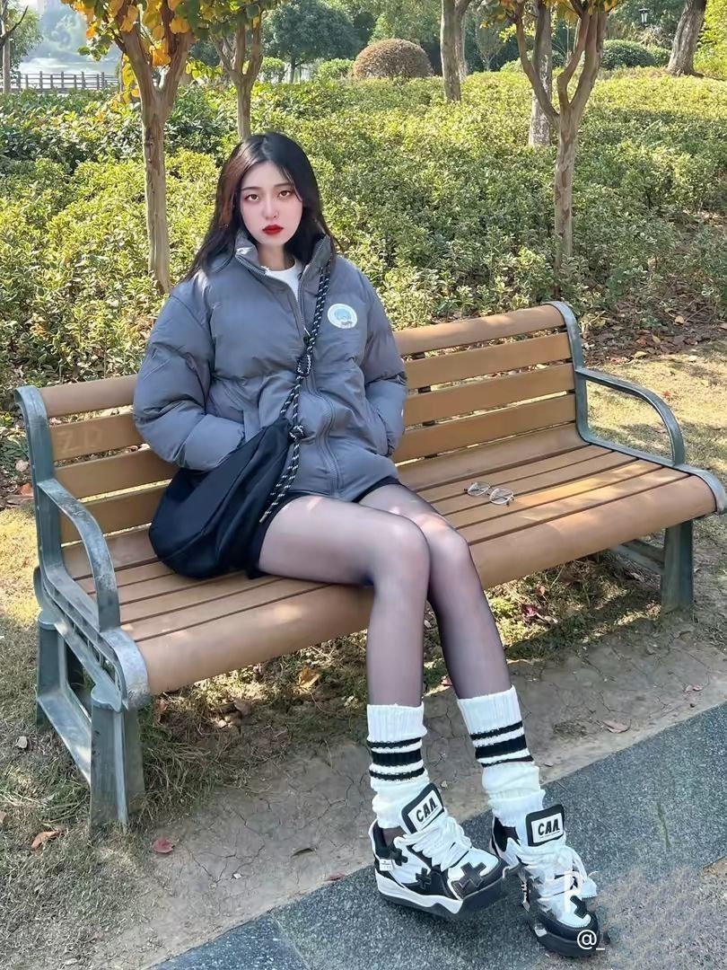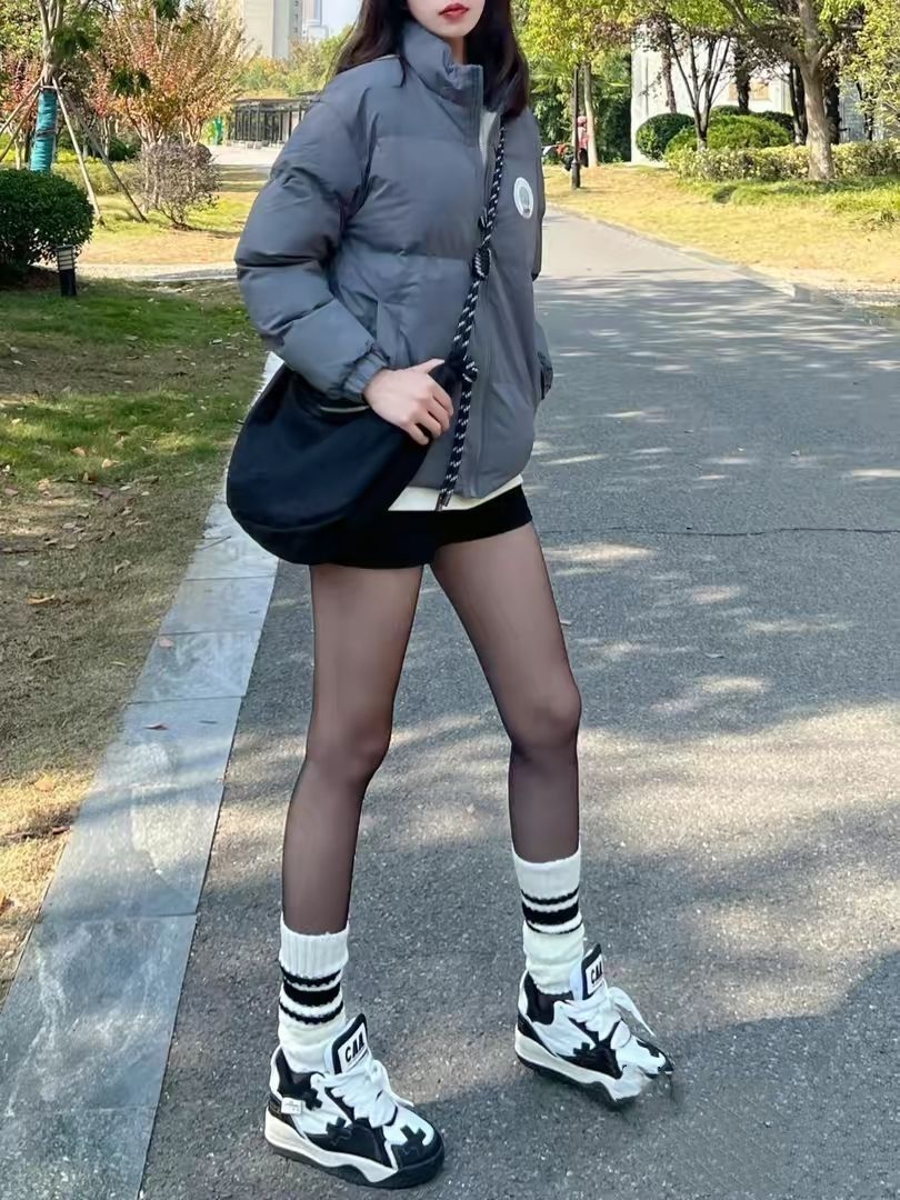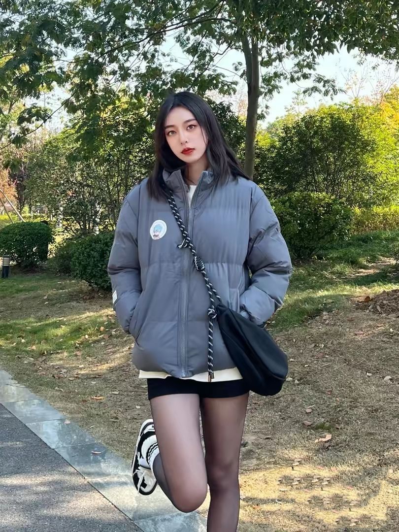 穿搭公式:柴犬联名棉服+超短裤+黑丝神器 谁说冬天不可以做辣妹的?这款棉服长度刚好,刚刚露出短裤,视觉上拉长腿型,显得腿又细又长 棉服以灰色配色为主,饱和度较低,与黑丝搭配更加和谐,穿出不一样的辣妹风