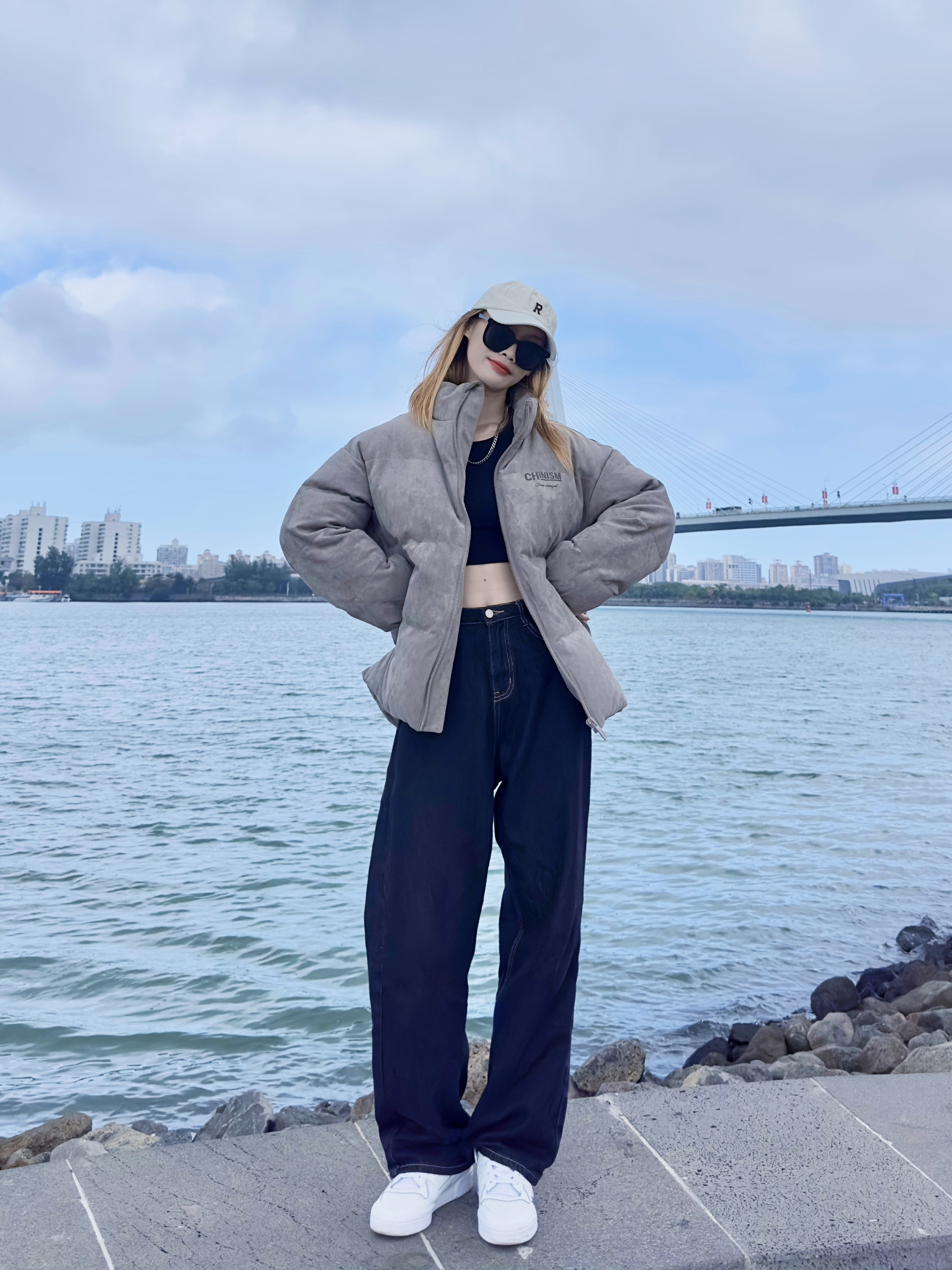 👧:168cm 48kg ✨初冬棉服外套穿搭✨ - 刚入冬就是时冷时热的, 棉服外套里搭配辣妹装最好不过啦[装到了] 灰色烧花棉服外套➕黑色小背心, 裤子搭配黑色直筒牛仔裤, 灰色真的很耐脏👍 立领设计就很好搭衣服呀, 初冬搭辣妹装,降温可搭配加绒卫衣[装到了] 又酷又百搭的棉服谁不爱[WOW] - 酷宝们冲!! 有任何问题都可以在评论区告诉我哟~