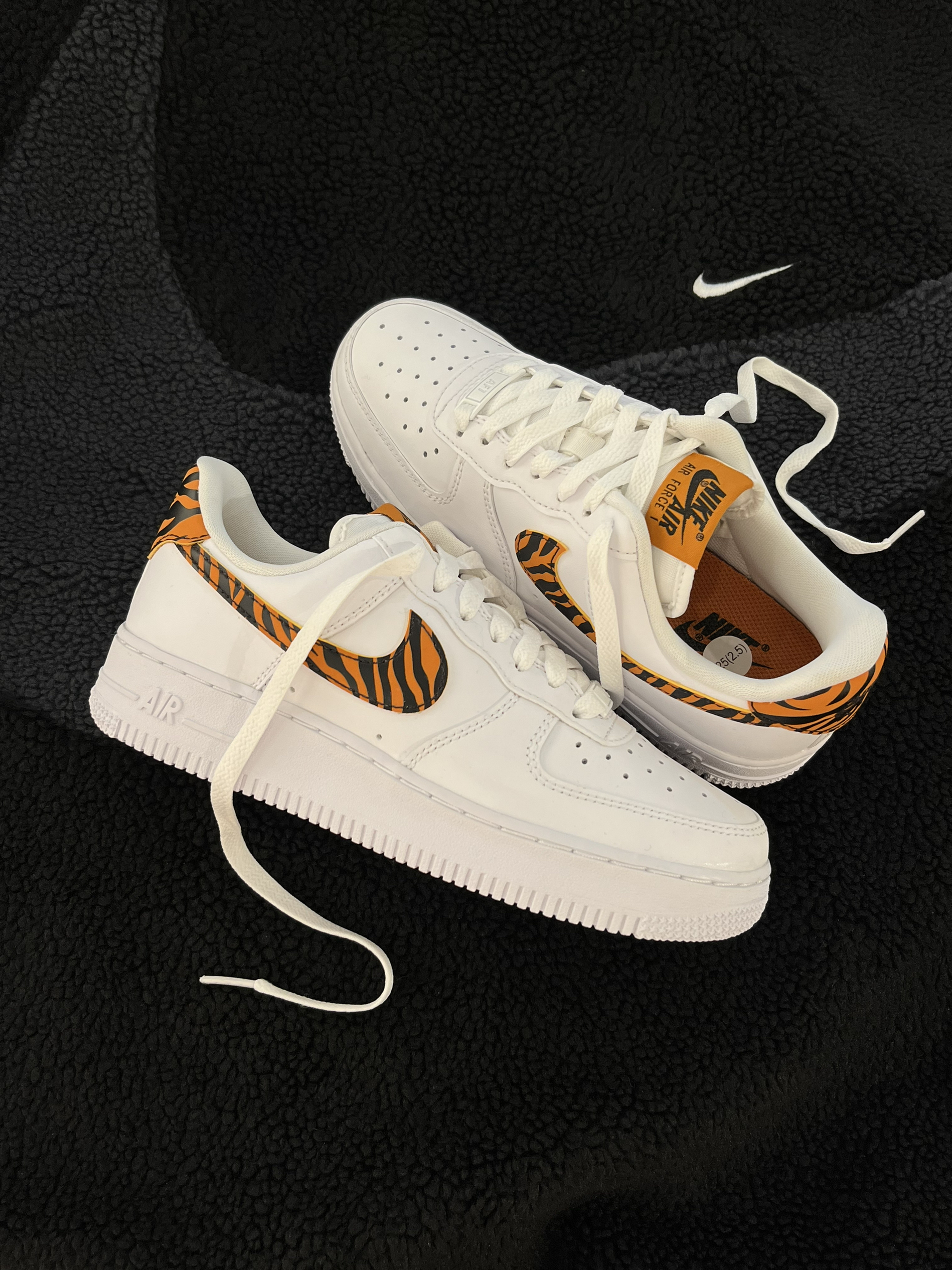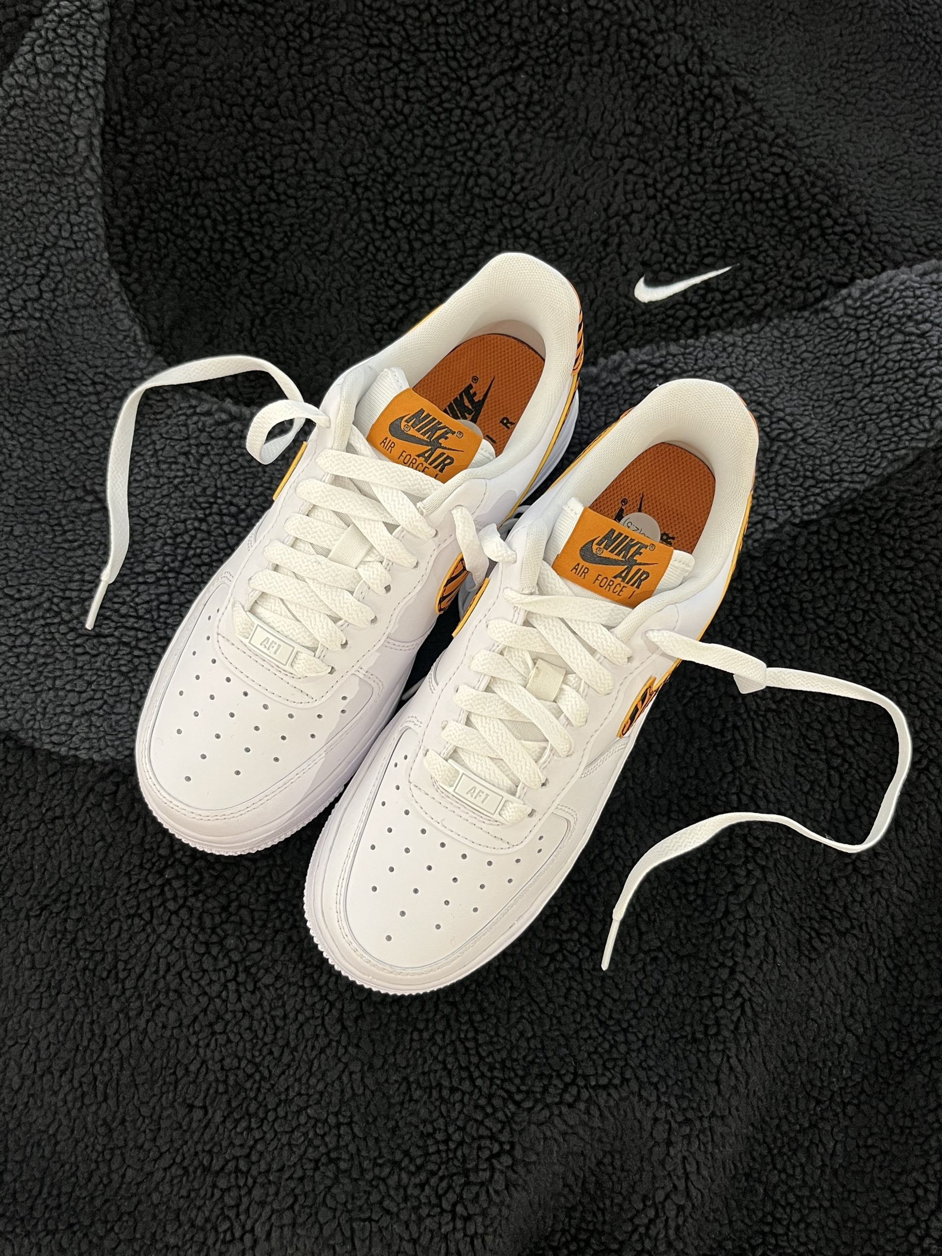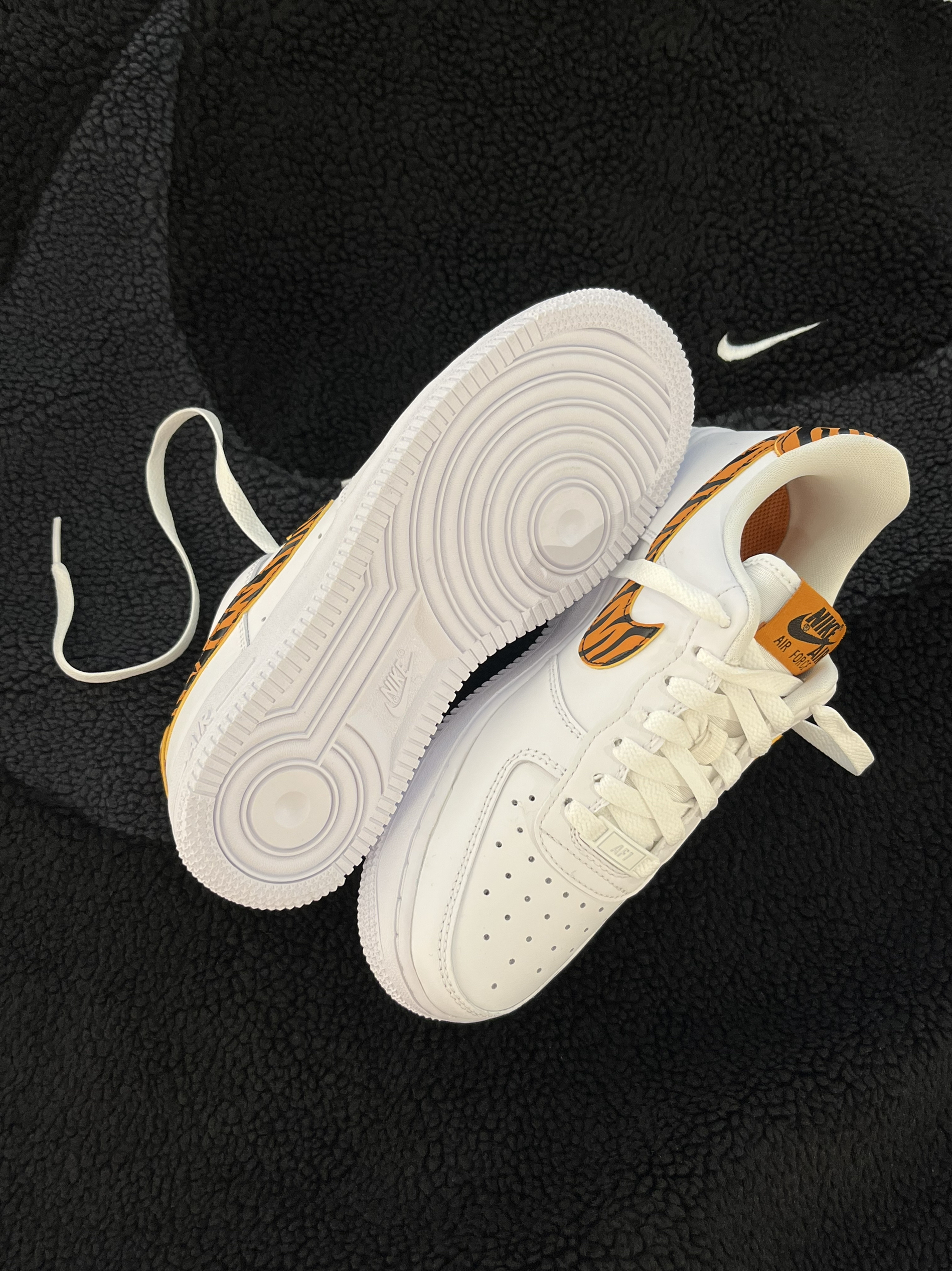 🤩今天推荐一双新款时尚好鞋———虎纹空军小白鞋,无论是日常通勤还是上学、逛街,女生日常OOTD选它错不了!!! 👟Nike Air Force 1‘07 白黄黑 虎纹 空军一号 低帮板鞋 🐯侧边钩子和后跟采用了黑橙虎纹设计,动物纹理氛围感十足,鞋舌和鞋垫同样橙色调首尾呼应。 ✔️整体经典空军小白鞋,牛剖层革/合成革材质的鞋面,鞋头透气孔和白色的鞋带扣,厚实中底带有三厘米左右的增高效果。