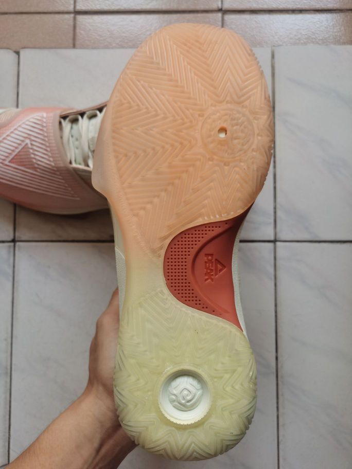 一、评测 1.外观 整体鞋型线条很凌厉,不臃肿;前侧渐变效果美如画,满足了我这种即想低调又想骚的需求;唯一美中不足就是宣传图与实物图有色差,实物更偏向于米白/杏色。 2.脚型适配&码数: 鞋型偏大,楼主平时穿球鞋44码(pg5、pro bounce2018),这款大三角穿43码刚好;因为鞋舌处材质比较软弹,楼主轻微高脚背勒紧鞋带后并不会有不适;内底是有轻微弧度的,对扁平足的朋友来说可能不太友善,...