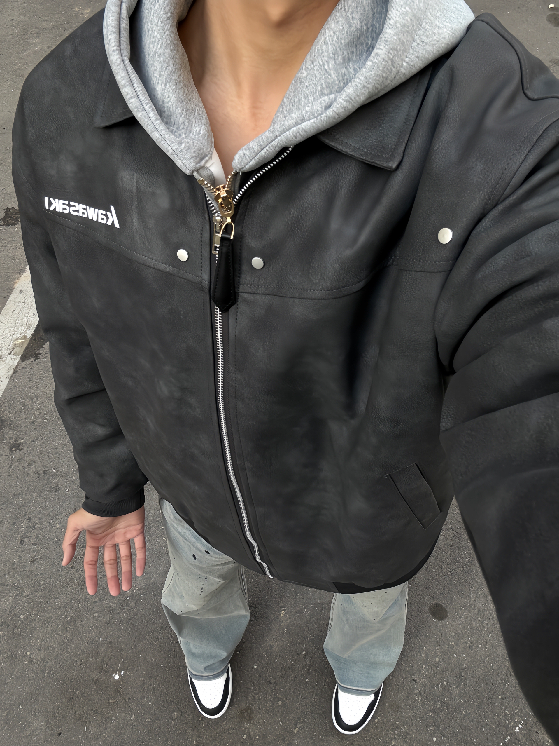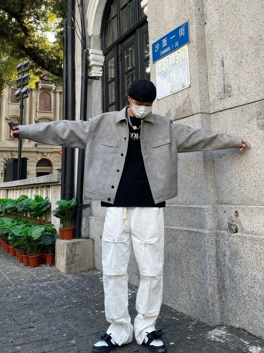 🍃最近解锁开车技能,再也不用摩托车吹冷风了,那今天这款pu皮的教练夹克就刚刚好。 🍃皮质的夹克版型很好,冬日必备的款,pu皮较柔软但是有版型支撑的特点,内里会感觉很舒适,有一定厚度,浅灰的配色很有高级感,穿在身上很帅; 🍃搭配米白色裤子,整体看起来更加干净