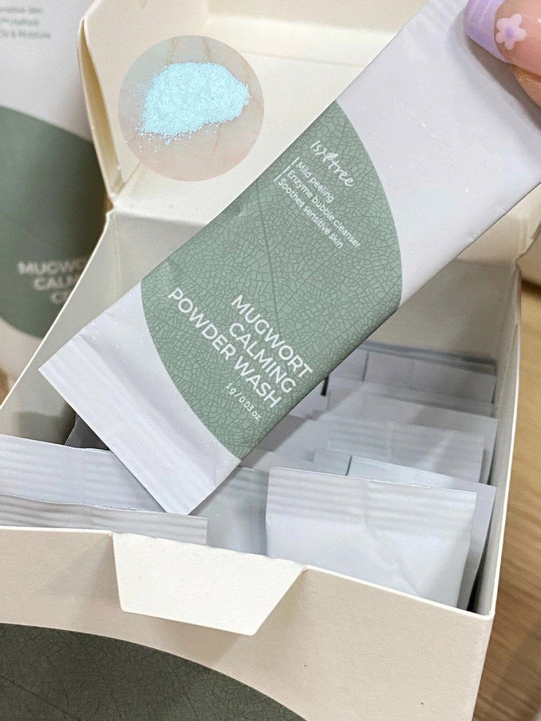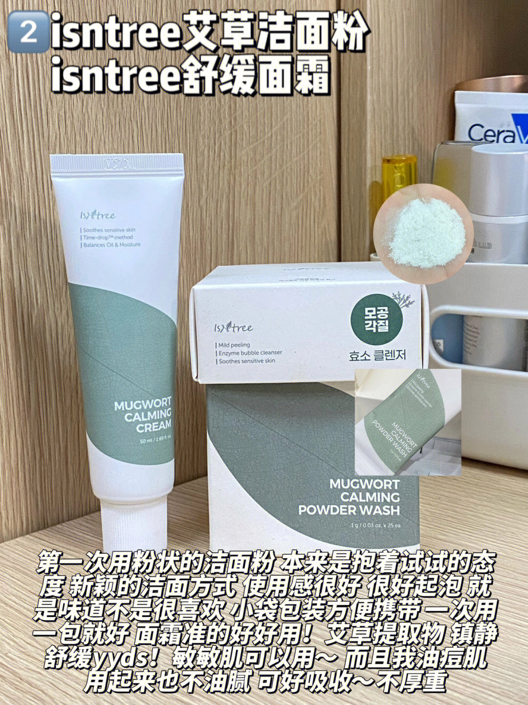 春阳博士面膜 退红杠杠的 我见过为数不多33g的面膜!! isntree艾草洁面粉 艾草面霜 第一次尝试洁面粉 还可以 面霜好舒服!主要是不黏 寻荟记芦荟胶 芦荟胶就不用多说啦 晒后修复 消火火啥的 一支多用 米蓓尔蓝水 喷完可舒服 补水保湿都够 舒缓喷雾就用它