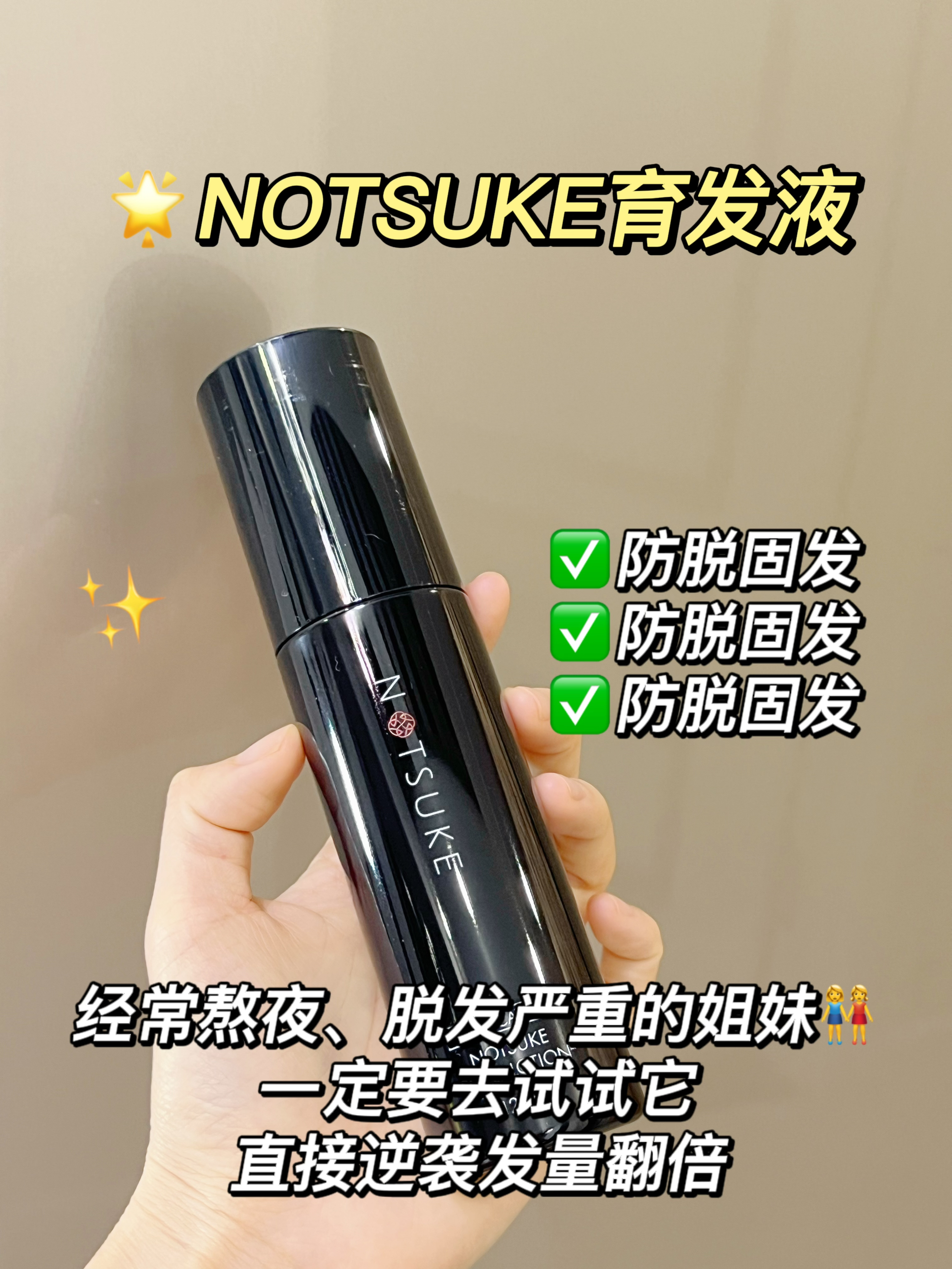 前阵子经常熬夜加减肥 头发大把大把的掉 我都快秃了😭 都差点把假头套安排上 后来做了好久的功课 直到我遇见了NOTSUKE育发液 俺的发量直接逆风翻盘 现在整个人都变得自信啦! 每天只要对着发量少的地方喷一喷 再揉一揉让头发洗水就可以啦 质地清爽 上头一点也不油腻 喷完也不用洗头 用了2个多月了吧 现在发量越多越厚 实现发量自由简直太爽了