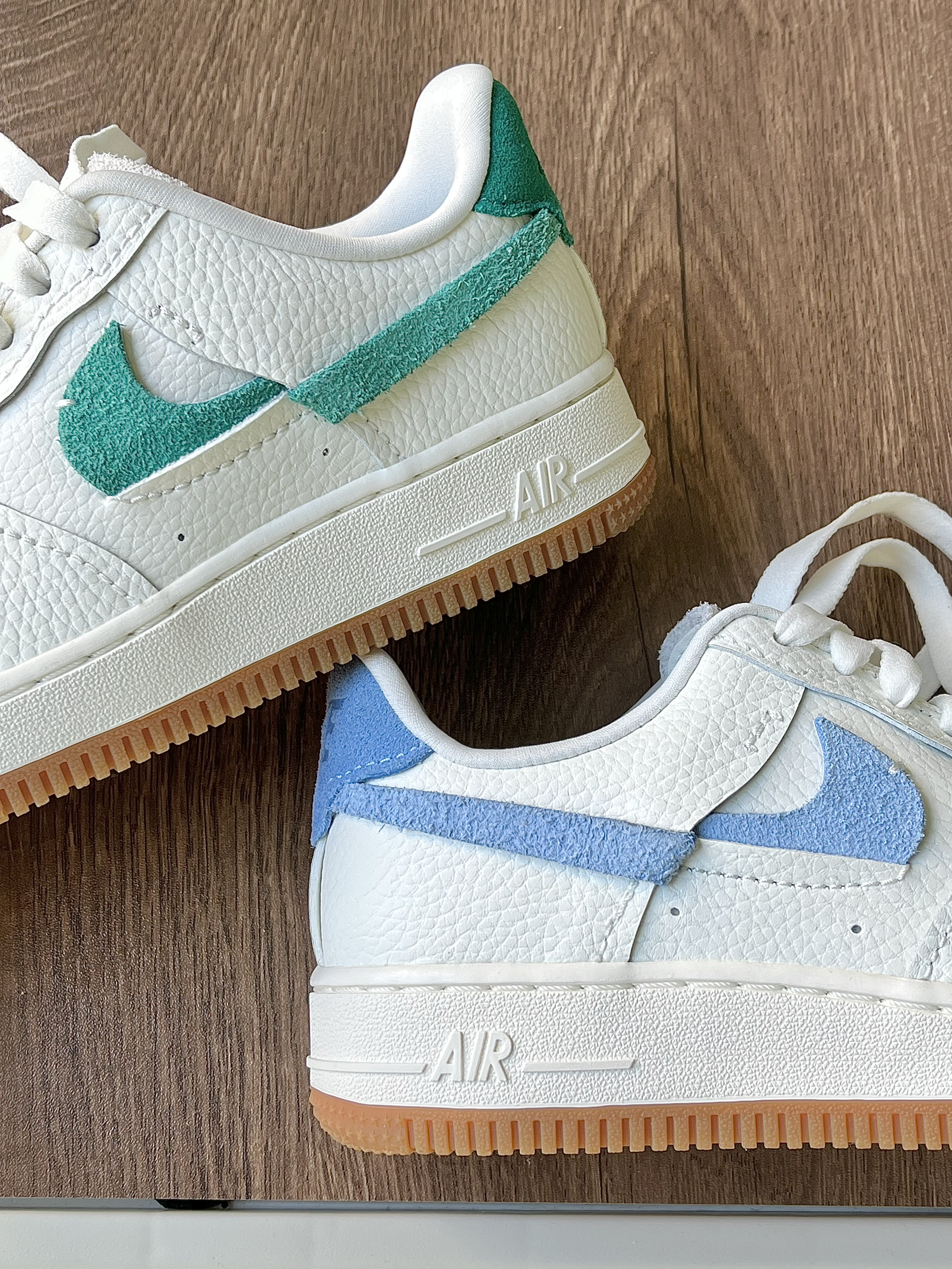买到了觉得敲值的一双AF1解构断钩 价格美丽呀,而且荔枝纹好有质感 蓝绿鸳鸯配色太香啦!越穿越喜欢的一款!