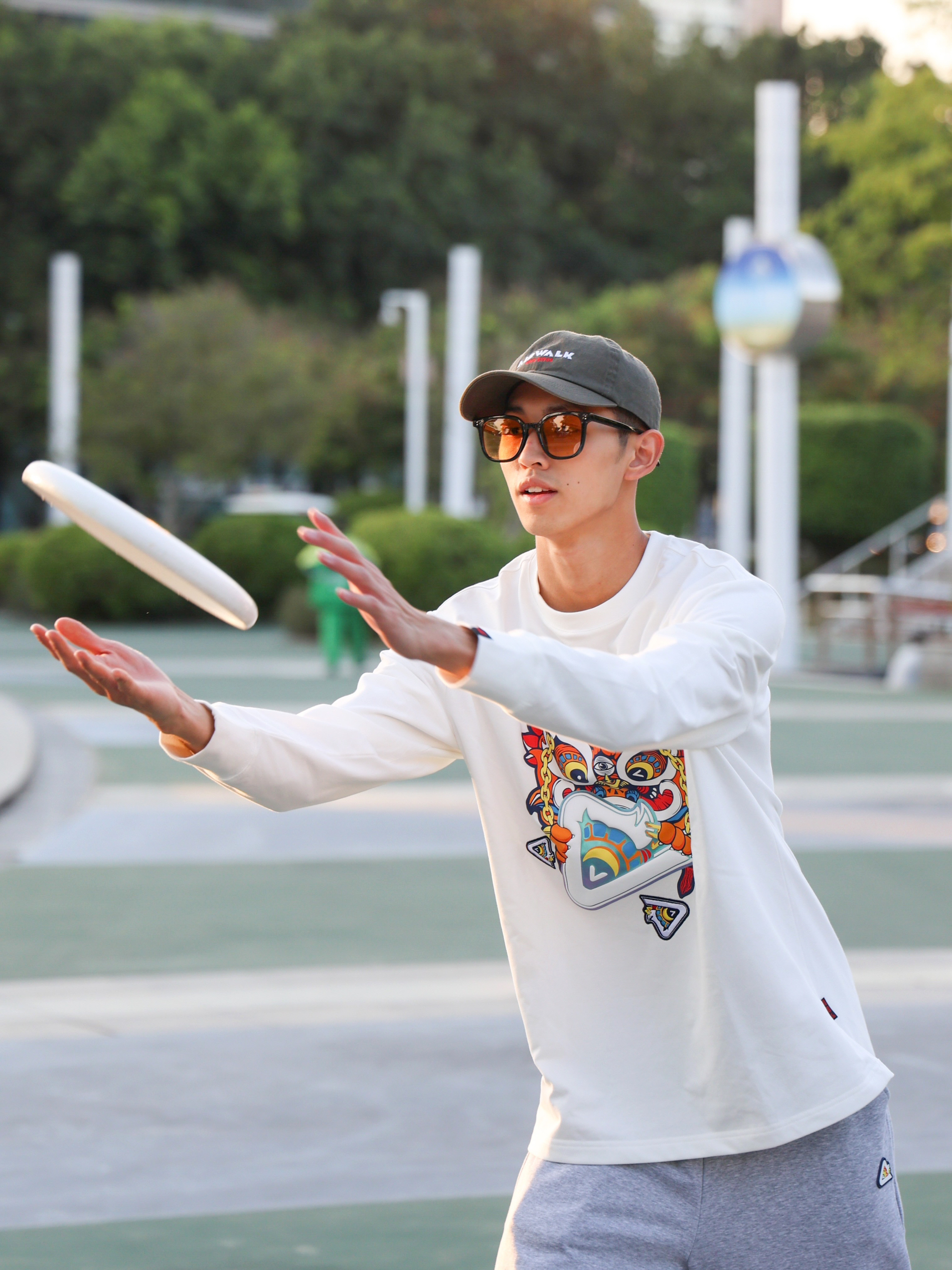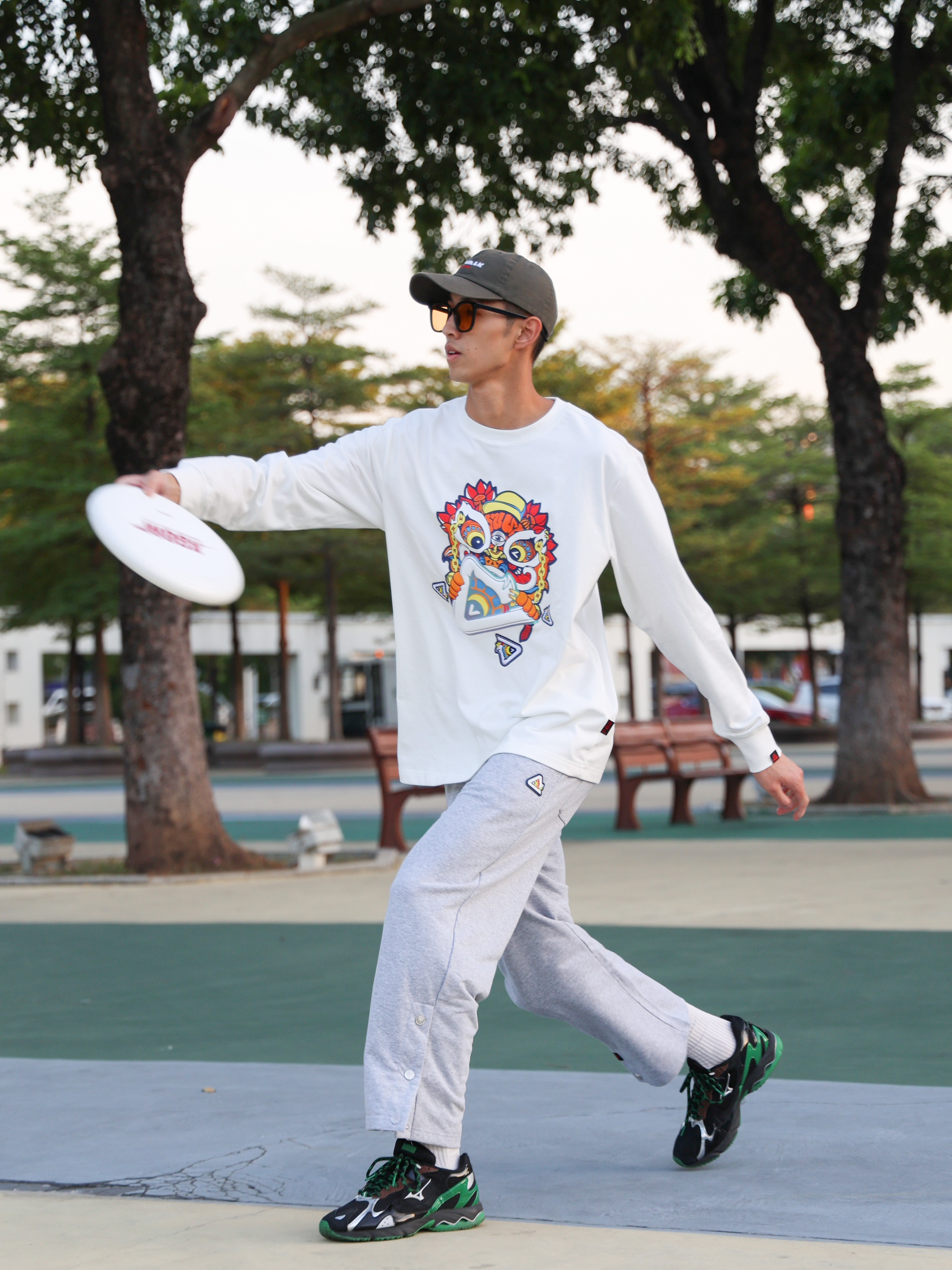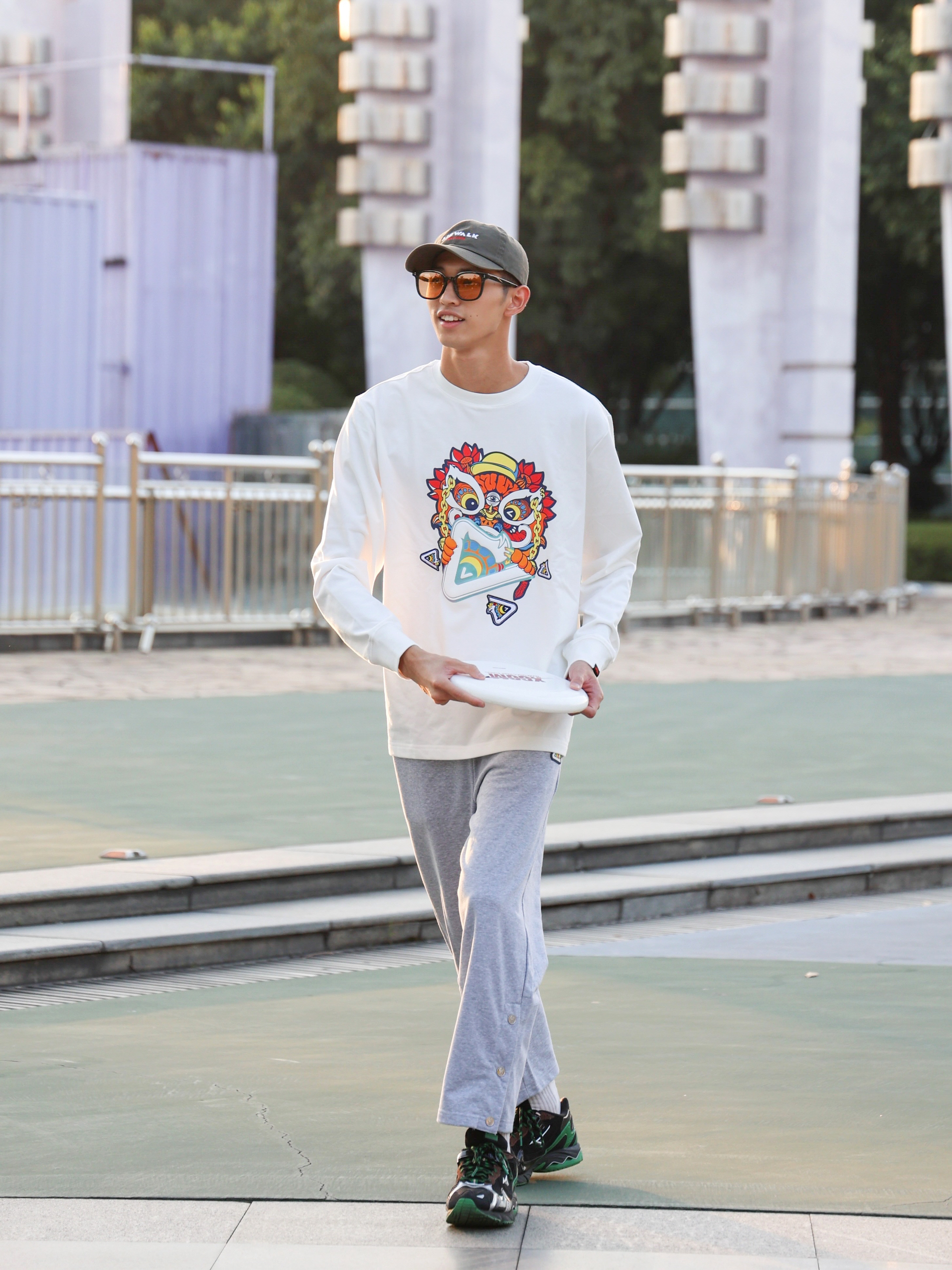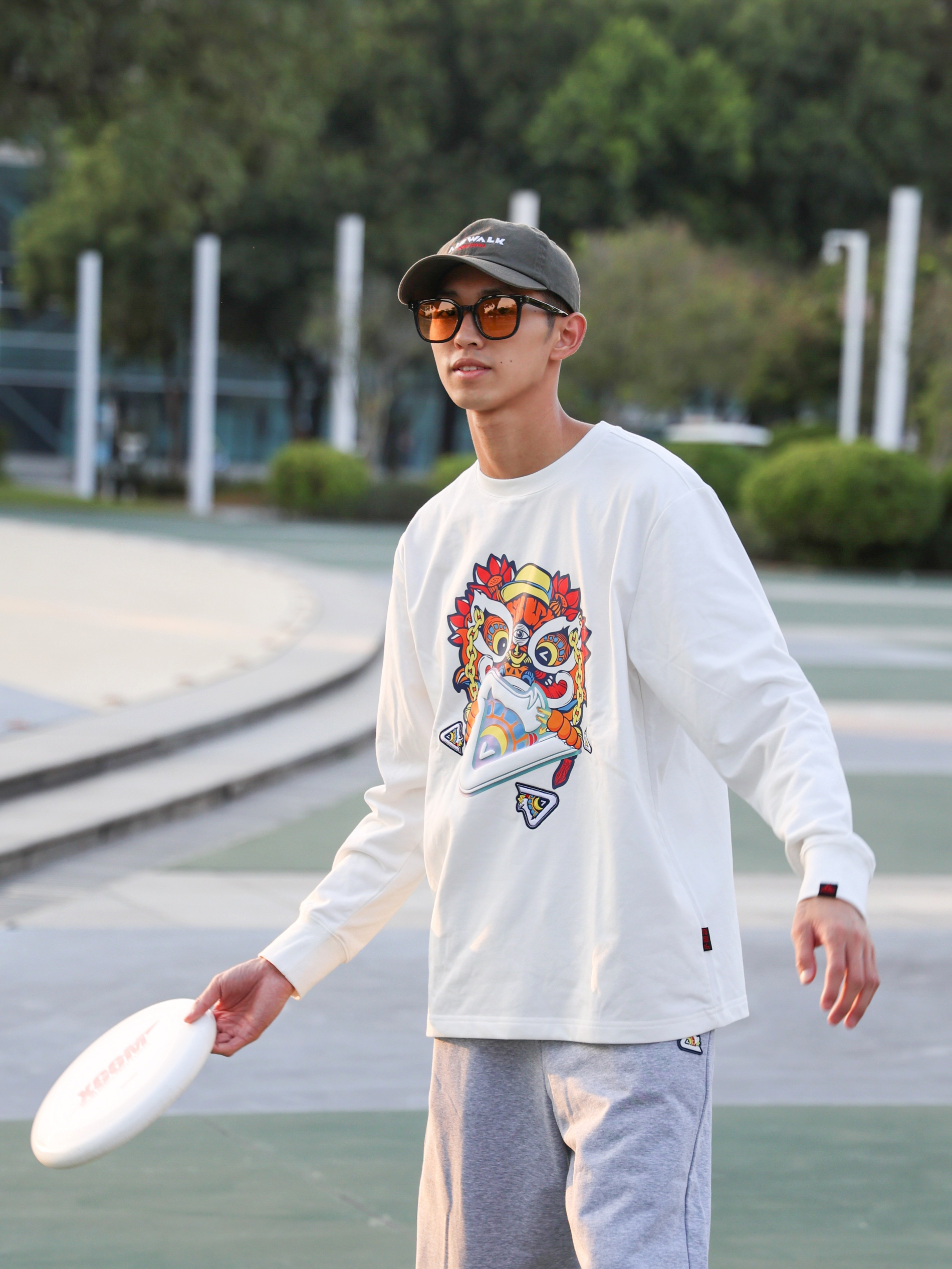 秋天凉意阵阵,又到了穿长袖的时间。今天出去外面玩飞盘,给大家分享的是一套户外运动穿搭。运动穿搭首选当然是运动品牌的产品,今天这套穿搭选择的是来自匹克与HEA联名的运动款,上衣选择一件白色的长袖T恤,在保暖的同时也能运动时的紧凑感。裤子选择的是一条灰色的休闲排扣裤,略带弹性的面料在跑动的时候也十分合适。最后搭配上一双运动鞋,开始玩飞盘吧!