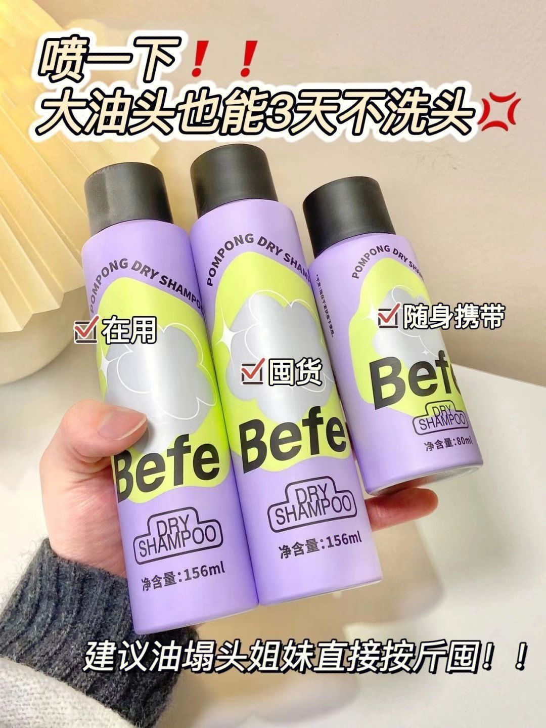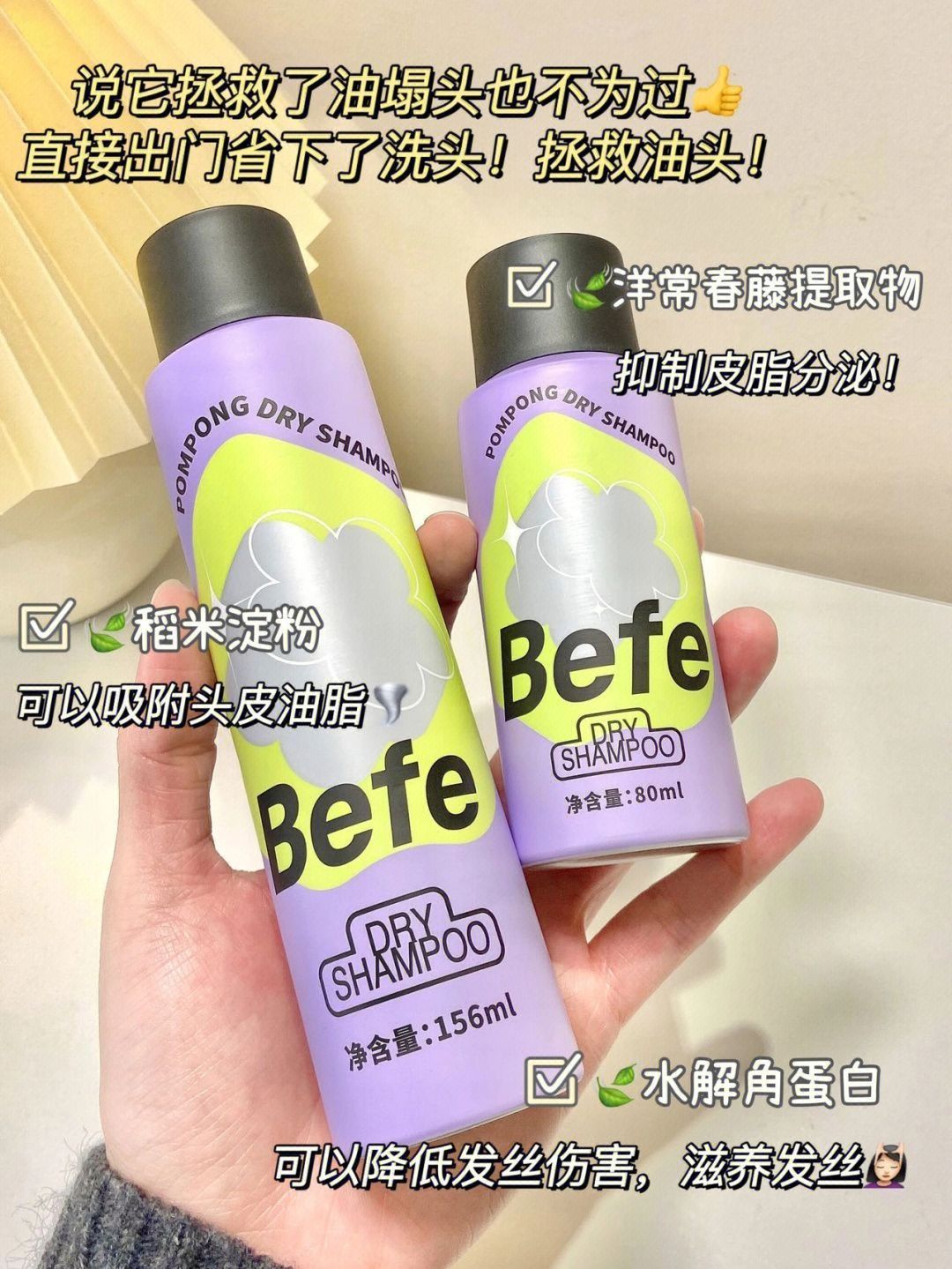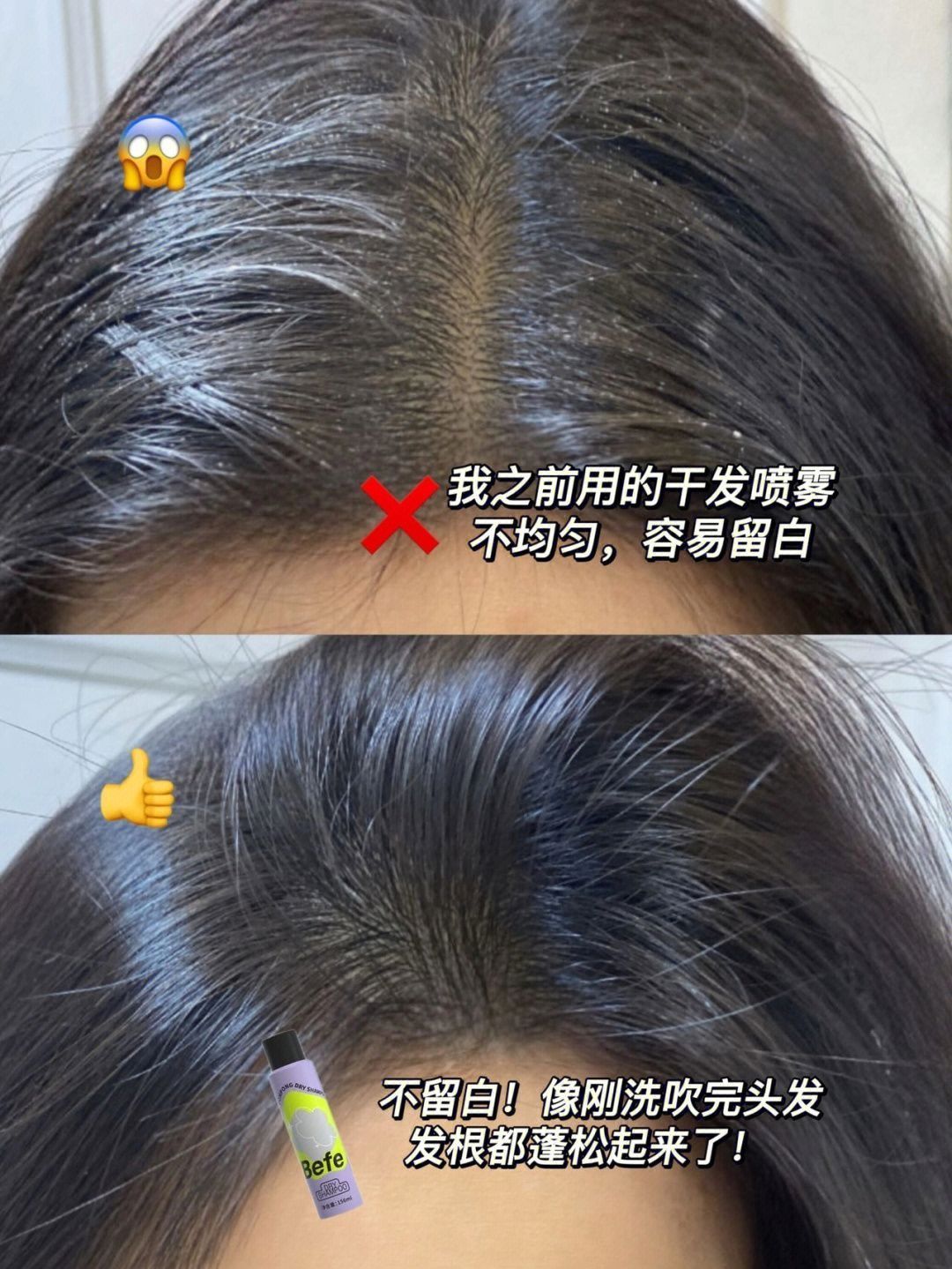 ✨天天顶着个大油头!明明昨天刚洗完头 第二天就变成了冒头的大油井!!头发也不痒 就是油! ✨试了很多控油的洗发产品 都不咋给力😭 之前用的别的干发喷雾扑刘海 但留白严重!还容易堵塞毛孔 头发一抓一大把的掉 过会儿就恢复原样! ✨有次从闺蜜那顺来了这个befe干发喷雾 说它拯救了油塌头也不为过! ✨随便喷一喷 头发秒蓬松🍃 直接出门省下了洗头!直接拯救油头啊! ✨使用方法真的好简单 贼方便 1⃣...