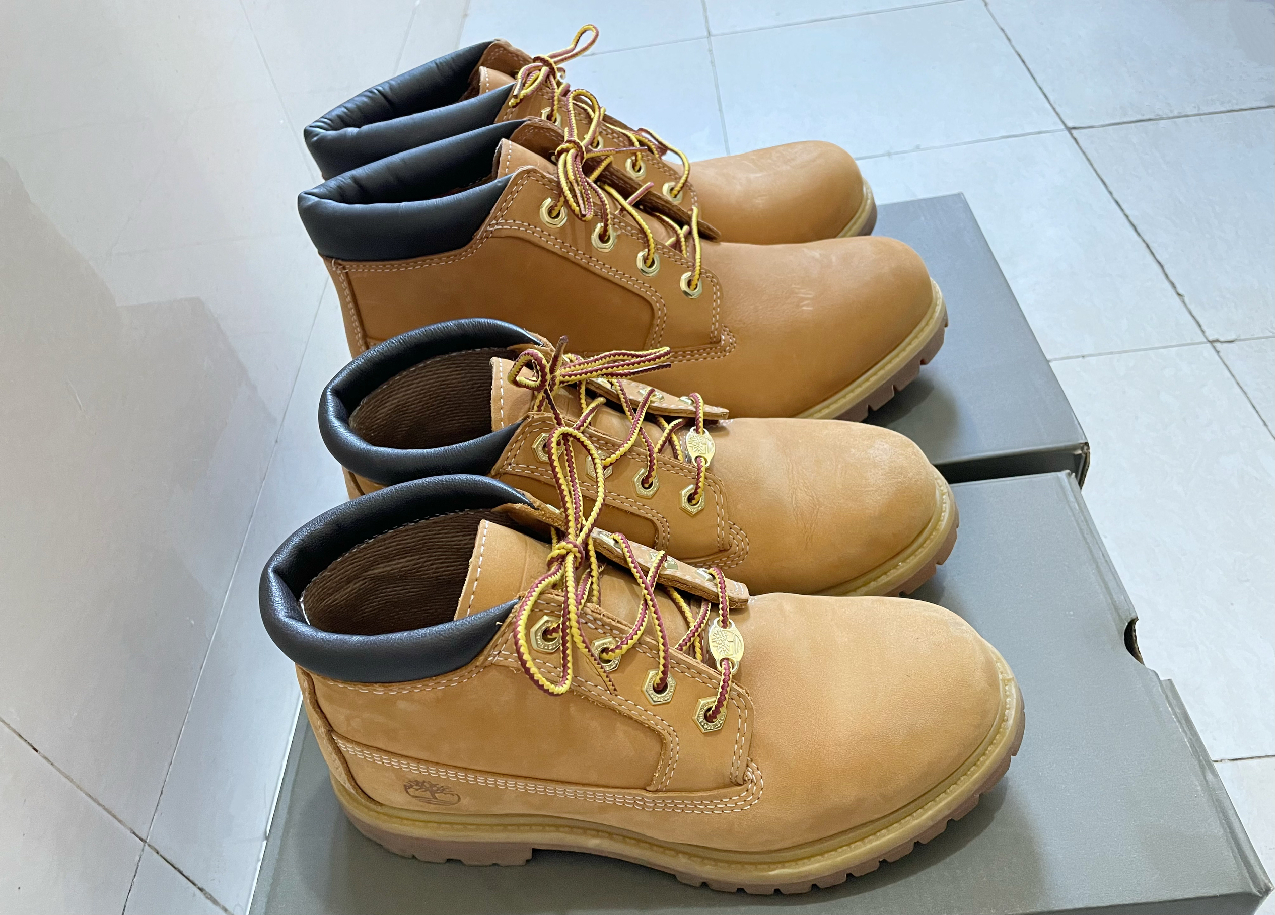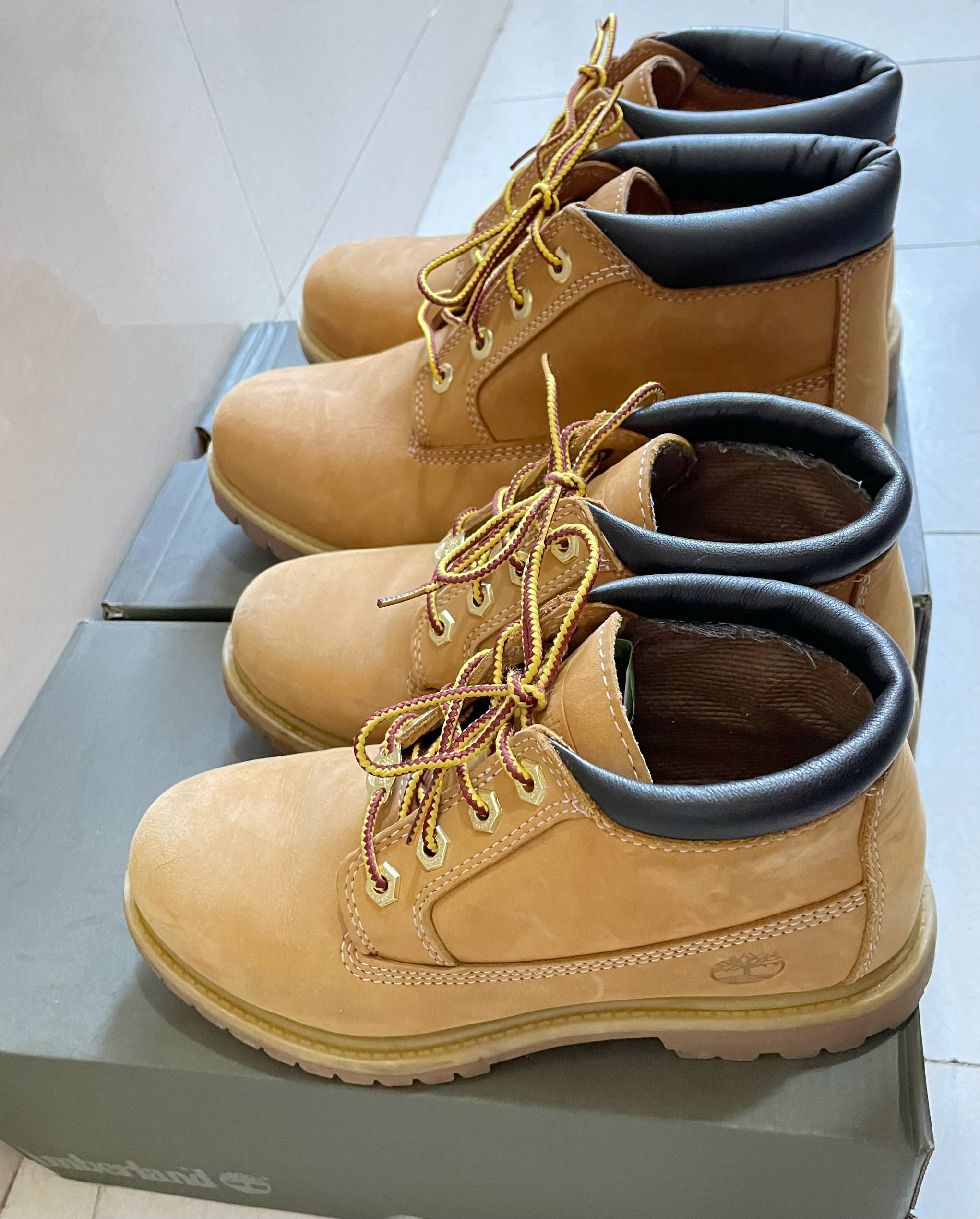 添柏岚经典大黄靴 图中男款43码 图中女款37码 🗣优点:款式经典大气、防水,耐穿!(想想它的别名为“踢不烂”的原因) 🗣上脚感受:鞋感稍厚重,与其他鞋相比更硬一些。 喜欢此类户外鞋的放心入呀! 🍻情侣款将快乐加倍! ⭐️⭐️⭐️⭐️⭐️