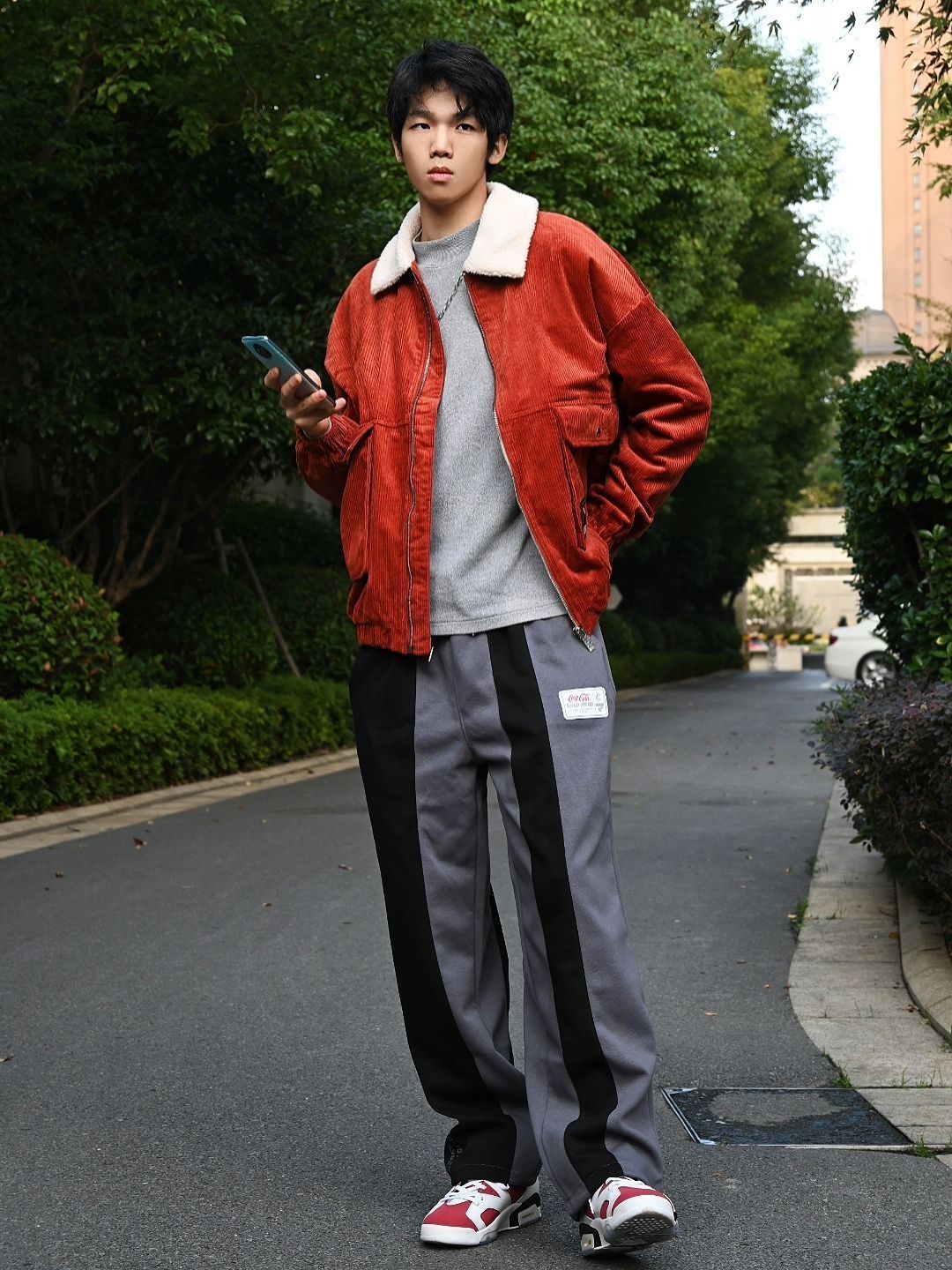 很多人觉得穿这种翻领的灯芯绒棉衣略显成熟 我也好奇尝试了一下😘 特地选了这种红棕色的 相较于白色和黑色的确这个颜色会更加成熟😛 喜欢年轻感觉的还是建议白色黑色 红棕色会更显气质和衣服价格🤓 作为冬装,灯芯绒和翻领的保暖还是很好的! 裤子是#可口可乐服饰 拼接的裤子 不得不说可口可乐做潮牌还是很好看的 裤子设计感很足 价格也不高,学生党很推荐🉑🉑🉑 东西不比nike 阿迪达斯差 面料很舒服,而且设...