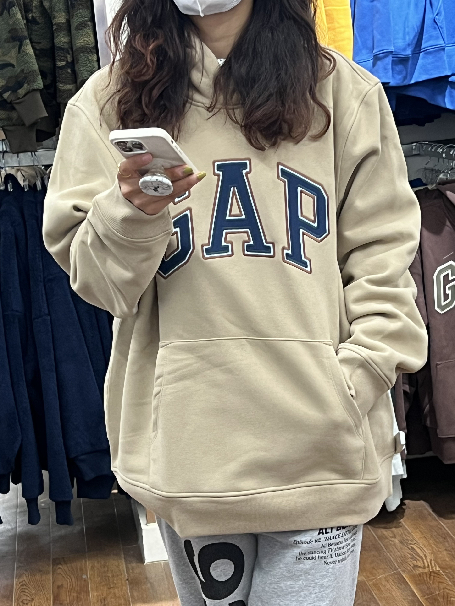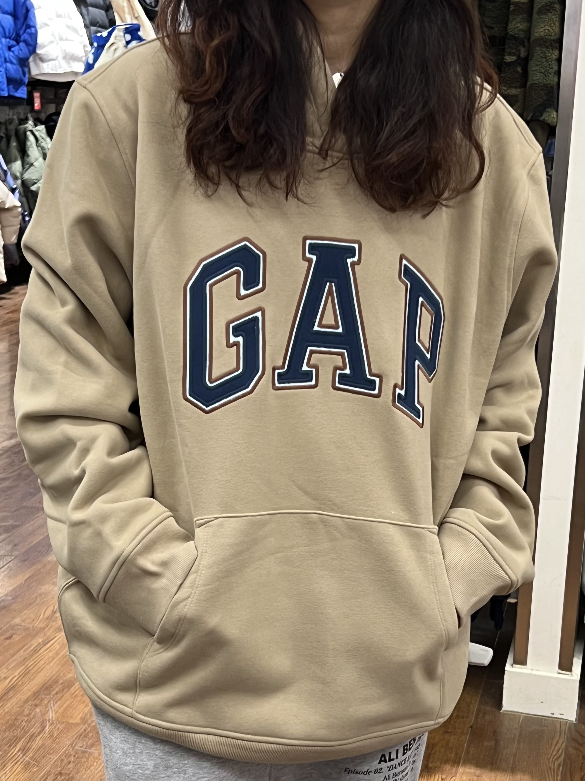 🍑:今天是穿卫衣的girl gap女孩没错了 这个咖色很少见 是介于奶白和棕色之间 还比较独特 gaper们 可以冲!