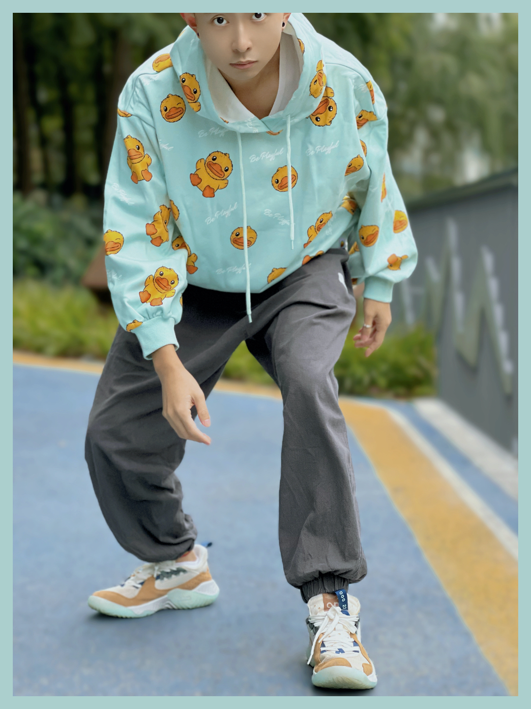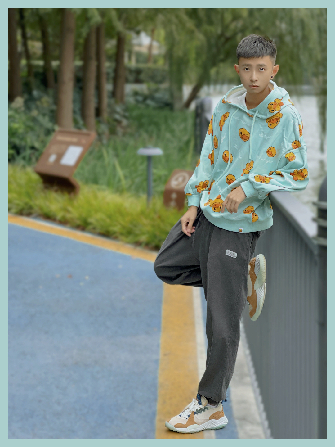 🍂即便深秋,但空气依旧清新,天气尚好, 还是觉得没有很冷,路边的叶子变黄的还不多。 晴朗的气温里给自己一份清新的穿搭, 绿意盎然清新少年,保持舒适与干净。 · 👕卫衣:B.Duck 👖裤装:Gujee 👟鞋款:Nike · 🍃上衣小黄鸭加绒连帽卫衣,原创加绒设计,小黄鸭可可爱爱,加上薄荷绿的配色,整一个减龄出彩。宽松版型不挑身材,绒感丰富,柔软亲肤,温暖舒适。裤装轻薄贴身,舒适好穿,束脚设计身显修...