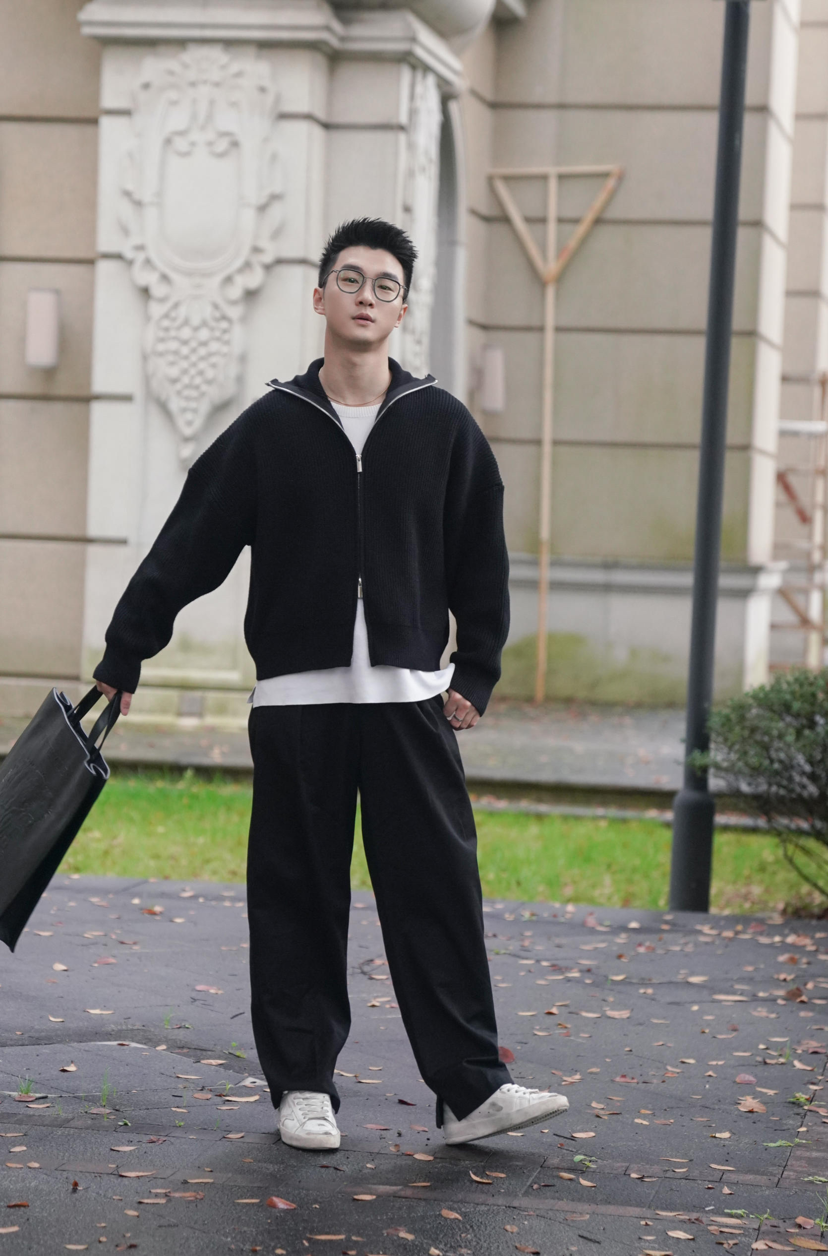 断崖式降温毛衫要裹上了。黑色本身偏中性色,再加不知道穿什么颜色,选择一身黑🖤错不了。这款针织衫真的很爱了,双拉链的设计,会有一种随性、慵懒感加持,完全不挑人的穿搭,谁穿谁好看😎!而且一点都不冷~ 再选择一款黑色直筒休闲裤,裤管口的一个小分叉,这样小白鞋子也不会被全部遮住。再搭配一个托特包,完美!这个托特包真能装,平时通勤放笔记本都没有问题!日常出行背它时尚感UP! - OOTD👇 内搭:SuaM...