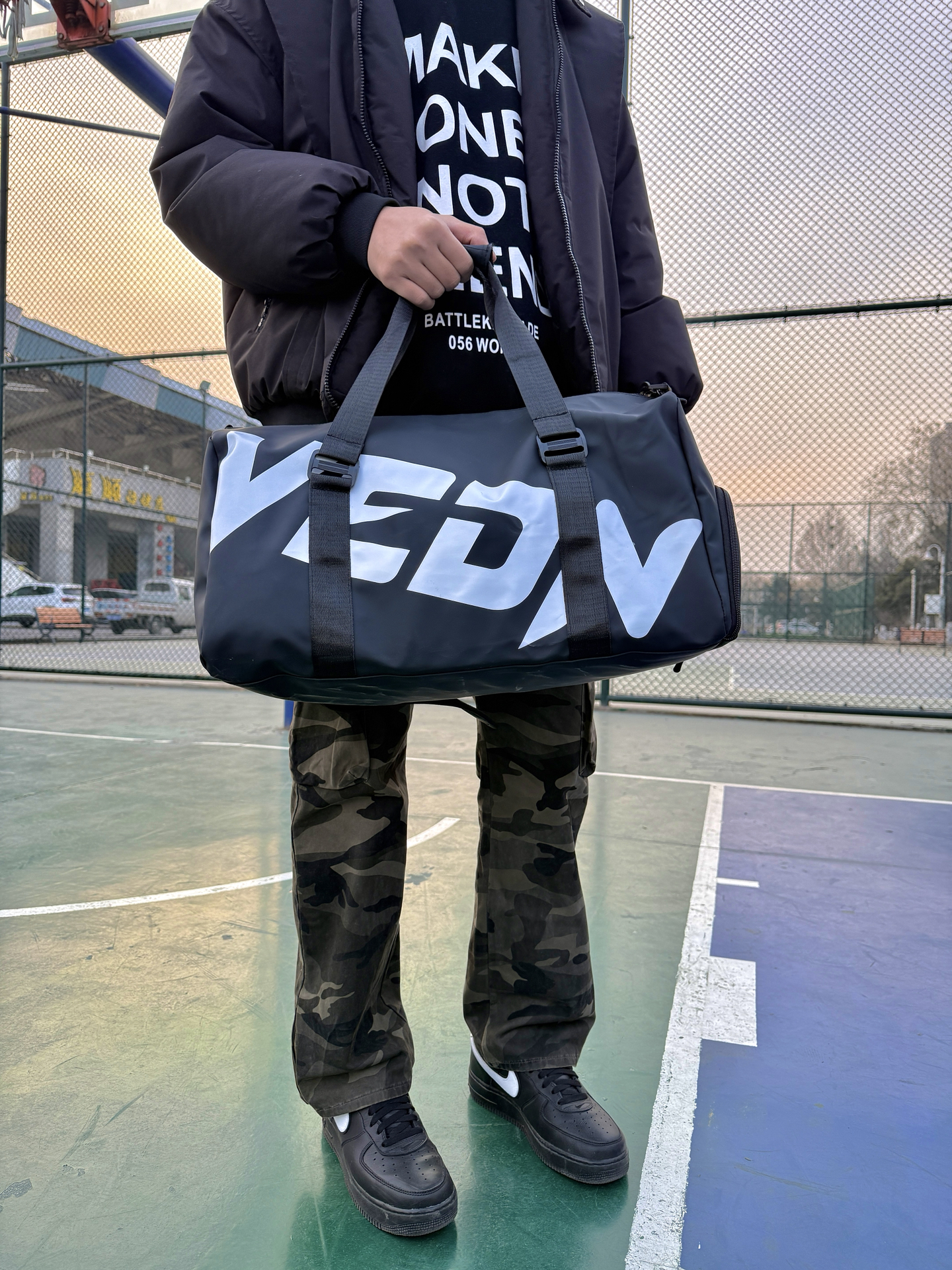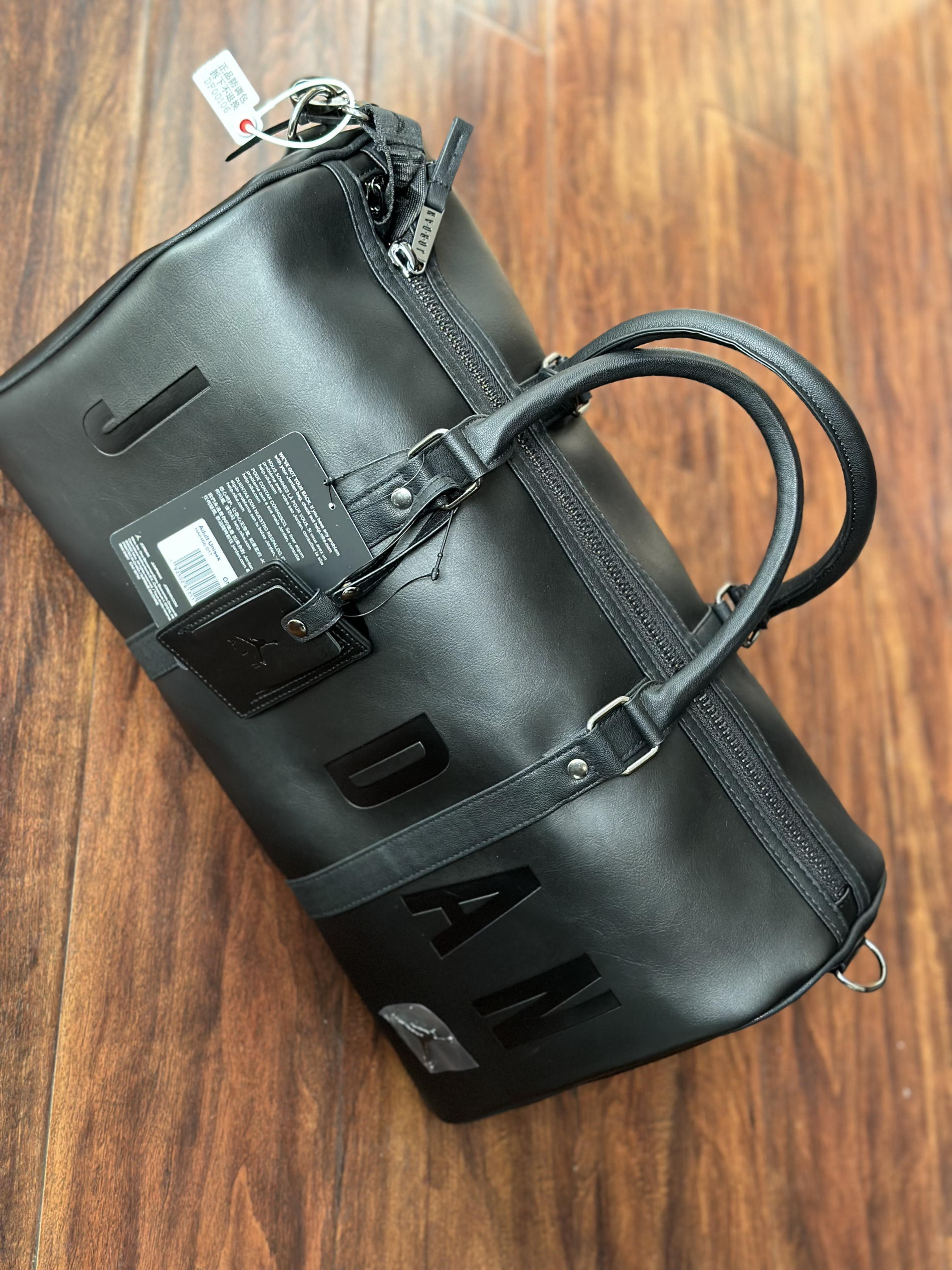 本篇笔记关联了Jordan 满印印花字母logo大容量耐用皮革顶部卷式双提手拉链开合运动收纳旅行包手拎单肩健身包 黑色 HA6466-011等商品,为用户提供真实的使用体验和购买参考。