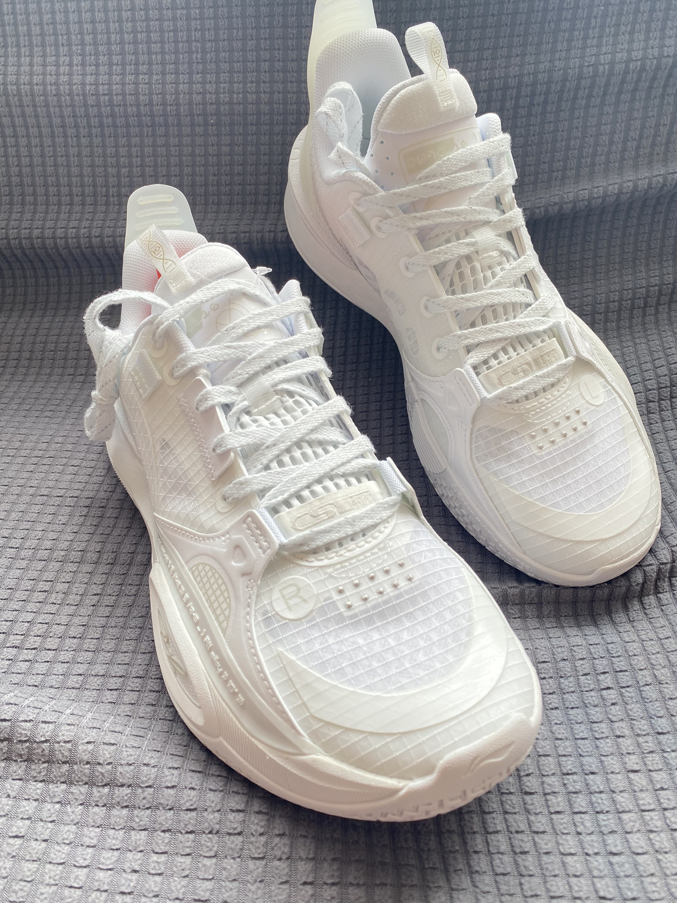 哈喽大家好,本期蜜桃🍑分享李宁 全城10 篮球鞋 白灰色 整体外观配色全鞋以白色为主略带有灰色点坠配色风格上简约百搭 从全鞋的配置方面来看全掌采用了李宁䨻科技外加李宁云科技作为填充,在缓震回弹性能上还是可以的,鞋子重心偏前掌,个人感觉后跟包裹上有点脱节,在抓地方面全掌的橡胶大底是没什么问题,抗扭转设计足弓处镶嵌的PROBAR LOC起到稳定效果。 总体来说鞋子抓地与缓震方面可以入手的,个人觉...