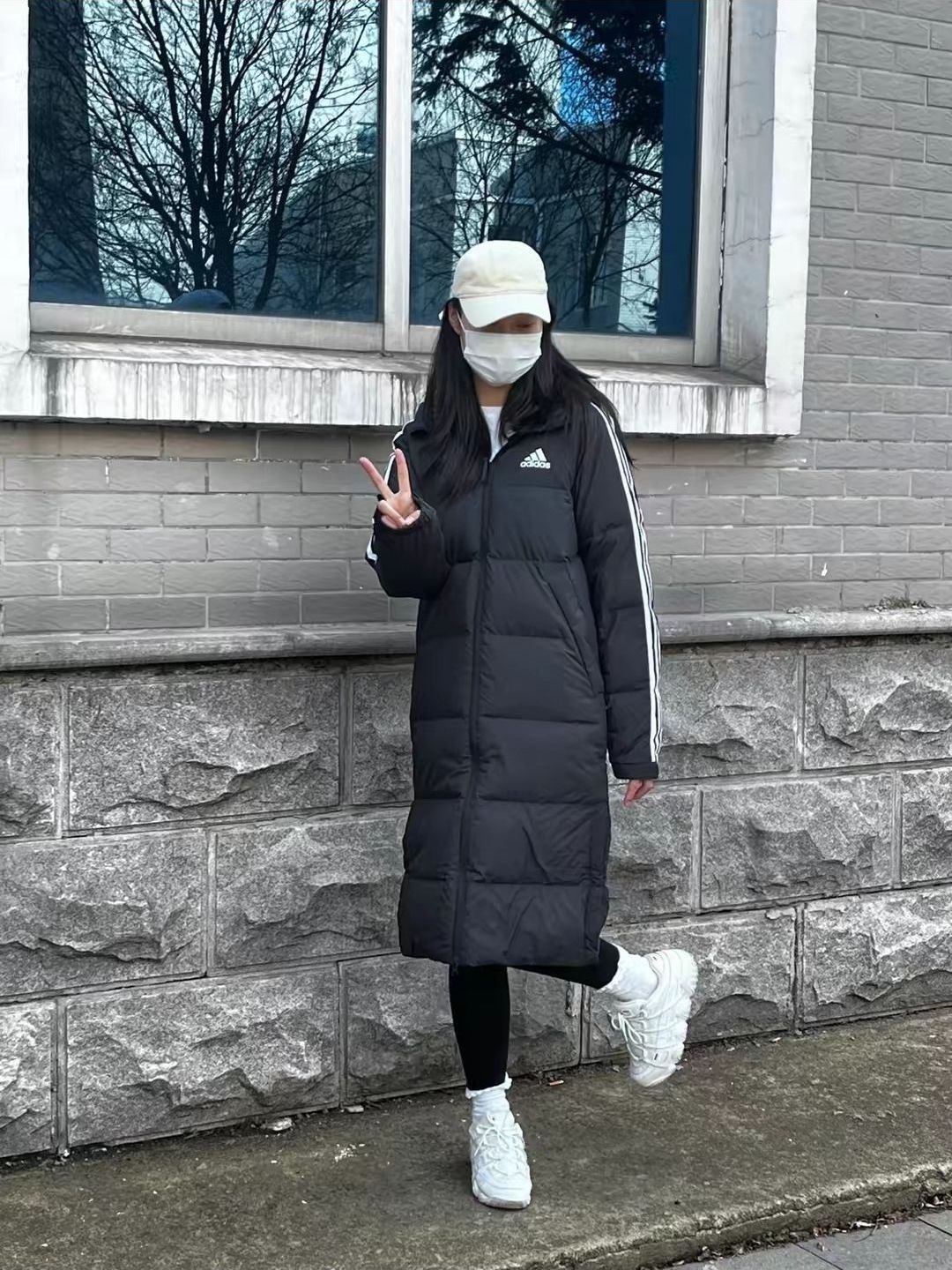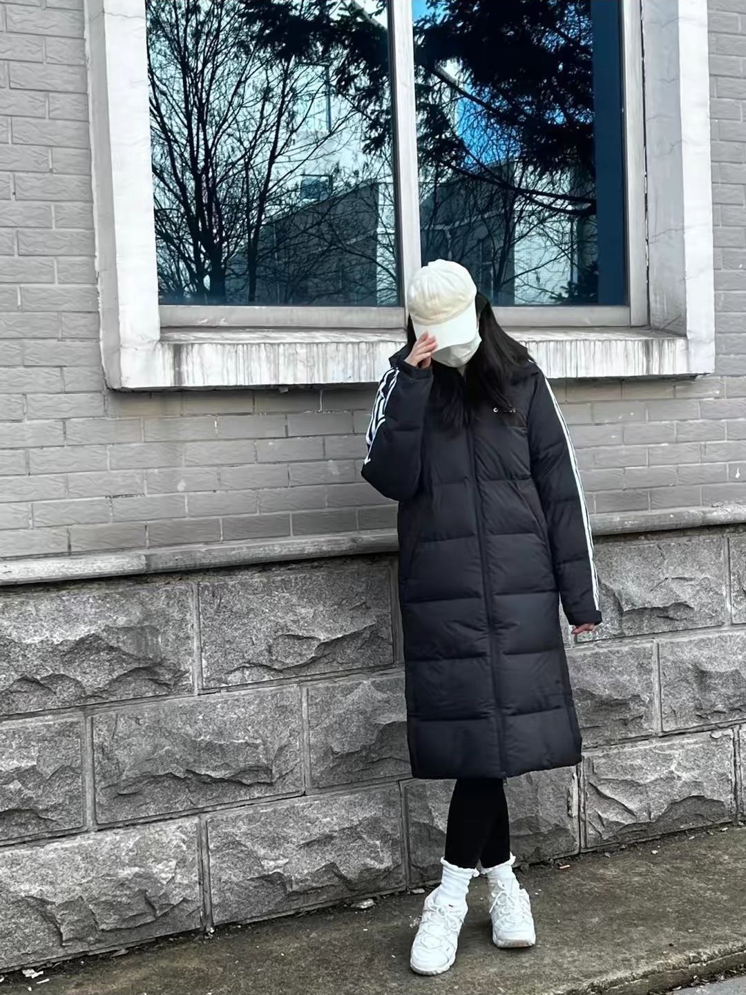 adidas 2022AW户外防风长款连帽羽绒服 💟💟黑色棉服 白色内搭 黑色鲨鱼裤 白色运动鞋 白色棒球帽 💞💞 这件夹克是属于比较长的类型,穿在身上非常强调腰的线条跟位置,💜💜非常修饰比例。显高显瘦,给一米六的身高修饰成一米七的身高💜💜,这种搭配比较适合喜欢清新风格的妹妹来穿。 💖💖上课,逛街,一些没有着装要求的时候。出去逛街的时候💜💜,想要体现自己的时尚感,...