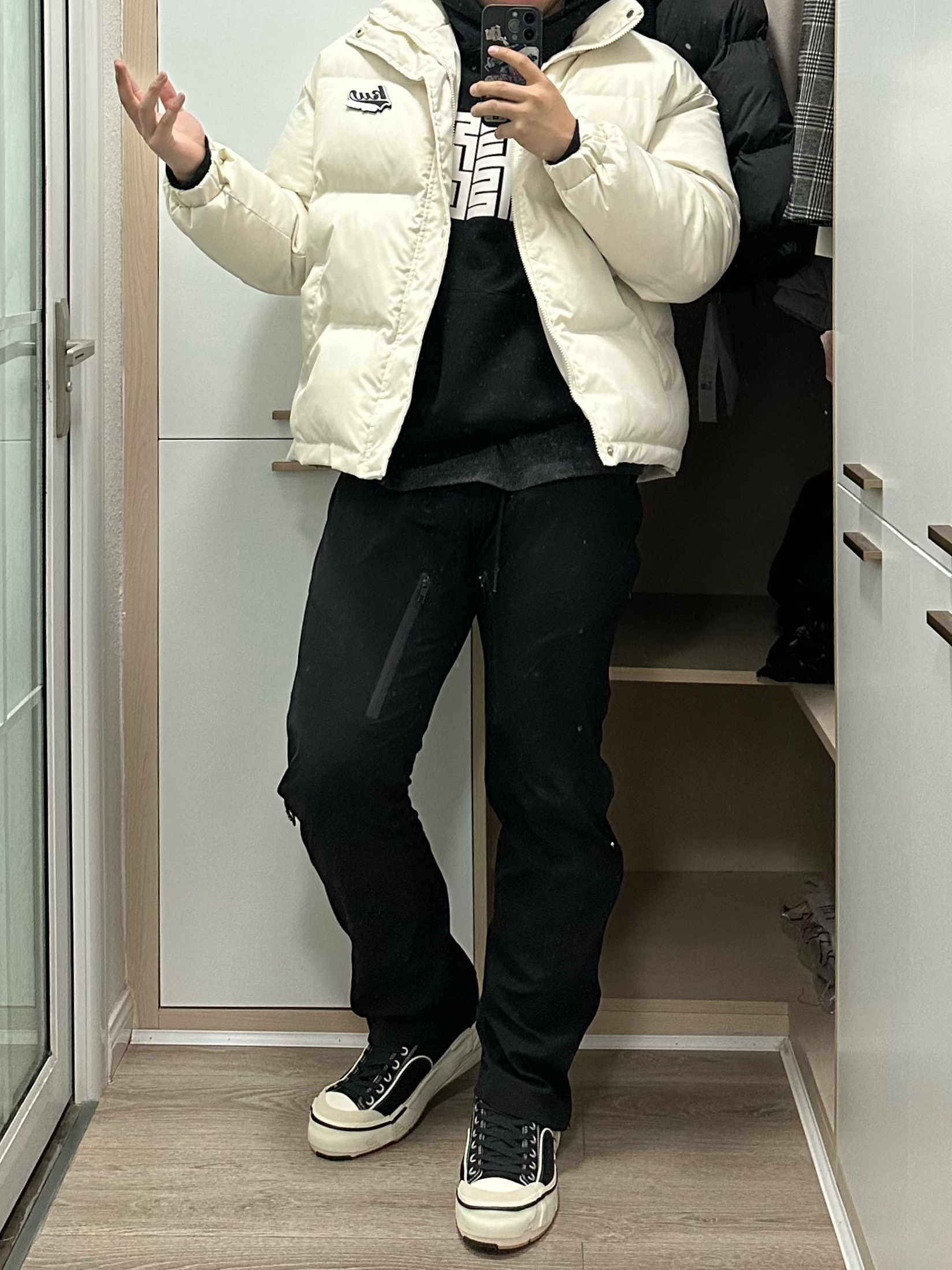 ⚫️:全身黑是我冬季最爱的配色 ⬛️:简单好搭配而且还很酷 ♠️:这件联名的羽绒服简直是我最近买到的宝藏,这款衣服充绒量很足而且是一个短款,穿起来就很帅,个人不喜欢oversize版型,这件衣服还有很多小细节之处等你发掘! 👔:PUMA✖️Roaringwild 羽绒服 👖:黑色做旧牛仔裤 👟:Air jordan 3黑水泥 🫰每个人都有自己的风格,那么对于穿搭的理解自然不相同!如果你喜欢的...