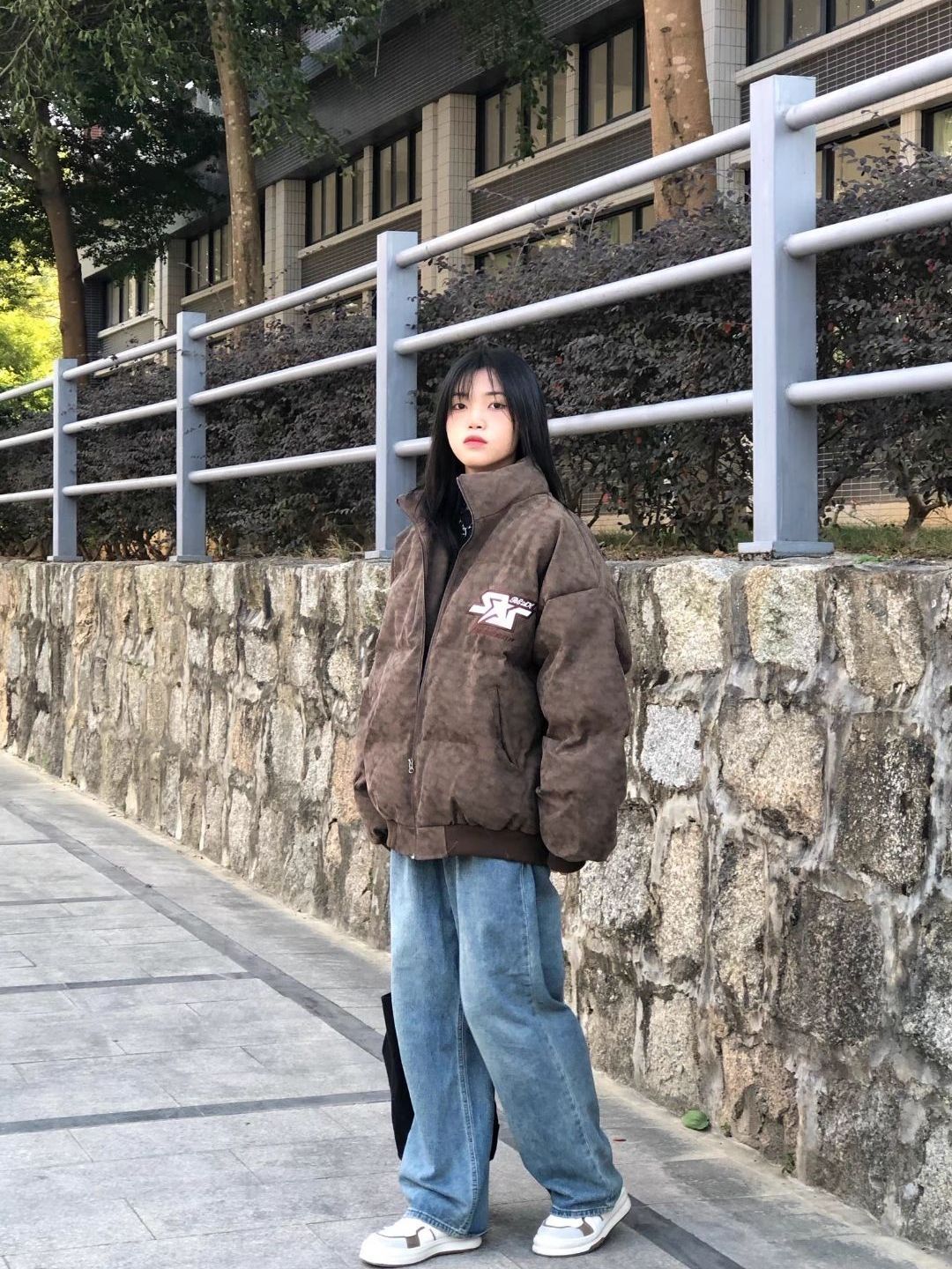 【热门单品】 Timpeake 2022AW 美式街头字母情侣棉服 ↙️↙️ 褐色棉服 黑色内搭 蓝色牛仔裤 白色运动鞋 ⤵️⤵️ 这个棉服真的好好看噢↙️这个印花也是独特的↙️印花好看有设计感↙️这个棉服真的好看↗️男生女生都可以穿⬅️尤其是中性风穿搭↙️喜欢ins风的妹妹可以冲↙️冬天就需要一件这么修饰身材的羽绒服🔤在满足了保暖的基础上增加了时尚度🔄而且搭配鲨鱼裤真的...