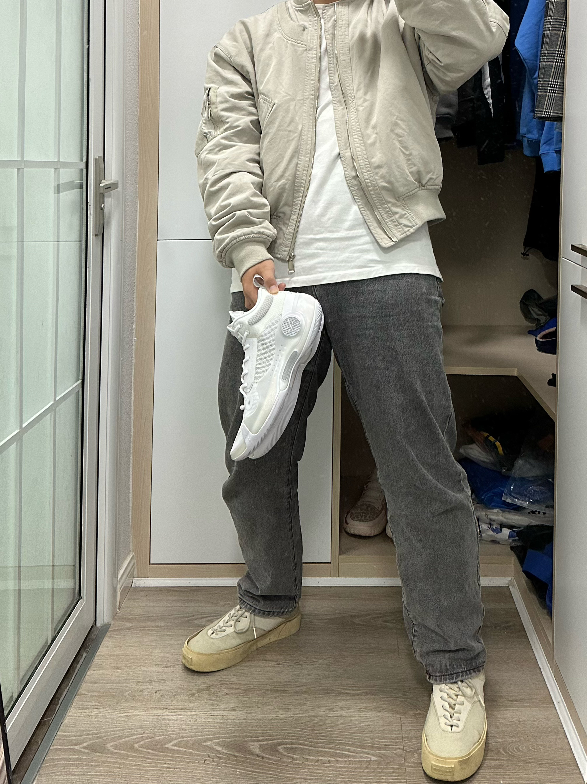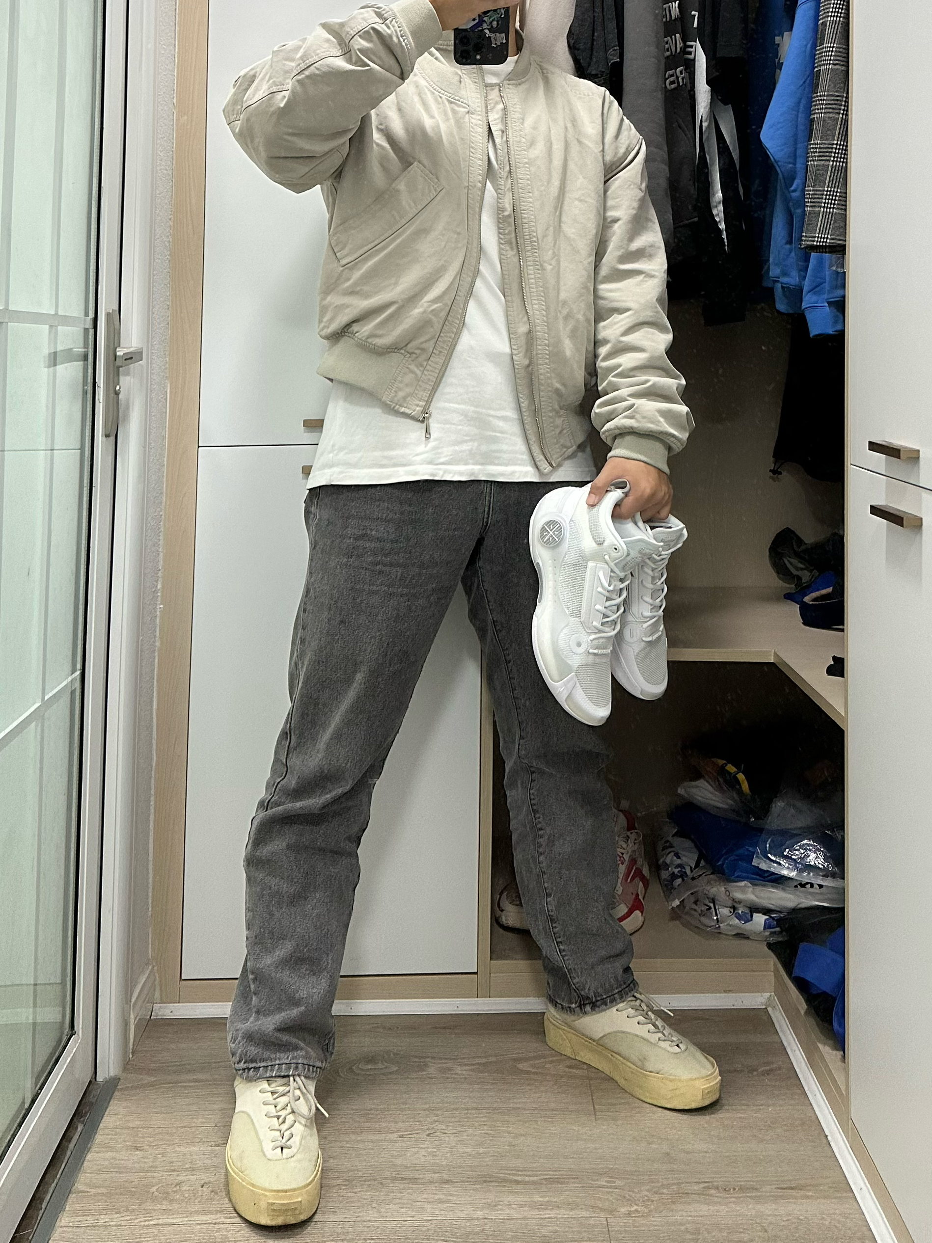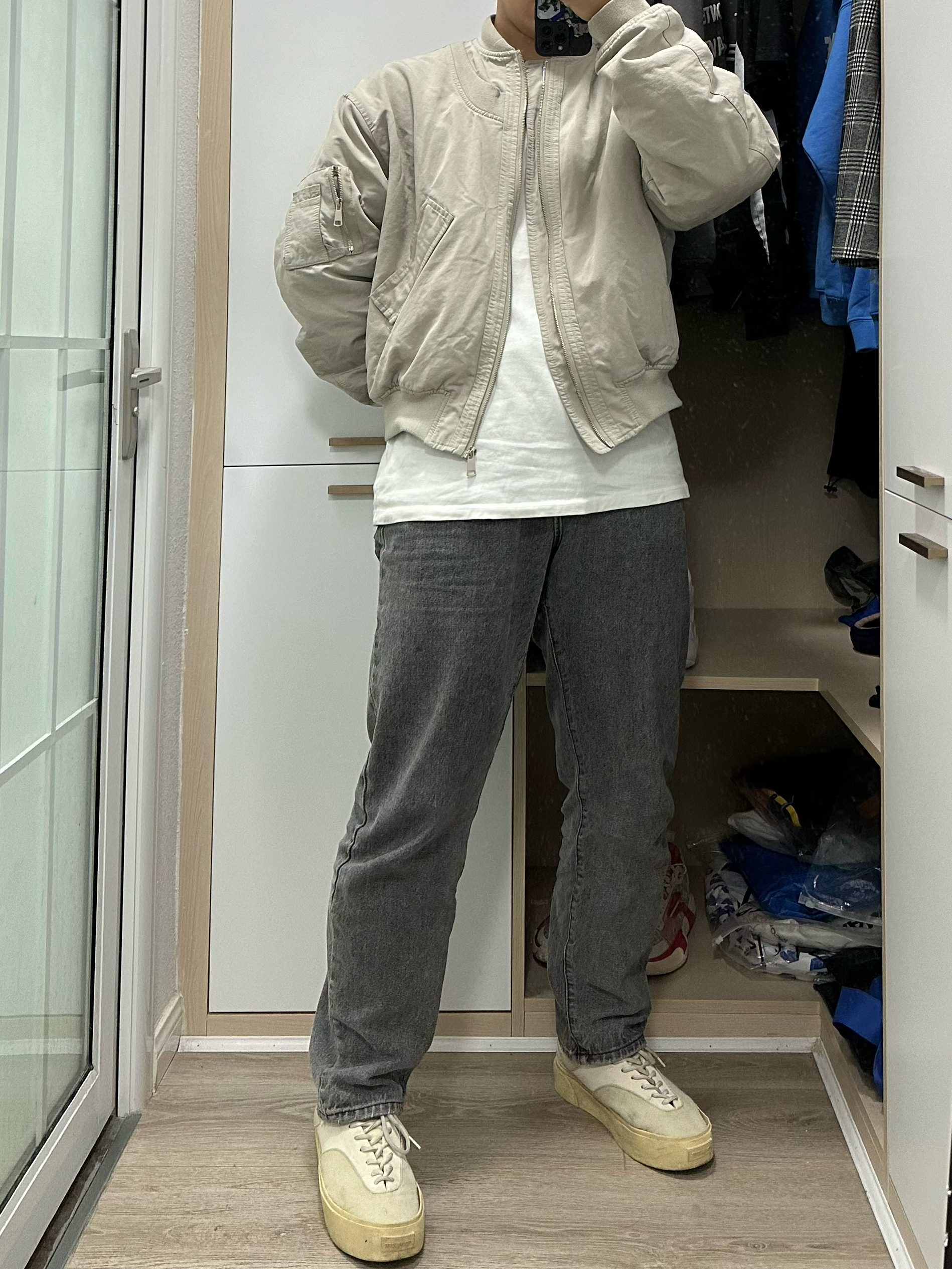 🍂秋日来临,大家一定要尝试一下夹克! ☁️短款夹克可以不仅修饰身材还很帅! 🔥浅色夹克配上深灰色裤子,呼应脚上的板鞋,这个季节就应该穿饱和度高的颜色!白色内搭作为点缀,让整个人显得特别干净简约! 👔:Banditk Gangn夹克 👖:Chinism水洗灰牛仔裤 👟:Equalizer Fault 错版鞋 🫰每个人都有自己的风格,那么对于穿搭的理解也自然不相同。如果你喜欢的话,记得点赞加关注...